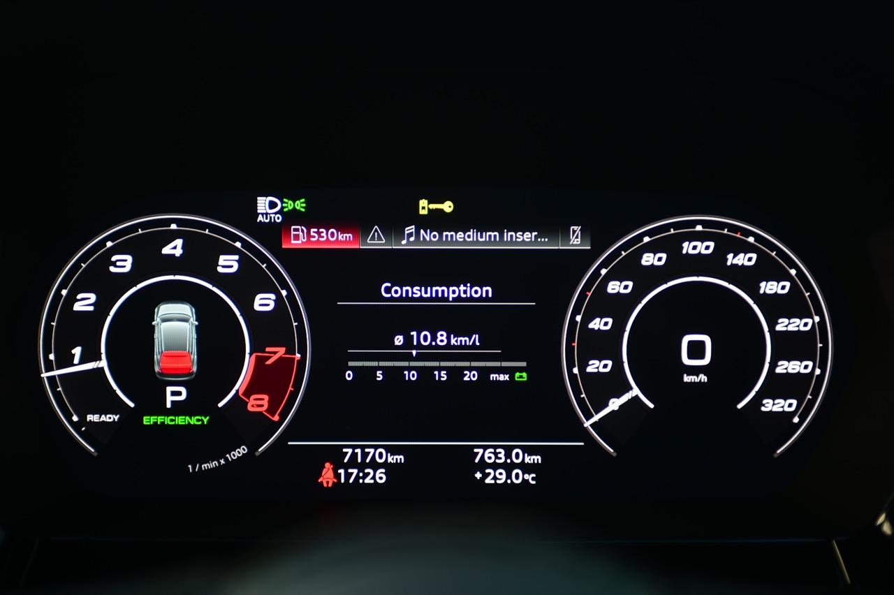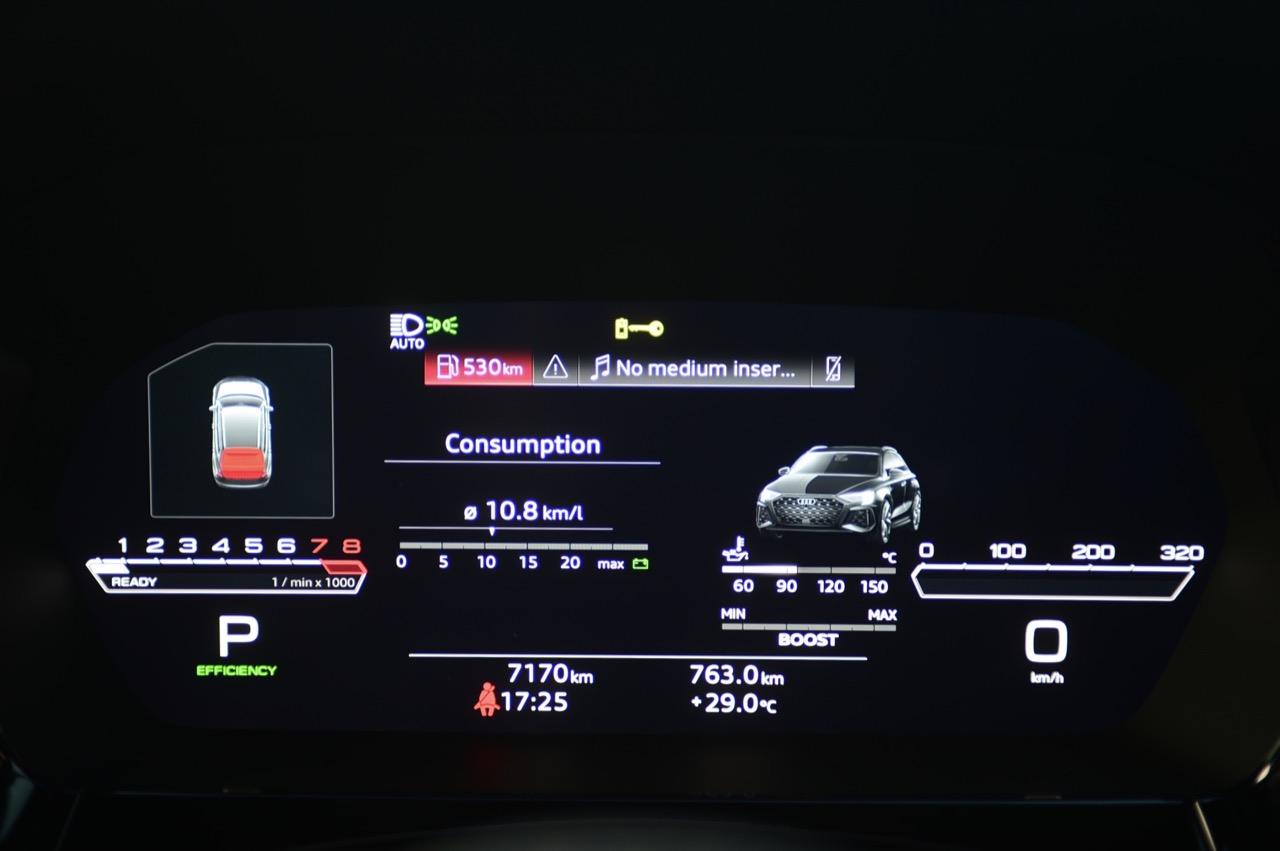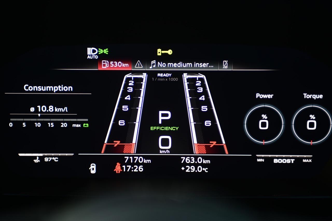 จอแสดงข้อมูลการขับขี่แบบ Virtual cockpit plus ขนาด 12.3 นิ้ว ปรับเปลี่ยนการแสดงผลได้สามรูปแบบ เริ่มจาก RS Sport หน้าปัดมาตรวัดแบบคลาสสิกที่อ่านค่าได้ง่ายเพราะใช้รูปแบบเดิม RS Performance แถบวัดรูปมูมเบอร์แรงของโซนวัดรอบเครื่องยนต์ ส่วนสปีดความเร็วและตำแหน่งเกียร์แสดงผลอยู่ตรงกึ่งกลาง และ RS Runway ดีไซน์แถบวัดรอบเครื่องยนต์คล้ายกับรันเวย์ร่อนลงของอากาศยาน มีตัวเลขสปีดความเร็วและตำแหน่งเกียร์อยู่ตรงกึ่งกลาง มุมขวามีสเกลทรงกลมแจ้งระดับพลังงานทั้งแรงม้าและแรงบิดที่ปลดปล่อยออกมาในขณะนั้น
