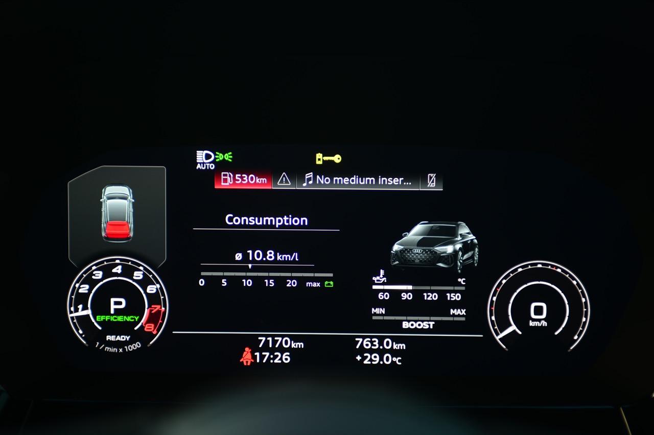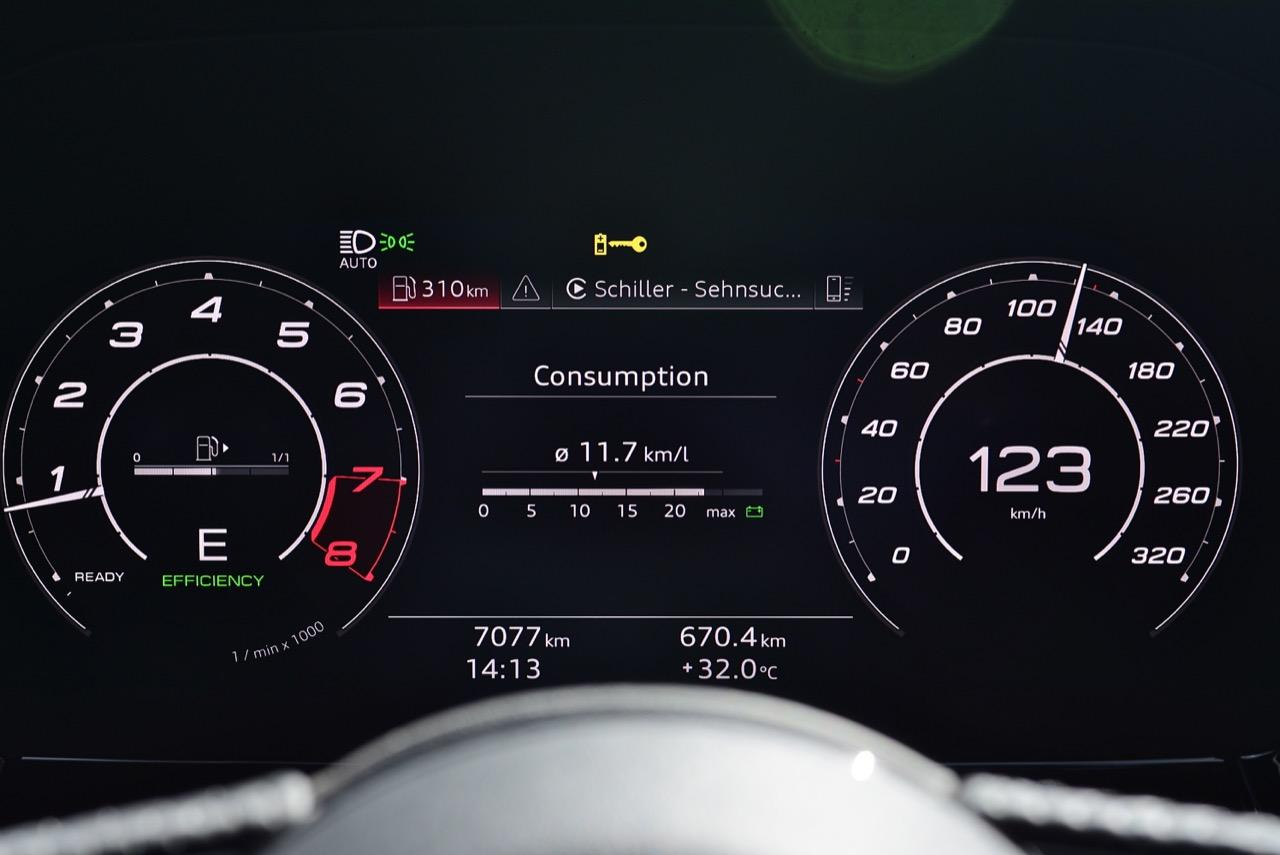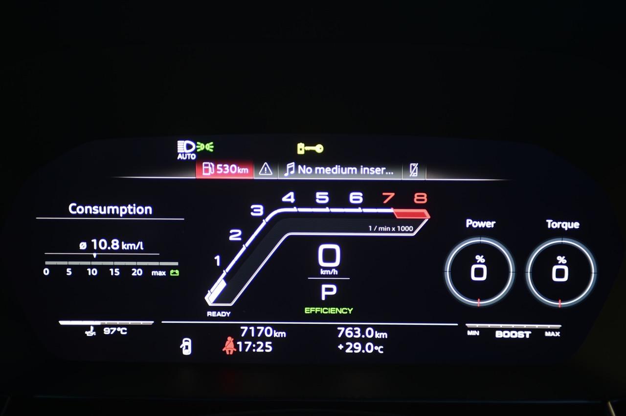 จอแสดงข้อมูลการขับขี่แบบ Virtual cockpit plus ขนาด 12.3 นิ้ว ปรับเปลี่ยนการแสดงผลได้สามรูปแบบ เริ่มจาก RS Sport หน้าปัดมาตรวัดแบบคลาสสิกที่อ่านค่าได้ง่ายเพราะใช้รูปแบบเดิม RS Performance แถบวัดรูปมูมเบอร์แรงของโซนวัดรอบเครื่องยนต์ ส่วนสปีดความเร็วและตำแหน่งเกียร์แสดงผลอยู่ตรงกึ่งกลาง และ RS Runway ดีไซน์แถบวัดรอบเครื่องยนต์คล้ายกับรันเวย์ร่อนลงของอากาศยาน มีตัวเลขสปีดความเร็วและตำแหน่งเกียร์อยู่ตรงกึ่งกลาง มุมขวามีสเกลทรงกลมแจ้งระดับพลังงานทั้งแรงม้าและแรงบิดที่ปลดปล่อยออกมาในขณะนั้น