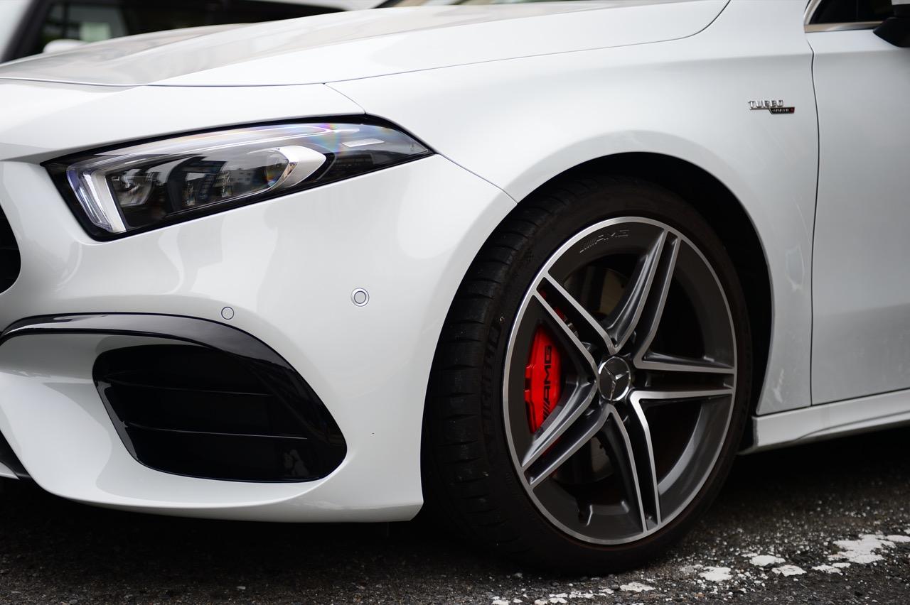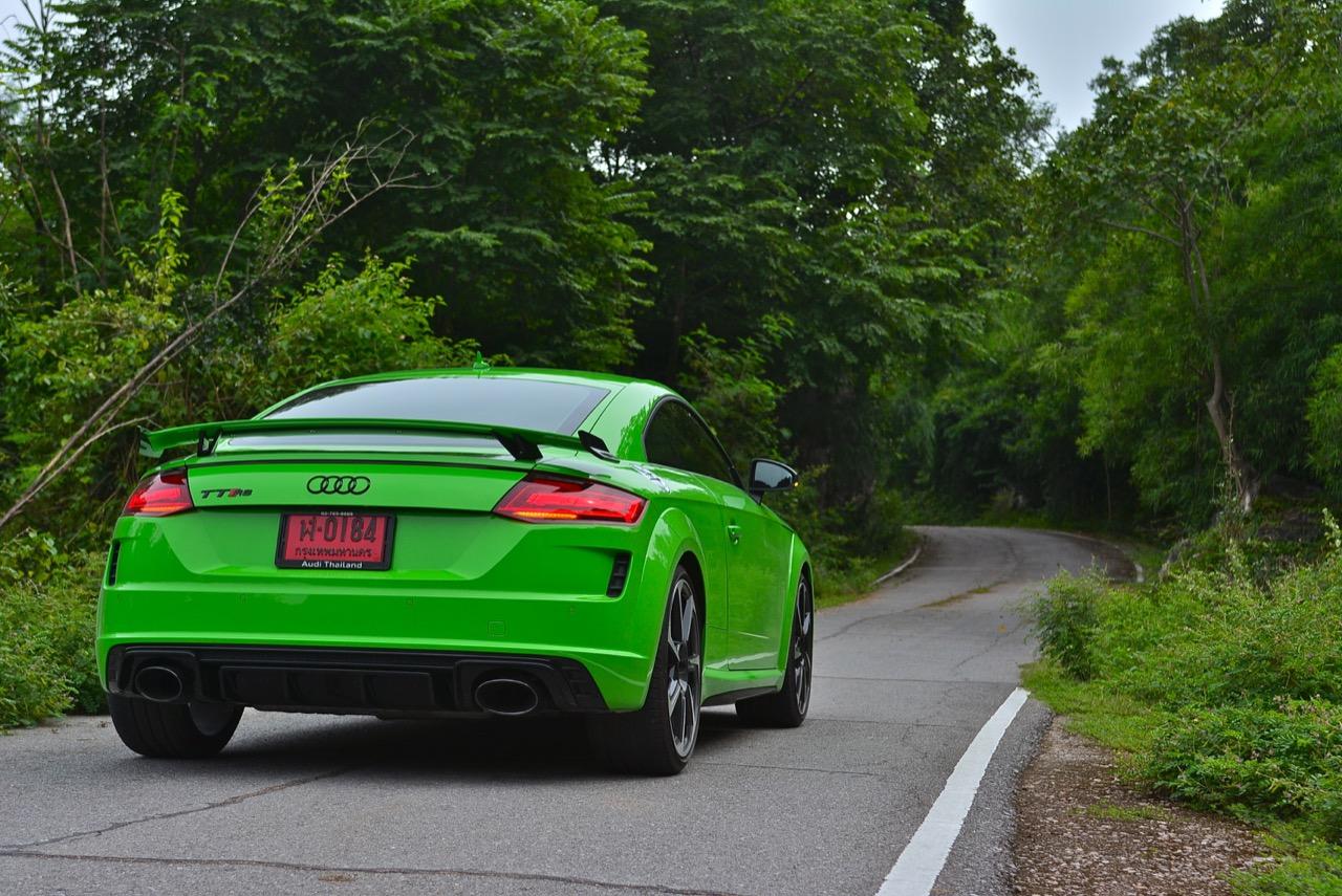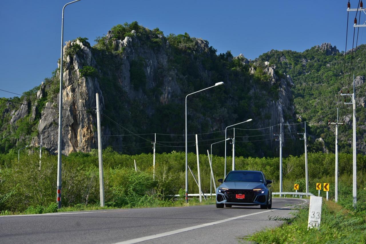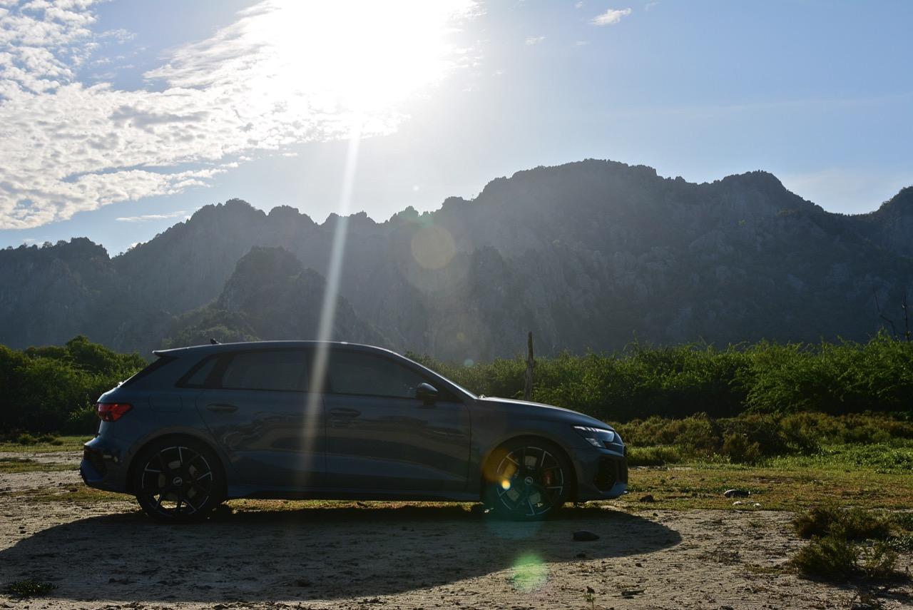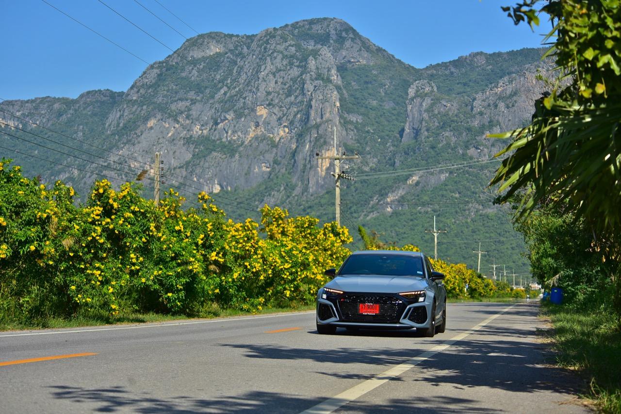 เมื่อใช้สมาธิจดจ่ออยู่กับการขับ เพื่อซึมซับการตอบสนองของแฮตช์แบ็กเด็กเล็ก Audi RS3 สีเทา Kemora gray metallic ทรงของรถแบบ 5 ประตูไซส์เล็ก บวกยางแก้มเตี้ย แสดงให้เห็นถึงความคล่องตัวในการขับขี่ ที่ดูเหมือนจะไร้การปรุงแต่ง แต่จริงๆ แล้วโคตรจะปรุงแต่ง ไม่ว่าจะเป็นเฟืองทดกำลัง ซอฟต์แวร์สั่งงาน เทอร์โบที่แลคน้อยมาก กับล้อและยางที่ถือว่าสำคัญไม่แพ้องคาพยบจุดอื่นๆ RS3 เป็นรถคันแรกของ Audi ที่ติดตั้งกลไก RS Torque Splitter ซึ่งเป็นชุดเฟืองกระจายแรงบิดในการขับเคลื่อนระหว่างล้อหลัง ในลักษณะที่แปรผันอย่างต่อเนื่อง เมื่อผสมผสานกับลูกระเบิดอย่างเครื่องยนต์ห้าสูบ 400 แรงม้า ทำให้รถสปอร์ตขนาดกะทัดรัดคันนี้ มีความคล่องตัวอย่างเหนือชั้น คุณสามารถกระชากร่างหนัก 1.6 ตัน ให้พุ่งทะยานได้อย่างใจนึก เครื่อง 2.5 TFSI ให้แรงบิด 500 นิวตันเมตร เท่ากับ BMW M340i X Drive แต่ M ปลอมรุ่นนี้ มีสูบมากกว่าหนึ่งตำแหน่ง แถมความจุก็ยังมากกว่า 500 ซีซี แรงบิดของ New RS3 ลำล่าสุด จัดมาหนักข้อมากกว่ารุ่นก่อนถึง 20 นิวตันเมตร แพ็กเกจปลดล็อกความเร็วสูงสุดสามารถทะยานไปได้ถึง 290 กม./ชม. (ออปชันเสริมที่ต้องจ่ายเพิ่ม) ซึ่งถือเป็นสถิติสูงสุดในเซ็กเมนต์แฮตช์แบ็ก ณ เวลานี้ การเร่งที่น่ากลัวของปิศาจสี่ห่วงคันจิ๋ว เกิดจากการประดังเทคโนโลยีในระบบขับเคลื่อน เพื่อสร้างรถที่เชื่อมโยงกับลัทธิ Quattro ได้อย่างสมบูรณ์แบบ