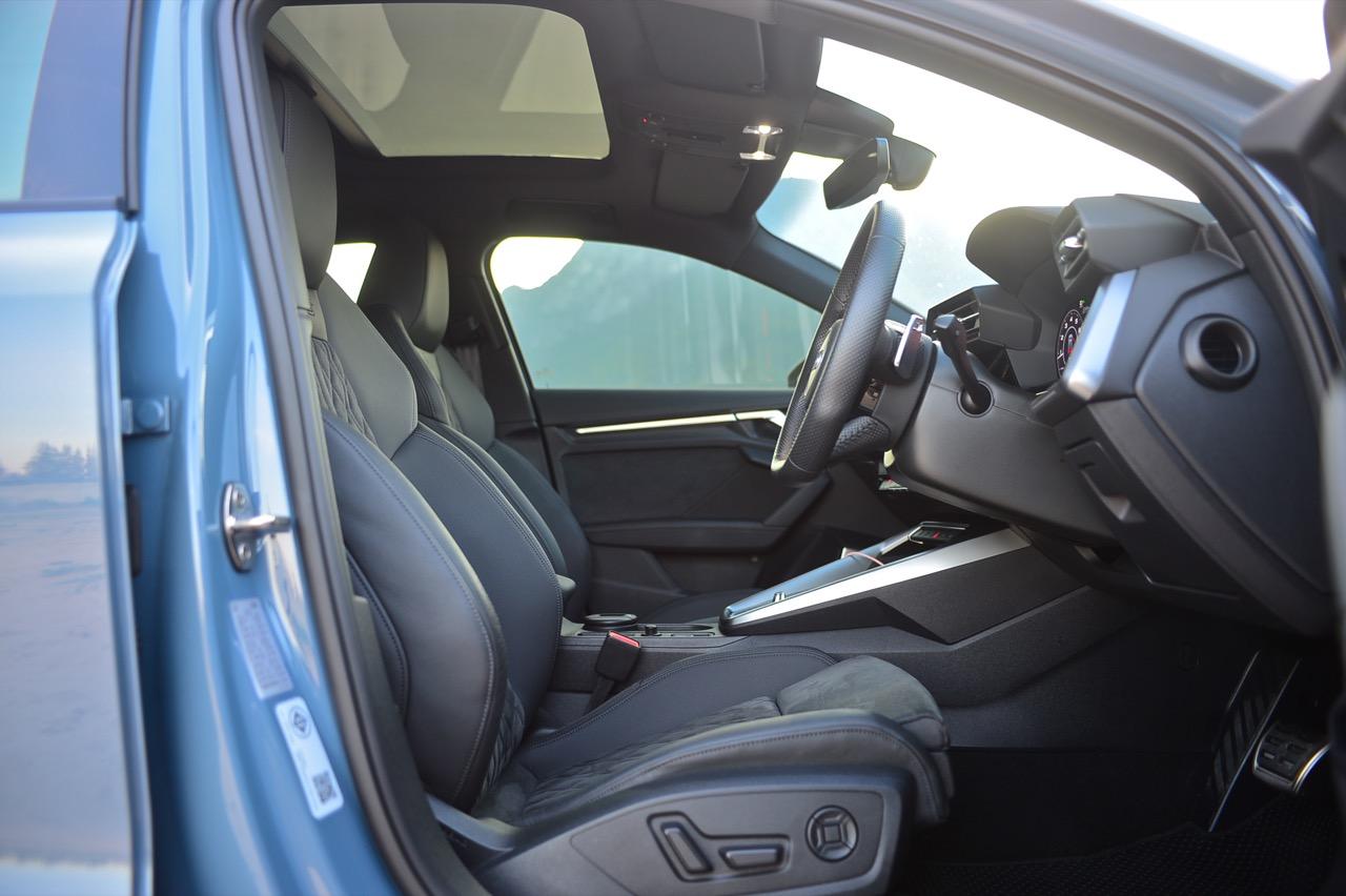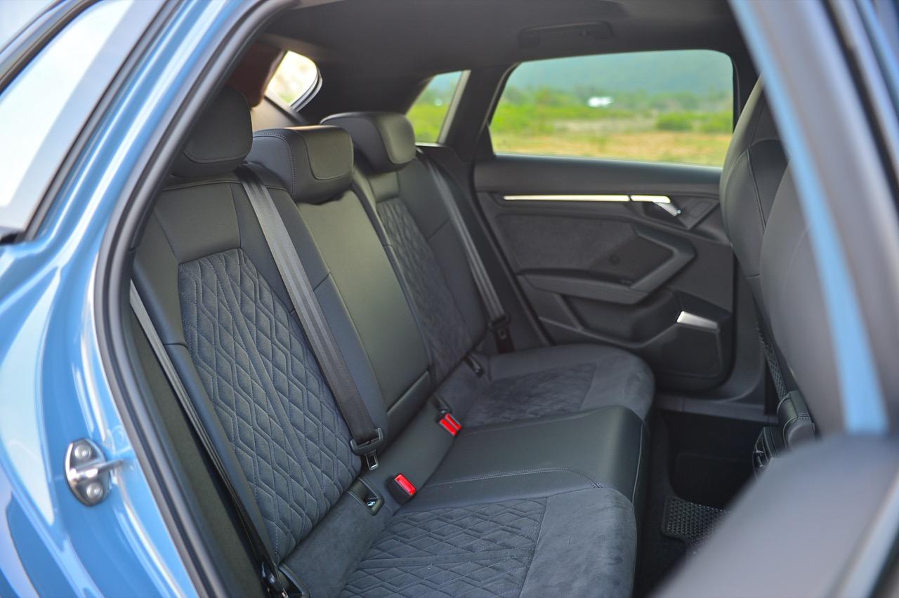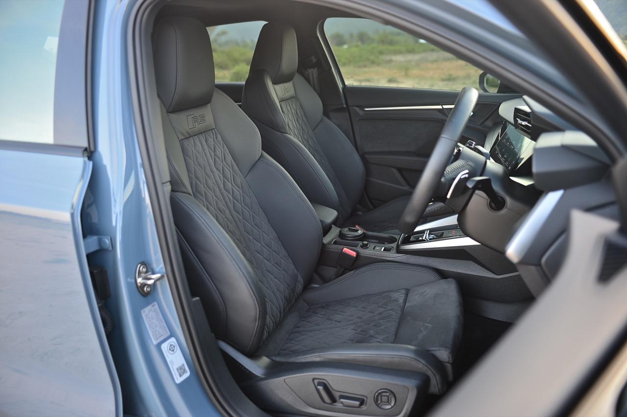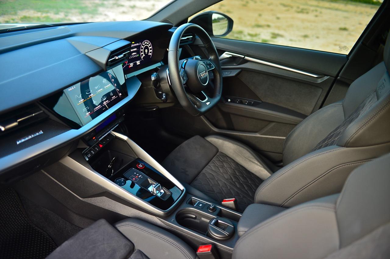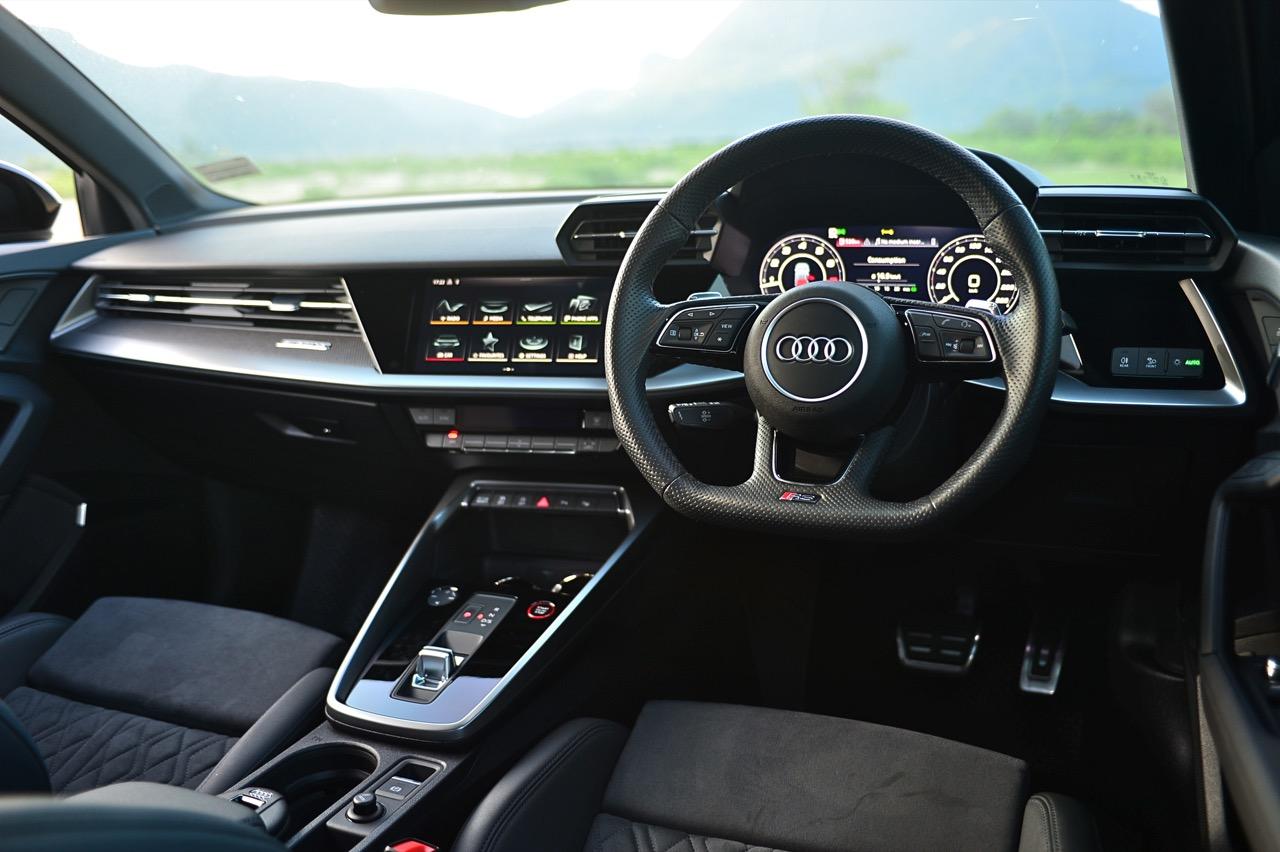 การเพิ่มตัวแยกแรงบิดบนเพลาล้อหลัง หมายความว่าพื้นที่จัดเก็บสัมภาระจะลดลง 50 ลิตร เมื่อเทียบกับ RS3 Sportback รุ่นเก่า ห้องโดยสารดูเรียบง่ายแต่อุดมไปด้วยวัสดุพรีเมียม ภายในมีอุปกรณ์ของรถรุ่นพิเศษประดับประดาอยู่ทั่วไปหมด เนื่องจากเป็นรถ RS พวงมาลัยสามก้านแบบฐานตัด ช่วยเปิดพื้นที่เข้าออกจากเบาะคนขับ ห้องโดยสารของ RS3 เ หมือนกับ A3 หรือ S3 มากกว่าการเป็นรถสปอร์ตของนักขับมืออาชีพ หน้าจออินโฟเทนเมนต์กลาง สั่งงานด้วยระบบสัมผัส ขนาด 10.1 นิ้ว เชื่อมต่อกับ Apple CarPlay/Android Auto อย่างรวดเร็ว ปุ่มควบคุมระบบปรับอากาศภายในห้องโดยสารแบบแยกสามโซนจอมอนิเตอร์กลางสั่งงานด้วยระบบสัมผัส เชื่อมกับระบบ MMI Radio plus หน้าจอแบบสัมผัส (MMI touch) ขนาด 10.1 นิ้ว ควบรวมการปรับตั้งค่าต่างๆ ของรถ ระบบ Audi smartphone interface รองรับการเชื่อมต่อ Bluetooth ช่อง USB-C สำหรับห้องโดยสารด้านหน้า 2 ตำแหน่ง และด้านหลัง 2 ตำแหน่ง ไฟเรืองแสงในห้องโดยสารแบบปรับสีได้ (Contour/ambient lighting)