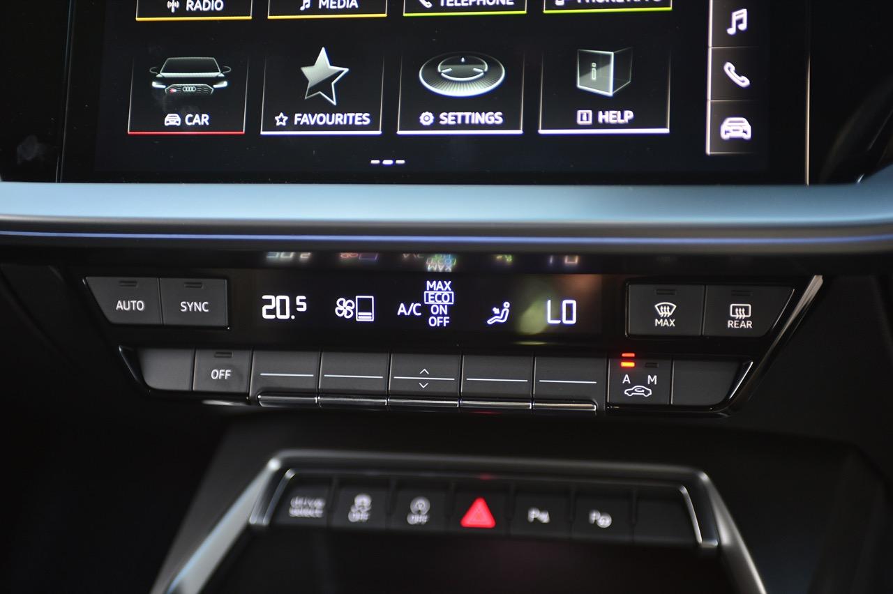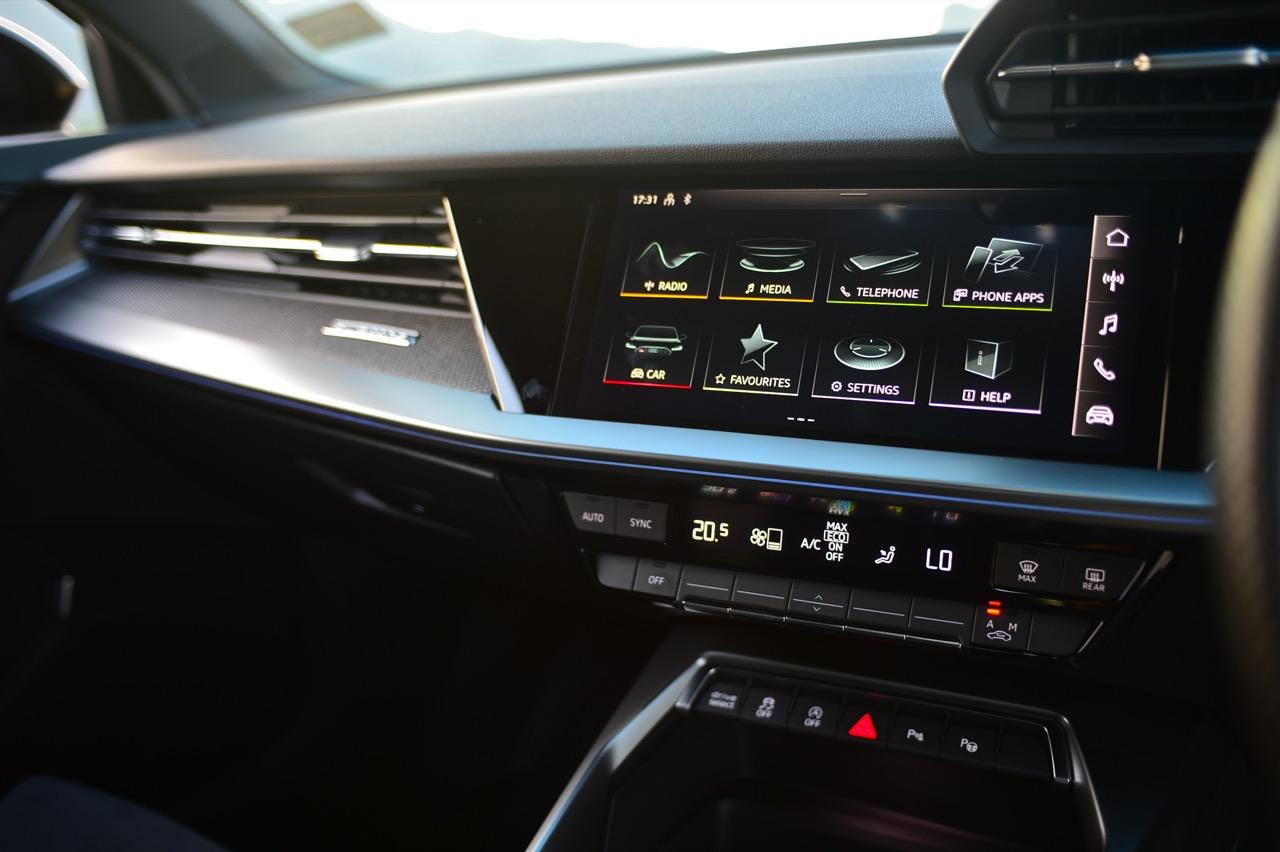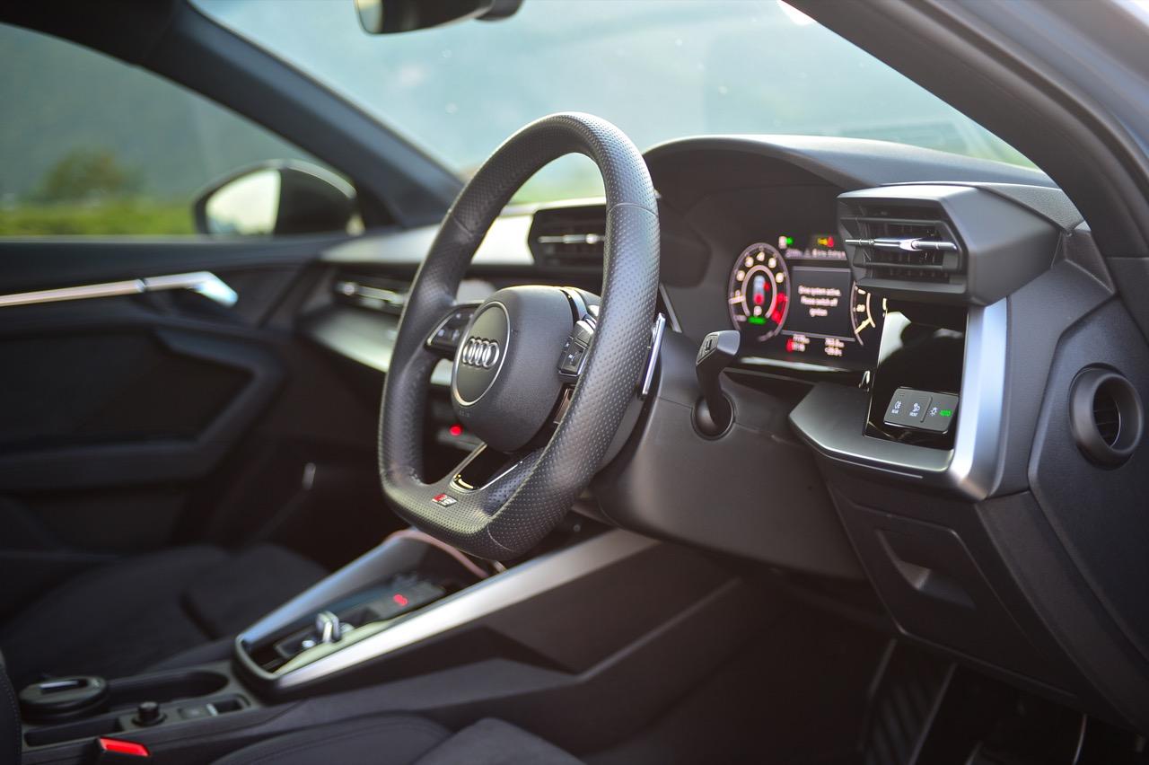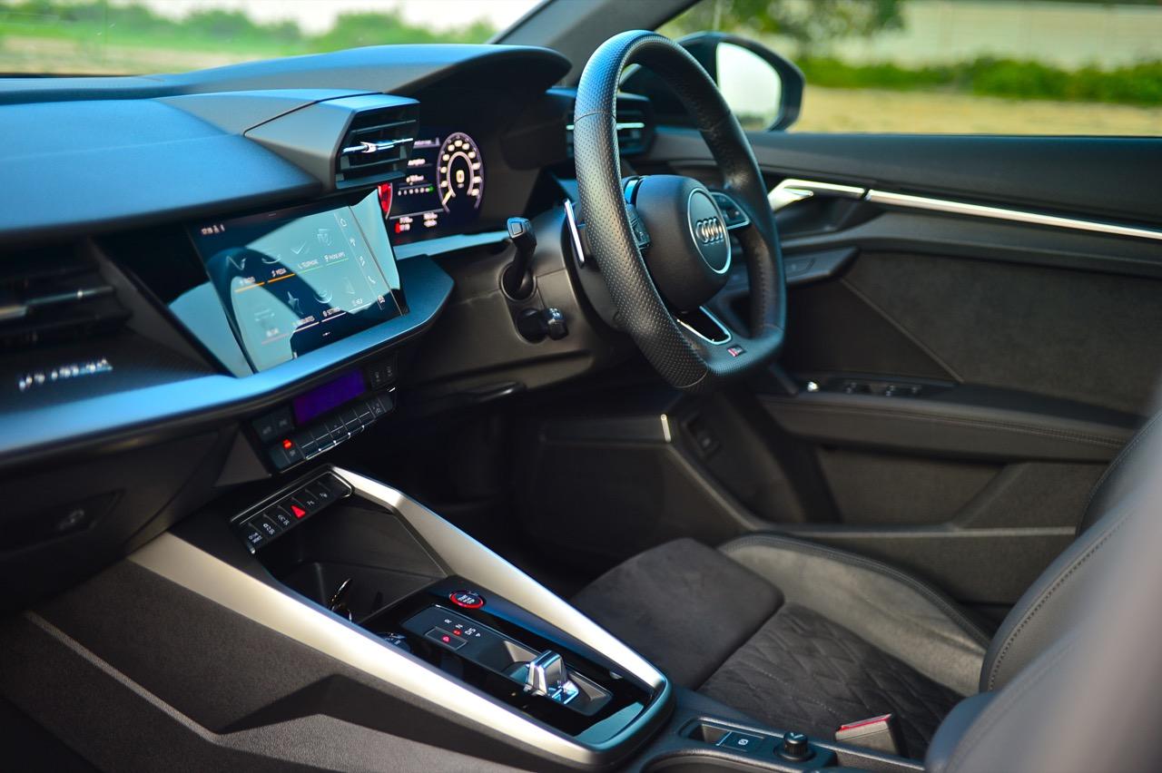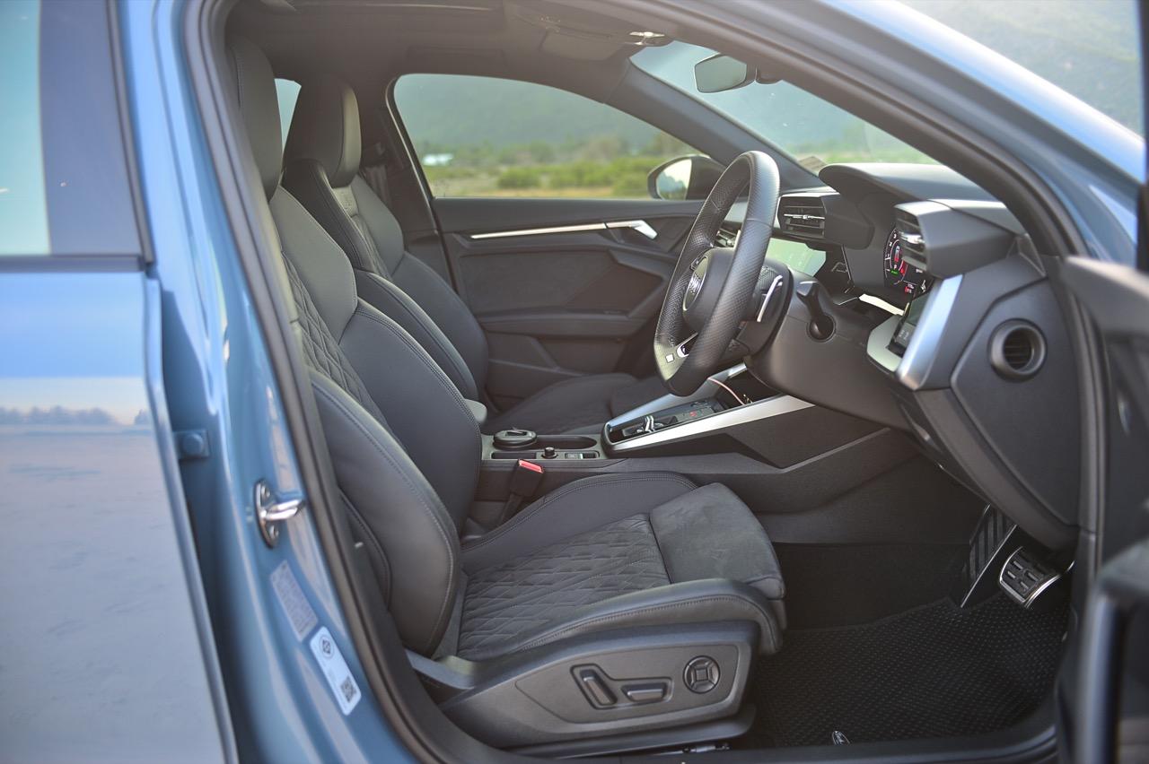 การเพิ่มตัวแยกแรงบิดบนเพลาล้อหลัง หมายความว่าพื้นที่จัดเก็บสัมภาระจะลดลง 50 ลิตร เมื่อเทียบกับ RS3 Sportback รุ่นเก่า ห้องโดยสารดูเรียบง่ายแต่อุดมไปด้วยวัสดุพรีเมียม ภายในมีอุปกรณ์ของรถรุ่นพิเศษประดับประดาอยู่ทั่วไปหมด เนื่องจากเป็นรถ RS พวงมาลัยสามก้านแบบฐานตัด ช่วยเปิดพื้นที่เข้าออกจากเบาะคนขับ ห้องโดยสารของ RS3 เ หมือนกับ A3 หรือ S3 มากกว่าการเป็นรถสปอร์ตของนักขับมืออาชีพ หน้าจออินโฟเทนเมนต์กลาง สั่งงานด้วยระบบสัมผัส ขนาด 10.1 นิ้ว เชื่อมต่อกับ Apple CarPlay/Android Auto อย่างรวดเร็ว ปุ่มควบคุมระบบปรับอากาศภายในห้องโดยสารแบบแยกสามโซนจอมอนิเตอร์กลางสั่งงานด้วยระบบสัมผัส เชื่อมกับระบบ MMI Radio plus หน้าจอแบบสัมผัส (MMI touch) ขนาด 10.1 นิ้ว ควบรวมการปรับตั้งค่าต่างๆ ของรถ ระบบ Audi smartphone interface รองรับการเชื่อมต่อ Bluetooth ช่อง USB-C สำหรับห้องโดยสารด้านหน้า 2 ตำแหน่ง และด้านหลัง 2 ตำแหน่ง ไฟเรืองแสงในห้องโดยสารแบบปรับสีได้ (Contour/ambient lighting)