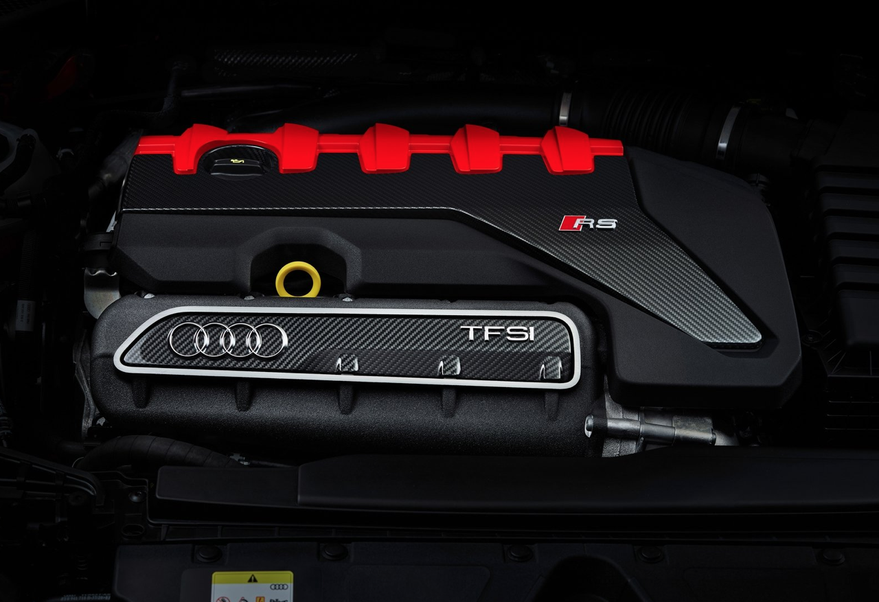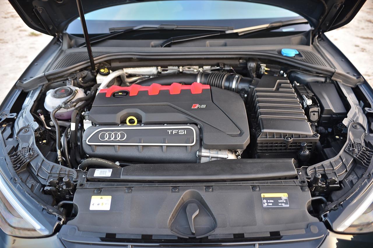 เครื่องยนต์ห้าสูบยี่สิบวาล์ว ใน Audi RS 3 Quattro Sportback มีกำลังมากกว่าและให้แรงบิดที่สูงกว่า แทนที่จะเป็น 480 นิวตันเมตร เครื่อง 2.5 TFSI ที่สืบสานมาจากเครื่องยนต์ในตำนานวงการแรลลี่ระดับโลก มีแรงบิดสูงสุด 500 นิวตันเมตร ในช่วงรอบเครื่องยนต์ที่กว้างตั้งแต่ 2,250 ถึง 5,600 รอบต่อนาที ECU หรือหน่วยควบคุมเครื่องยนต์แบบใหม่ ยังเพิ่มความเร็วและความแรง ด้วยส่วนประกอบของระบบขับเคลื่อนที่สื่อสารกันทั้งหมด ทำให้ RS3 ตอบสนองเร็วขึ้น โดยเฉพาะในช่วงรอบต่ำ กำลังสูงสุด 294 กิโลวัตต์ หรือ 400 แรงม้า ในช่วงตั้งแต่ 5,600 ถึง 7,000 รอบต่อนาที ซึ่งเร็วกว่าและลากรอบได้ยาวกว่า RS3 รุ่นก่อน อัตราเร่งจาก 0 ถึง 100 กม./ชม. ใน 3.8 วินาที เร็วกว่าเดิม 0.3 วินาที รุ่นสปอร์ตแบ็กคันทดสอบ ทำความเร็วสูงสุดได้ที่ 250 กม./ชม. โดยมีออปชันให้เลือกที่ 280 กม./ชม. ด้วยแพ็กเกจ RS Dynamic สามารถเร่งความเร็วสูงสุดได้ถึง 290 กม./ชม. ทำให้ RS 3 เป็นแฮตช์แบ็กที่เร็วสุดเมื่อเทียบกับรถสปอร์ตในระดับเดียวกัน ในแง่ของอัตราเร่งและความเร็วสูงสุดนั้น เจ้าปิศาจสี่ห่วงคันจิ๋วถือว่าเหนือชั้นกว่า ระบบส่งกำลังคลัตช์คู่ 7 สปีด (DCT 7 Speed) ส่งถ่ายแรงบิดของเครื่องยนต์ห้าสูบลงบนพื้นถนน ผ่านล้อทั้งสี่ด้วยกลไกทดกำลัง Quattro เวอร์ชันล่าสุด ระบบขับเคลื่อนมาพร้อมการออกแบบและวัสดุที่แข็งแกร่งยิ่งขึ้น มีการคำนึงถึงแรงบิดที่เพิ่มขึ้น และการกระจายอัตราทดเกียร์ที่เน้นอารมณ์สปอร์ต การโต้ตอบอย่างชาญฉลาดในส่วนประกอบของระบบขับเคลื่อนทั้งหมด รวมถึงระบบควบคุมการออกตัว ช่วยให้ RS 3 เปลี่ยนเกียร์ได้เร็วมาก ทำให้รถออกตัวได้เร็วปานสายฟ้า ตามด้วยการเร่งความเร็วต่อเนื่องที่เร้าใจและน่ากลัวไปพร้อมๆ กัน
