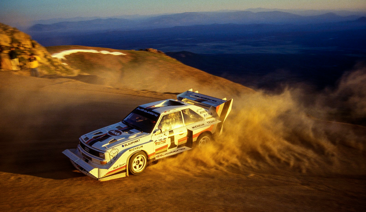 ภาพแห่งความทรงจำเหล่านี้ฝังอยู่ในหัวของผู้ที่ชื่นชอบมอเตอร์สปอร์ตในช่วงปลายยุค 80' การแข่งรถขึ้นเขา : Pikes Peak ของสหรัฐอเมริกา ฤดูร้อนปี ค.ศ. 1987 นักขับชั้นนำอย่าง Walter Röhrl ขับ Audi Sport quattro S1 (E2) บินข้ามถนนลูกรัง ด้วยความสูงชันของถนนซึ่งทอดตัวขึ้นไปสู่หุบเขาสูง 4,000 เมตร (13,123 ฟุต) เหนือระดับน้ำทะเล การขับที่บ้าระห่ำราวกับจะไม่มีวันพรุ่งนี้ ท่ามกลางอากาศที่เบาบาง ในบางจุดบนเส้นทางไต่ระห่ำ ถนนบนภูเขาจะพารถวิ่งดิ่งลงเนินยาว 1,800 เมตร (5,906 ฟุต) สู่ความว่างเปล่า หรือหุบเหวลึก Röhrl แชมป์แรลลี่ชอบสนามนี้มากเป็นพิเศษ รถ S1 ที่มีเครื่องยนต์ห้าสูบ กำลัง 590 แรงม้า ทะยานไต่ระดับความสูงของรายการแข่งรถขึ้นเขา Pikes Peak ได้อย่างรวดเร็วและว่องไว ผลลัพธ์ก็คือ ตำนานตัวเลข 10:47.850 นาที ด้วยความเร็วสูงสุดของ Audi Sport quattro S1 (E2) ที่ควบคุมพวงมาลัยและคันเร่งโดย Röhrl กับความเร็วเฉลี่ย 196 กม./ชม. (122 ไมล์ต่อชั่วโมง) “มันเป็นจุดสูงสุดของสิ่งที่คุณสามารถทำได้ด้วยรถแรลลี่” Walter Röhrl กล่าว