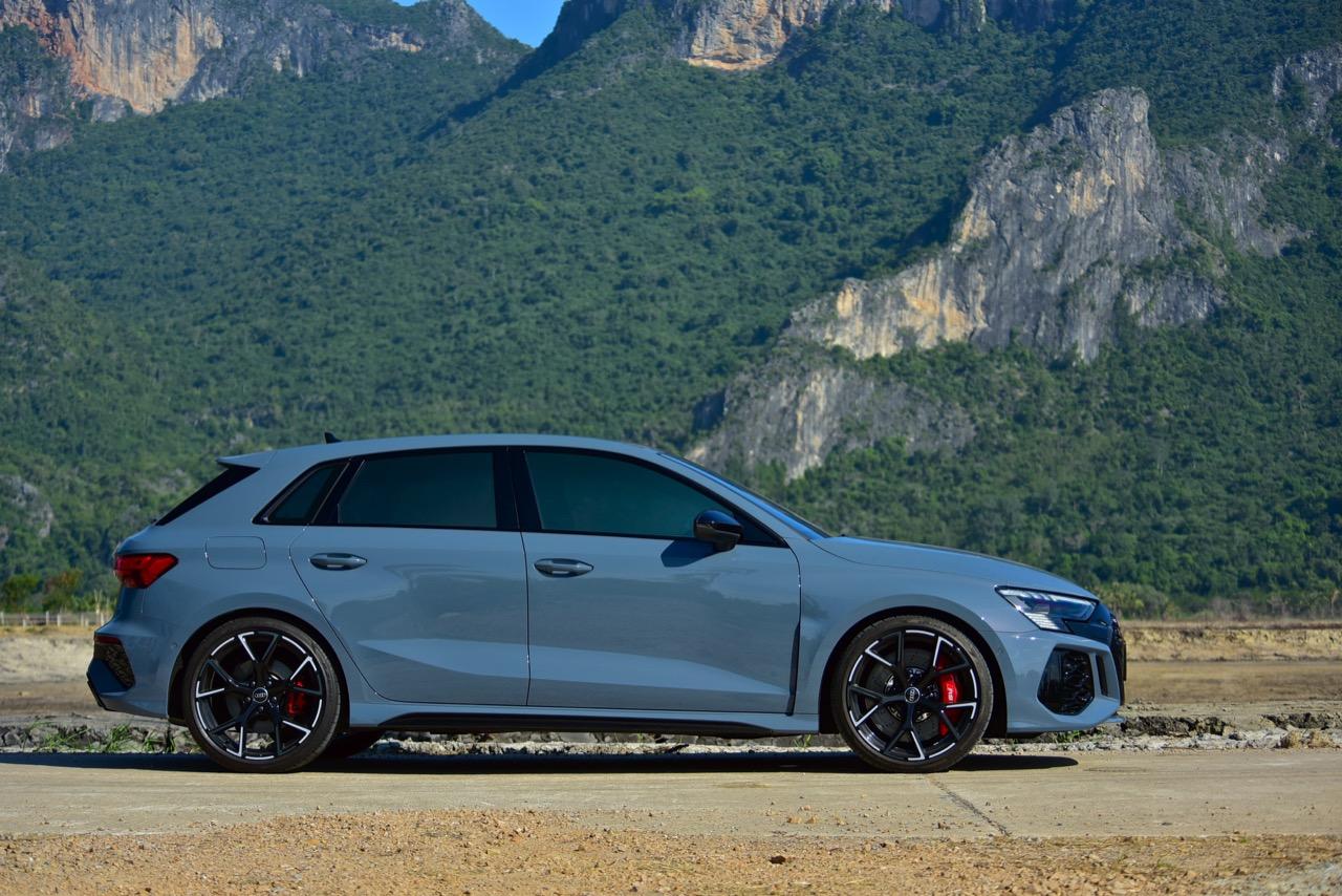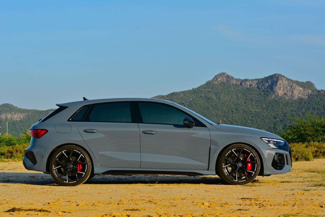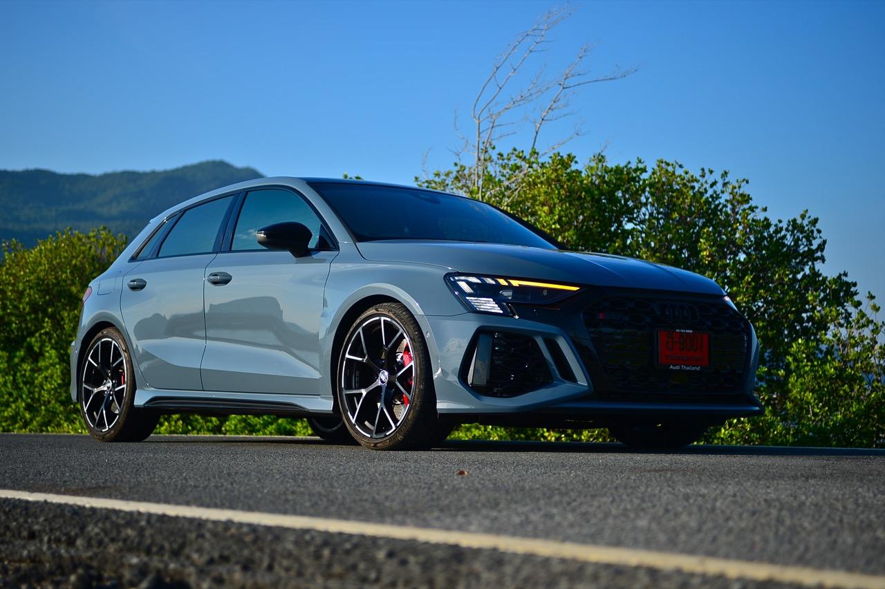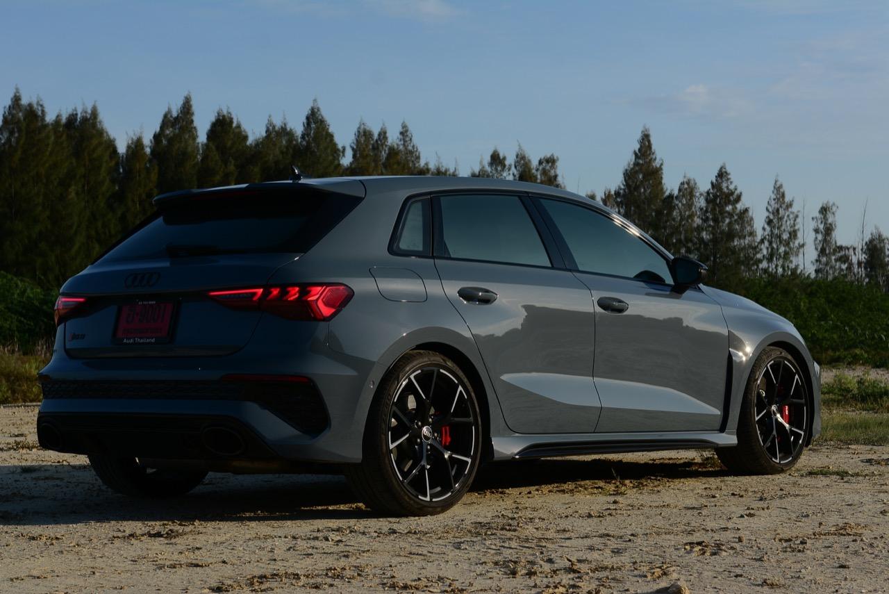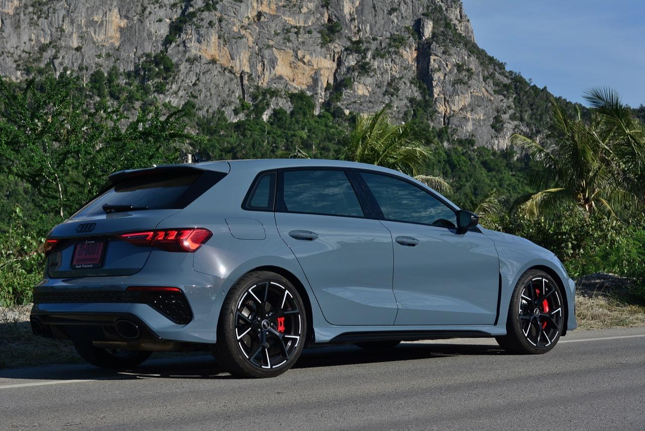 RS3 เน้นการยึดเกาะในทุกสภาพอากาศ, การตกแต่งภายในเรียบง่าย ลูกเล่นไม่เยอะหรือแพรวพราวเหมือน AMG A45S หรือ BMW M2 สิ่งที่ Audi มีก็คือความเที่ยงตรงของรถในตระกูล RS และพลังในการเร่งความเร็วที่เหนือชั้น ฟีลลิ่งของมันยังเพิ่มแรงดึงดูดให้กับนักขับที่ชอบรถเล็กพลังสูง เครื่องยนต์ห้าสูบ กระปุกเกียร์คลัตช์คู่ และระบบขับเคลื่อนสี่ล้อ Quattro เป็นจุดสมดุลของพลังงาน การปรับแต่งแชสซีส่งผลดีต่อฟีลลิ่งหลังพวงมาลัย การเพิ่มมุมแคมเบอร์ลบที่ด้านหน้า ฮาร์ดแวร์สั่งทำพิเศษ และสถิติต่อรอบในสนามนรกเขียว Nurburgring ล้วนบางชี้ไปที่ความสามารถและศักยภาพของรถ RS3 นับเป็นจักรกลสปอร์ตของนักขับอย่างแท้จริง จากการปรับสมดุลระหว่างความคล่องตัว พลัง และความสะดวกสบายบนท้องถนนด้วยมือระดับเทพ ทำให้ขับได้อย่างสมบูรณ์แบบ โหมดสูงสุด RS Performance ปลดปล่อยสมรรถนะที่สัมผัสแล้วคล้ายการปรับแต่งในสนามแข่ง สำหรับนักขับที่กำลังมองหารถสันดาปภายใน 5 ประตูแรงๆ สักคันเอาไว้ใช้ขับเล่นบนถนน Audi RS3 Sportback Quattro นับเป็นหนึ่งในรถแฮตช์แบ็กที่ดีที่สุดเท่าที่ผมเคยขับทดสอบละครับ.