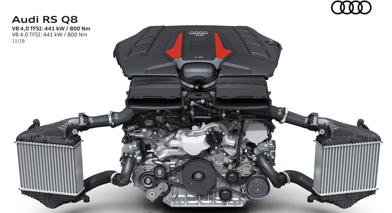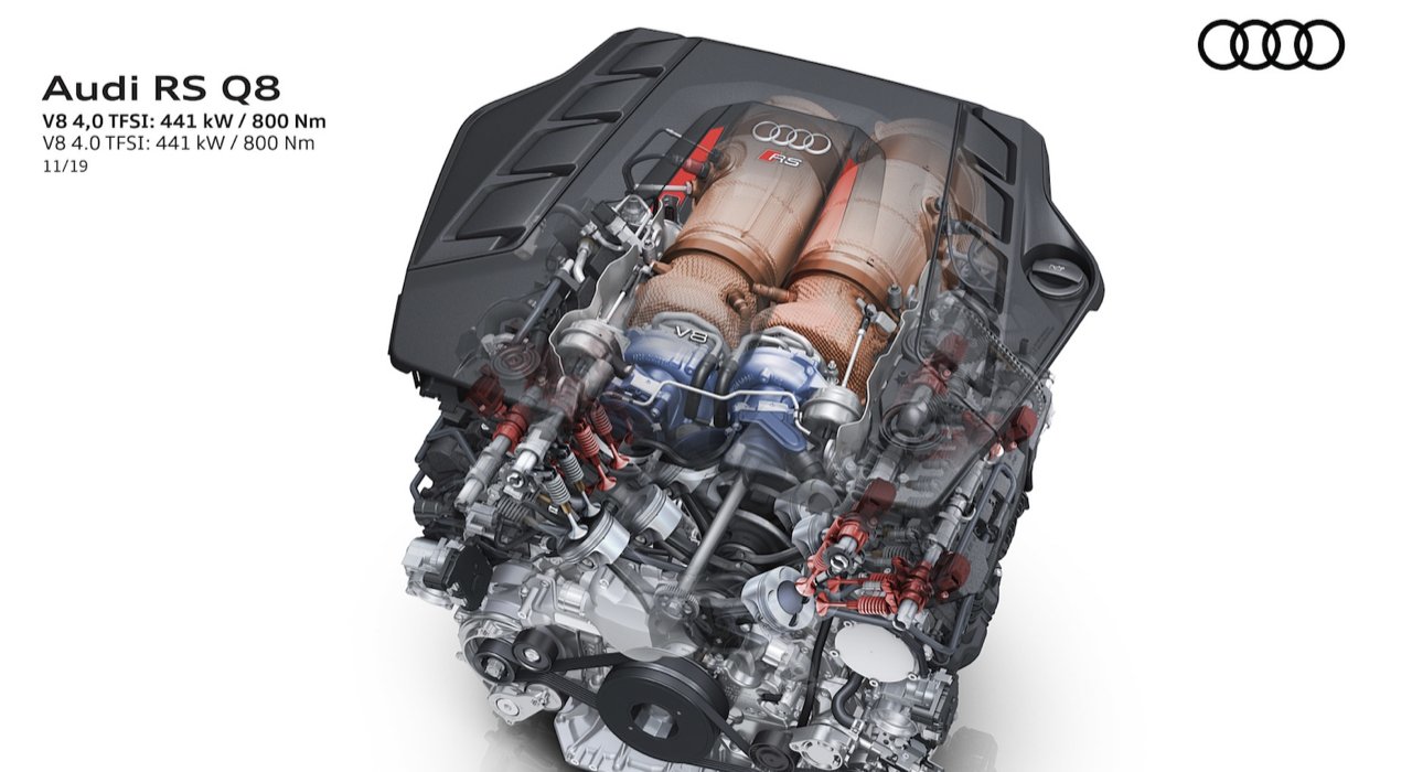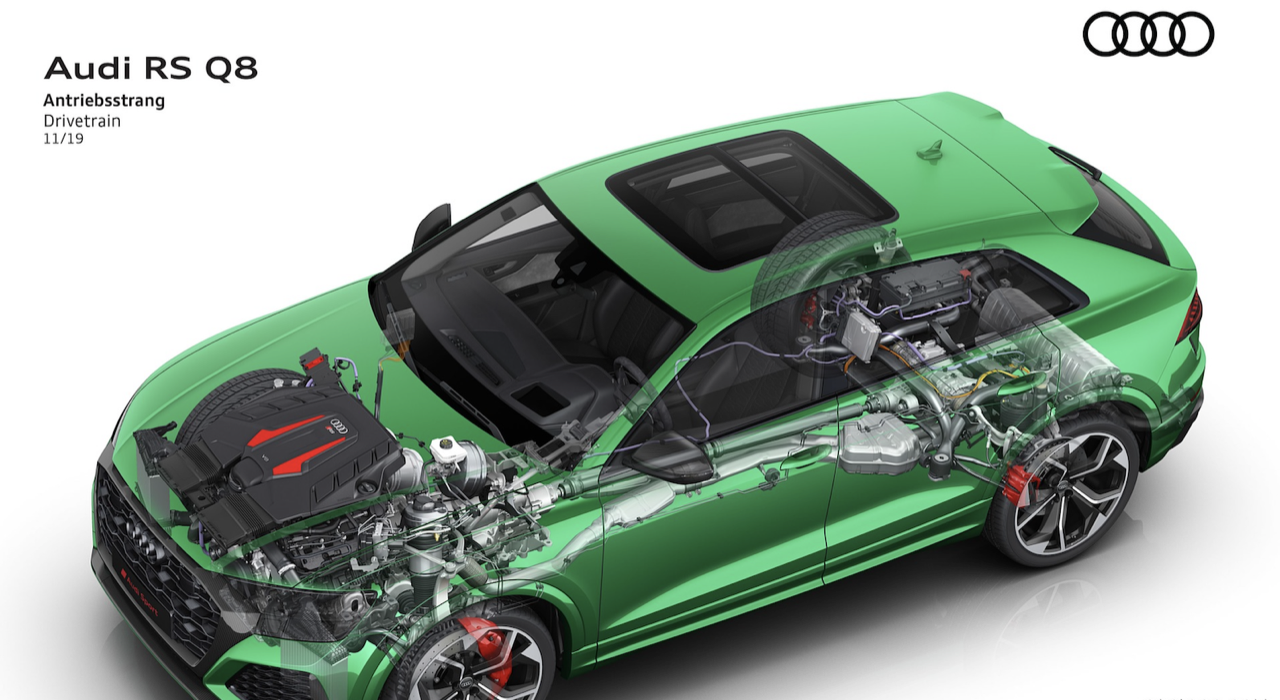 สถิติรอบสนาม Nürburgring ของ Audi RS Q8 Quattro ที่ 7 นาที 42.253 วินาที บ่งชี้ถึงศักยภาพของรถได้ดี เป็นข้อมูลพื้นฐานในการตัดสินใจ หัวใจและจิตวิญญาณของความสำเร็จในครั้งนี้ก็คือเครื่องยนต์ของ RS Q8 ซึ่งเป็นเครื่องยนต์เบนซิน V8 ทวินเทอร์โบ 4.0 ลิตร เทแรงบิดล้นๆ ตั้งแต่ 2,200 ถึง 4,500 รอบต่อนาที การส่งกำลังไปยังล้อทั้งสี่ของ RS Q8 ผ่านระบบเกียร์อัตโนมัติ 8 สปีด Tip Tronic