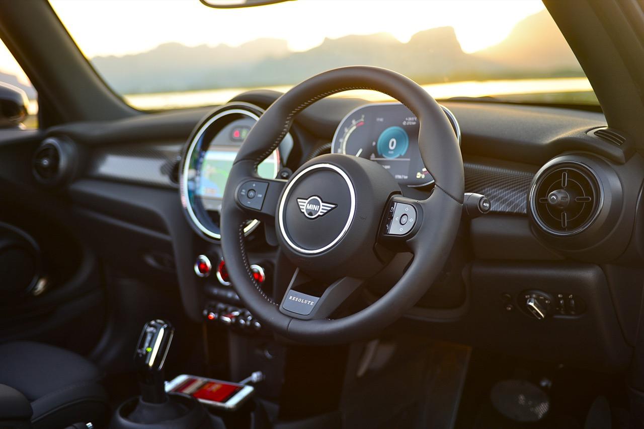 MINI รุ่นใหม่ ภายใต้การบริหารของ BMW นั้นดูเหมือนจะมีขนาดที่ใหญ่ขึ้น เพื่อปรับให้รถมีพื้นที่ใช้สอยมากขึ้น ใช้งานได้สะดวกมากกว่าเดิม รูปแบบที่มีความทันสมัยเชื่อมโยงกับความคลาสสิกในอดีต กับความบันเทิงหลังพวงมาลัย รถ MINI รุ่นเปิดประทุน Cooper S Convertible LCI Resolute 2023 คือ MINI สามประตูที่ใช้หลังคาผ้าใบทำงานด้วยระบบไฟฟ้าเพื่อพับเก็บหรือกางออกเพื่อปิดคลุมส่วนบน เป็น MINI เปิดหลังคาที่เปิดตัวในงานโตเกียวมอเตอร์โชว์ เมื่อปี ค.ศ. 2014 และมีการปรับโฉมอย่างต่อเนื่องจนมาถึงเวอร์ชัน LCI (ครั้งที่สาม) ในช่วงกลางปี 2023 MINI Cooper S Convertible LCI Resolute คือ MINI Convertible เปิดหลังคาที่มีหลังคาผ้าใบแบบพับเก็บได้ ทำงานด้วยกลไกไฟฟ้า รูปแบบของตัวถังยังคงเหมือนกับ Cooper S F56 LCI รุ่นหลังคาแข็ง สิ่งที่สร้างความแตกต่างก็คือ หลังคาที่พับเก็บเมื่อไหร่มันจะดูดีกว่ารุ่น 3 ประตู พร้อมบรรยากาศของการขับแบบไร้หลังคาและสไตล์โกคาร์ทที่ให้อารมณ์สนุกสนาน หลังคาผ้าสีดำคาดลายธงอังกฤษ