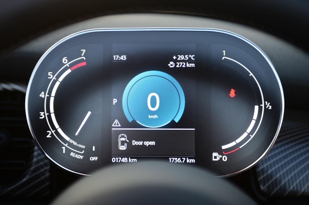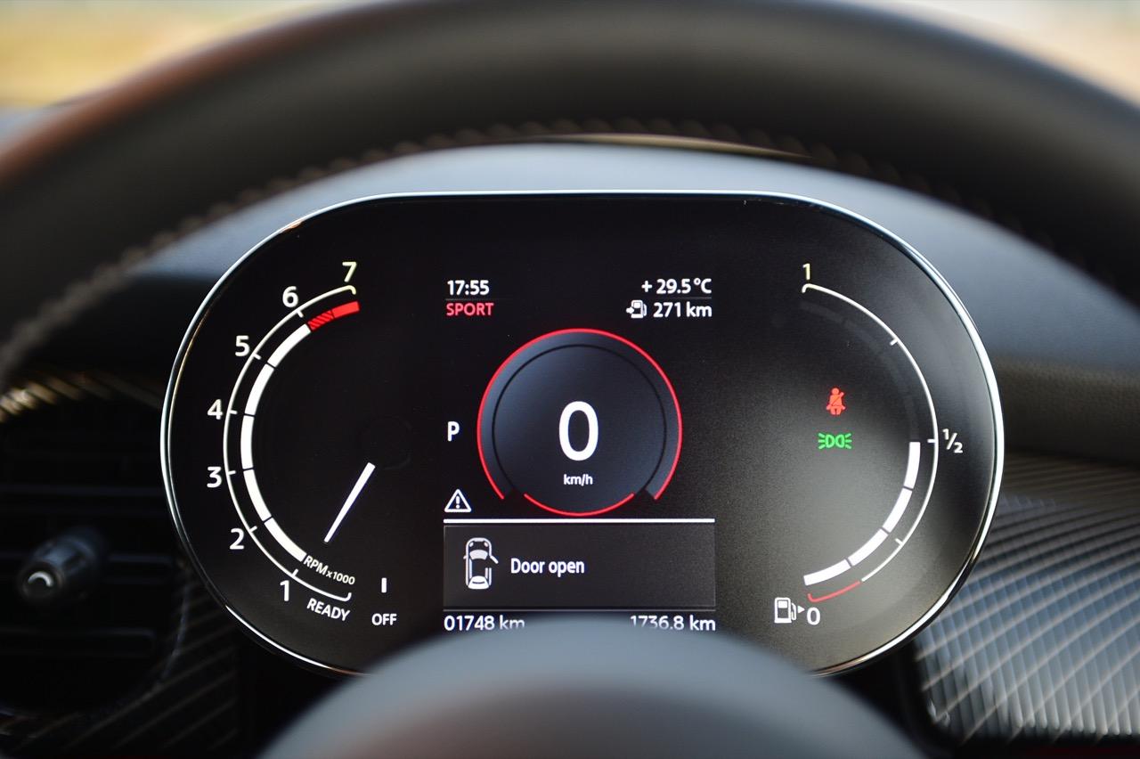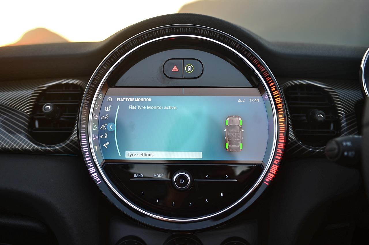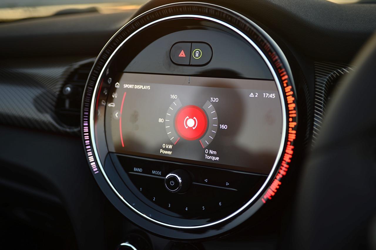มาตรวัดความเร็วและวัดรอบแบบใหม่ อ่านค่าได้ง่าย การปรับปรุงในตำแหน่งของช่องบอกปริมาณเชื้อเพลิงมีความชัดเจนมากกว่าเดิม จอแสดงผลกลาง สั่งงานด้วยการควบคุมผ่านแป้น controller หรือใช้นิ้วแตะที่หน้าจอเพื่อสั่งงานในระบบสัมผัส หน้าจอล้อมกรอบด้วยหลอด LED ในรูปแบบที่ถูกเติมเต็มด้วยสีสันเร้าใจ จอแสดงผลกลางพร้อมด้วยกราฟิกแบบใหม่ ใช้แสงจากหลอด LED ทำหน้าที่บอกสถานะการทำงานของเครื่องยนต์และการปรับตั้งต่างๆ ด้วยสัญลักษณ์แสงสีต่างๆ จอภาพตรงกลางยังเป็นมอนิเตอร์ของกล้องมองหลัง พร้อมเซนเซอร์ที่ใช้ในการกะระยะถอยหลัง คอยส่งสัญญาณเสียงแจ้งเตือนคนขับเมื่อถอยเข้าใกล้กับวัตถุกีดขวาง สำหรับหน้าจอแสดงผลส่วนกลางที่เป็นเอกลักษณ์ของ MINI ยังได้รับการออกแบบให้เจ้าของรถสามารถเลือกการแสดงผลในฟังก์ชันต่างๆ ได้อย่างหลากหลาย เป็นของเล่นที่ออกแบบให้ใช้งานได้ง่ายๆ โดย MINI Cooper S Convertible มาพร้อมหน้าจอสีสั่งงานด้วยระบบสัมผัสขนาด 8.8 นิ้ว แสดงผลที่เกี่ยวกับฟังก์ชันกับสภาวะการปรับตั้งระบบต่างๆ ของรถ สาระความบันเทิง และการเชื่อมต่อ MINI Connected สำหรับฟังก์ชันดังกล่าวมีระบบควบคุม MINI Touch Controller ที่ทำงานโดยใช้ระบบสัมผัสปลายนิ้วลงไปบนแป้นควบคุม เพื่อให้ผู้ขับขี่สามารถป้อนข้อมูลได้จากการเขียนด้วยนิ้วมือลงบนปุ่ม Controller ได้โดยตรง ในตำแหน่งของ MINI Touch Controller กราฟิกของฟังก์ชันต่างๆ เมื่อเข้าสู่เมนูหลักและเมนูแยกย่อยถูกปรับเปลี่ยนรูปแบบการแสดงผลใหม่ทั้งหมด