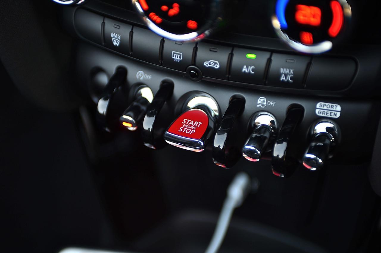 ปุ่มปรับโหมดขับเคลื่อนรวมอยู่กับสวิตช์ควบคุมบริเวณคอนโซลกลาง กุญแจแบบ Keyless ที่ติดตั้งระบบติดตามกุญแจด้วยสัญญาณเสียง ที่แถมมาให้สำหรับ MINI Cooper S รุ่นใหม่ทุกโมเดล ปุ่มปรับอุณหภูมิของห้องโดยสารยังเหมือนเดิม ที่เพิ่มเติมคือการใช้งานฟังก์ชันต่างๆ นั้นปรับมาให้มีความสะดวกรวดเร็ว โดยเฉพาะจอภาพมอนิเตอร์ที่สามารถกดสั่งงานบนหน้าจอด้วยระบบสัมผัส ทำให้การใช้งานระบบนำทางด้วยดาวเทียมมีความดีงามมากยิ่งขึ้นจากความสะดวกรวดเร็วและง่ายนั่นเอง