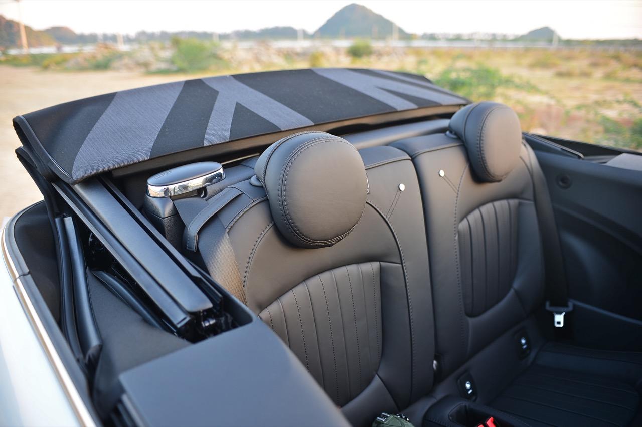 เมื่อลมหนาวพัดผ่านประเทศไทย หลังคาผ้าขับเคลื่อนของ MINI จะเปิดออกเพื่อทำให้คุณได้สัมผัสกับอากาศเย็นที่แสนจะสดชื่น หลังคาผ้าพับเก็บ หรือกางออกเพื่อปิดคลุมภายในเวลาเพียง 18 วินาที เบาะด้านหลังใน MINI Cooper S Convertible นั้นทั้งเล็กและคับแคบ เหมาะกับการใช้เป็นที่นั่งของปอมเมอเรเนียนหรือชิวาวามากกว่าจะให้คนตัวโตๆ ลงไปนั่ง