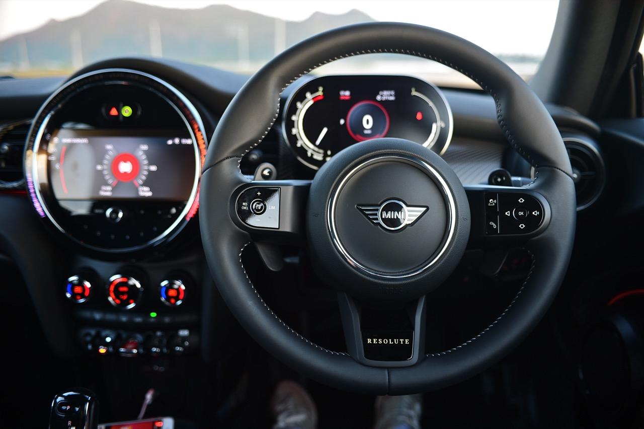 Cooper S มีระดับการตัดแต่งที่ได้รับการปรับปรุงโดย MINI มีให้เลือกสามรูปแบบคือ Classic, Sport หรือ Exclusive และ Resolute รุ่นพิเศษ ที่เข้ามาเติมเต็มไลน์อัป อุปกรณ์ตกแต่งกำหนดสไตล์ภายนอกและภายใน Resolute edition มาพร้อมล้ออัลลอยขนาด 18 นิ้ว สีดำเงา กล้องมองหลัง ระบบช่วยจอด ระบบนำทางดาวเทียม แต่ไม่มีระบบเสียง Harman Kardon ที่เคยมีอยู่ใน Cooper S Convertible ที่ผมเอามาทดสอบเมื่อสองปีก่อน