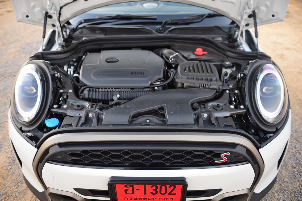 กดปุ่มสตาร์ตเครื่องยนต์ด้วยสวิตช์สีแดง เครื่องยนต์ 2 ลิตร MINI TwinPower Turbo ติดขึ้นมาอย่างเร็ว โยกคันเกียร์หน้าตาคล้ายแท่งไอติมไปที่ตำแหน่ง D แล้วคลายเท้าออกจากแป้นเบรก ผมขับเจ้า MINI เปิดหลังคาที่ยังคงปิดสนิทแน่น โดยใช้เส้นทางมุ่งหน้าไปทางทิศใต้ของกรุงเทพมหานคร บนเส้นทางพระรามสอง วังมะนาว เลียบทะเลบางตะปูน บายพาสชะอำปราณบุรีไปจนถึงอุทยานสามร้อยยอด กำลังที่ส่งถ่ายออกมาจากเครื่องยนต์ผ่านระบบเกียร์แบบใหม่ในโหมด MID MODE เป็นหน่วยขับเคลื่อนเริ่มต้นของ Cooper S ทุกครั้งที่สตาร์ตเครื่องยนต์ การทำงานของเครื่องยนต์และเกียร์มีค่าการตอบสนองในระดับกลางๆ ด้วยคันเร่งที่ยืดหยุ่น ส่วนหนึ่งเกิดจากผลพลอยได้ของการเปลี่ยนชุดส่งกำลังมาเป็นเกียร์คลัตช์คู่ 7 สปีด เกียร์ทวินคลัตช์ลูกใหม่ที่ใส่เข้ามาในรุ่น Cooper S เครื่องยนต์เบนซินเพื่อความรวดเร็วในการเปลี่ยนอัตราทด ช่วยทำให้การเร่งแซงรถช้า หรือการขับขึ้นภูเขาสูงชัน Cooper S เครื่องเบนซิน 2 ลิตร 4 สูบ เทอร์โบแปรผันแบบ Twin Scroll วางตามขวางขับเคลื่อนล้อหน้าระบบอัดอากาศเทอร์โบเดี่ยวลูกเดียวโดดๆ กับฟังก์ชัน Overboost ทำงานได้อย่างไร้ที่ติ และมีอัตราความประหยัดที่น่าพอใจ ไม่แรงเท่า Cooper JCW แต่ใช้งานได้ดีในชีวิตประจำวัน ทั้งการขับในเมืองหรือขับท่องเที่ยวทางไกล