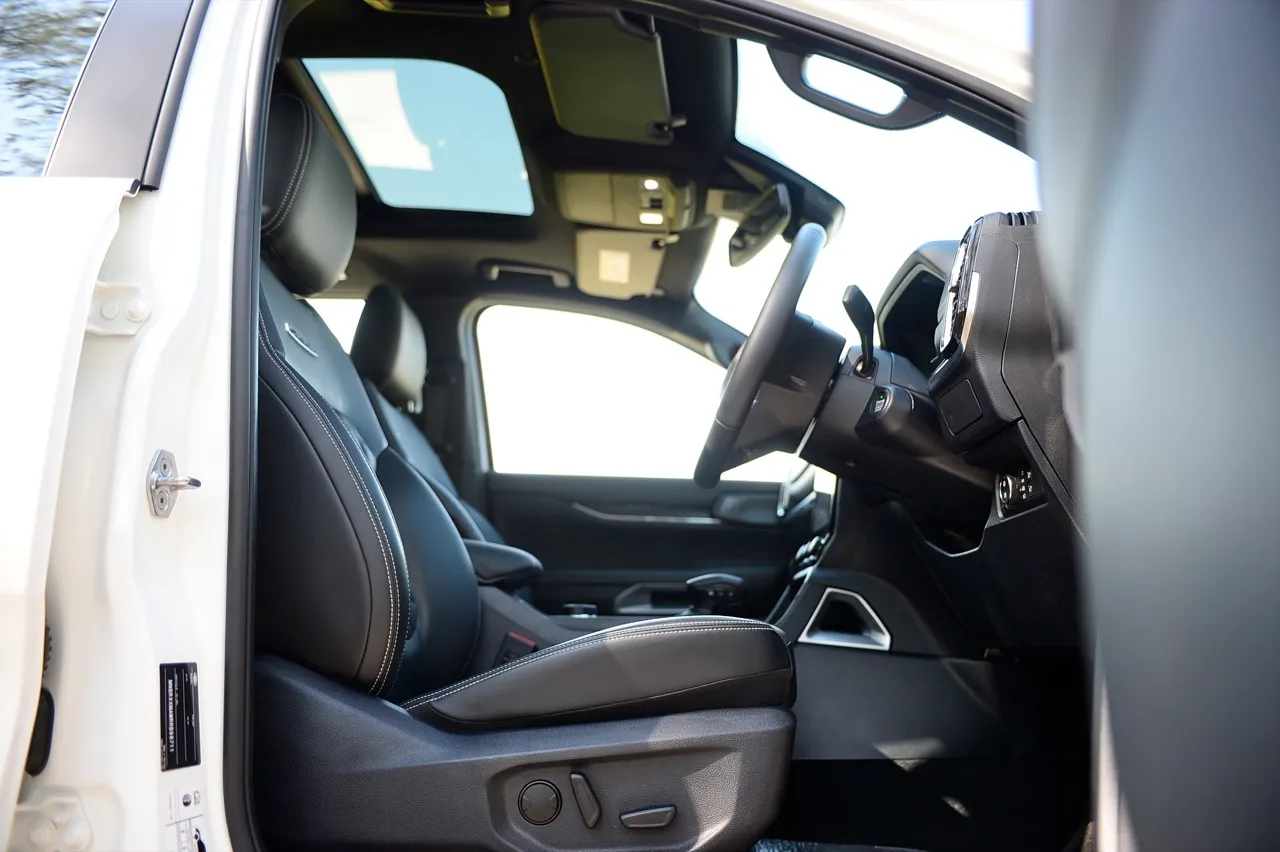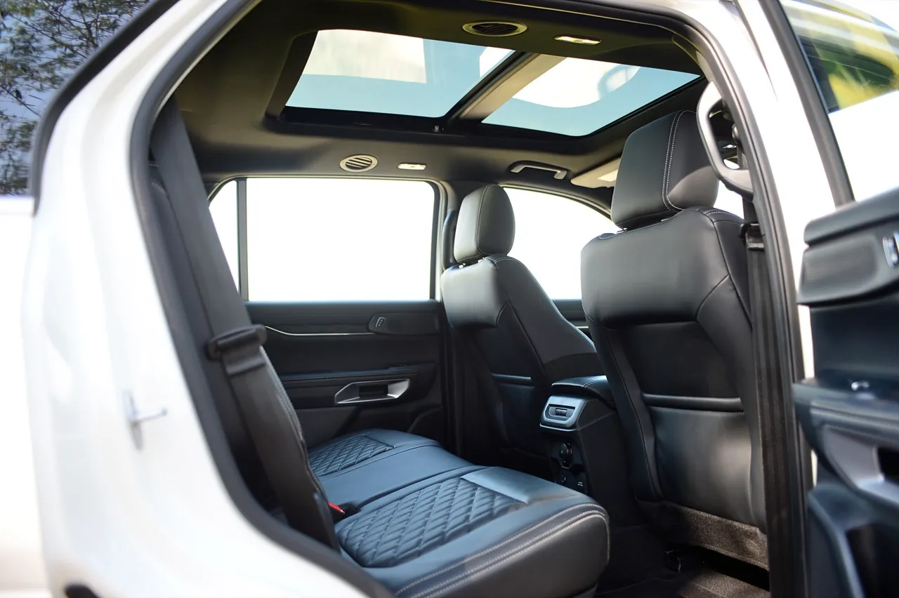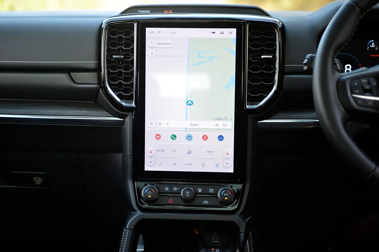 อุปกรณ์ภายในจัดเต็มตามราคาค่าตัวในกลุ่ม New Everest V6 กระจกหลังคาไฟฟ้า Panoramic Roof พร้อมม่านบังแดดไฟฟ้า แท่นชาร์จโทรศัพท์ไร้สาย หน้าจอภาพมาตรวัดบนหน้าปัดแบบสีขนาด 12.4 นิ้ว หน้าจอแสดงผลจอสีแบบสัมผัส Multi-Touch ขนาด 12 นิ้ว รองรับ Wireless Apple Carplay และ Android Auto SYNC® 4A ภาษาไทย พร้อมการเชื่อมต่อ Bluetooth ช่องต่อ USB 4 ตำแหน่ง ลำโพง B&O 12 ตำแหน่ง พร้อมซัฟวูฟเฟอร์ ระบบปรับอากาศดูอัลโซน กล้องมองภาพรอบคัน กล้องในโหมดออฟโรด ที่ทำออกมาให้สะดวกในการใช้งานก็คือ Wireless Apple Carplay หรือเชื่อมต่อผ่าน USB ที่มีมาให้ทั้ง Type A และ C