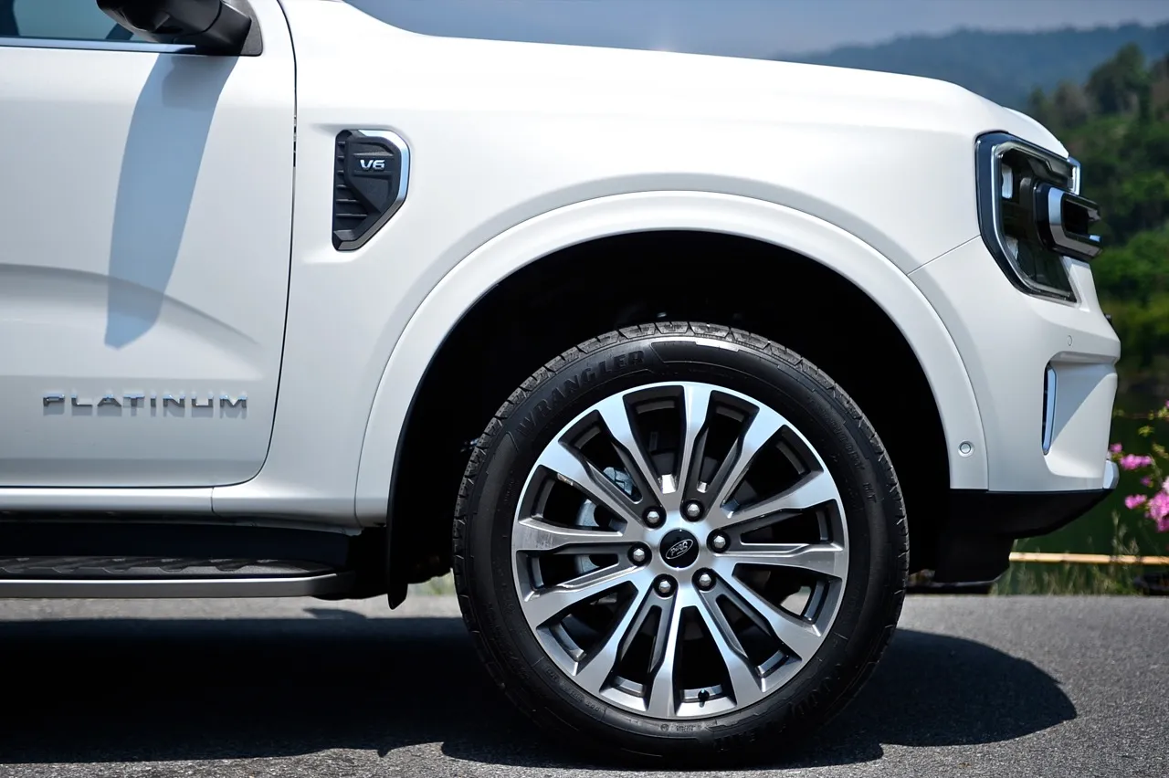 Ford Everest Platinum V6 3.0L Turbo 10A/T ค่าตัวแพงเอาเรื่องที่ 2,279,000 บาท และมีเพียงแค่ 350 คันเท่านั้น Everest V6 3.0 ลิตร เทอร์โบ 250 แรงม้า ได้ม้าเพิ่มมาอีก 40 ตัว เมื่อเทียบกับ Everest Wildtrak 2.0 4x4 10AT ส่วนแรงบิด จาก 500 นิวตันเมตร ได้มาอีก 100 นิวตันเมตร เป็น 600 นิวตันเมตร ออกตัวเร็วๆ พุ่งเอาเรื่องทันอกทันใจกว่าเดิม Everest Platinum V6 เป็นรถ PPV-SUV มาพร้อมกับเครื่องยนต์ดีเซลความจุ 3 ลิตร ระบบอัดอากาศเทอร์โบเดี่ยว รูปลักษณ์เอสยูวีอเมริกัน ถูกใจคนไทยตั้งแต่รถเจนแรก จนมาถึงเจนล่าสุดก็ยังมีการออกแบบภายนอกและภายในที่ลงตัว หน้าตาเกลา มาให้แตกต่างไปจาก Everest รุ่นอื่น ด้วยชุดแต่ง Platinum ที่ดูเป็นผู้ใหญ่มากกว่า Everest Wildtrak ระบบส่งกำลังใหม่ล่าสุดที่เปิดตัวในออสเตรเลียแล้วก็มาต่อที่ประเทศไทย ตามคำเรียกร้องของลูกค้าซึ่งอยากได้ความแตกต่าง เครื่อง V6 3 ลิตร กับเกียร์มิชิแกน 10 สปีด จูนมาให้มีความสมดุลในการส่งถ่ายกำลัง ฟีลลิ่งของเกียร์ดูจะไหลลื่นขึ้นกว่าเดิมเมื่ออยู่ในเครื่อง V6 จุดที่มีความน่าสนใจของเครื่องยนต์ V6 ดีเซลเทอร์โบก็คือ มันเดินเรียบ มีแรงสั่นสะเทือนจากการทำงานในรอบเดินเบาไม่มาก เสียงเครื่องก็เงียบกว่าดีเซล Bi Turbo 2.0 ลิตรอย่างเห็นได้ชัด