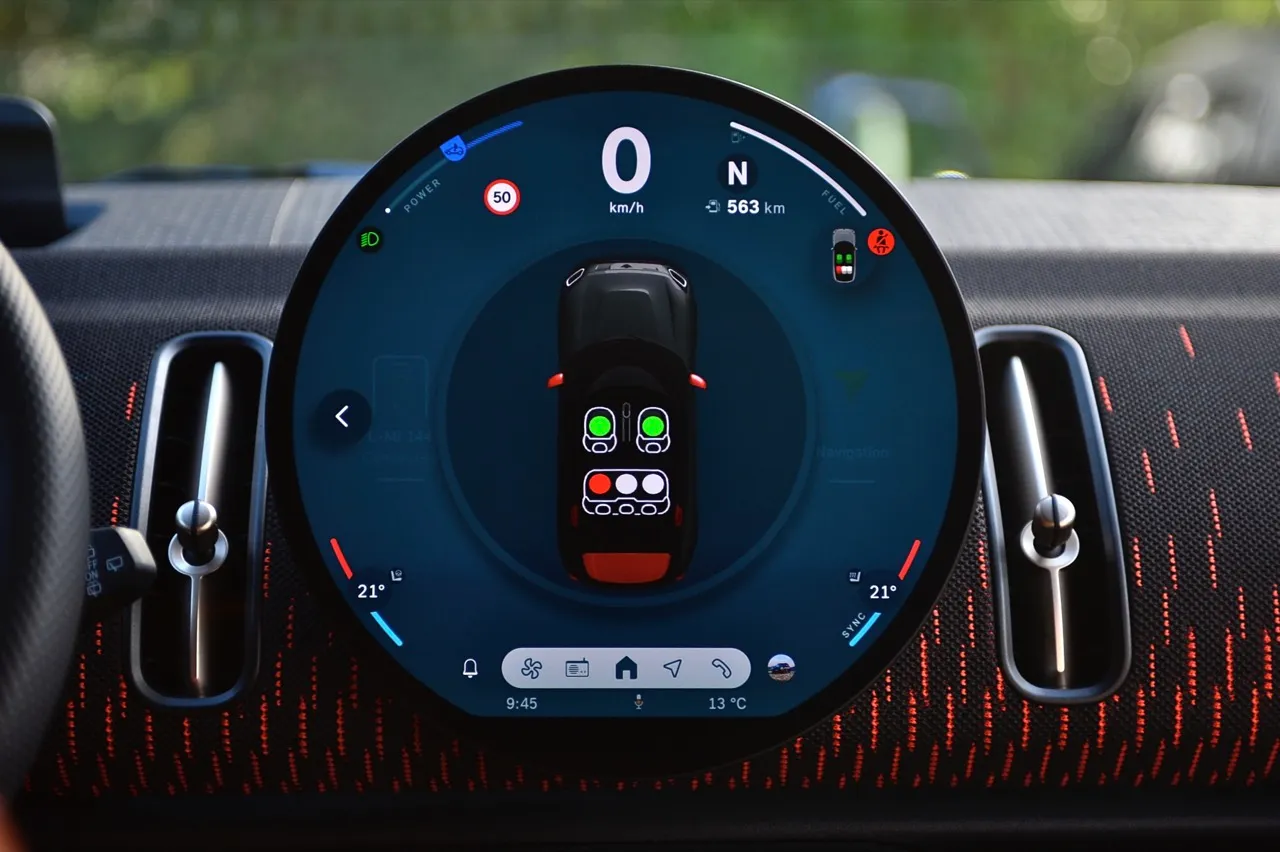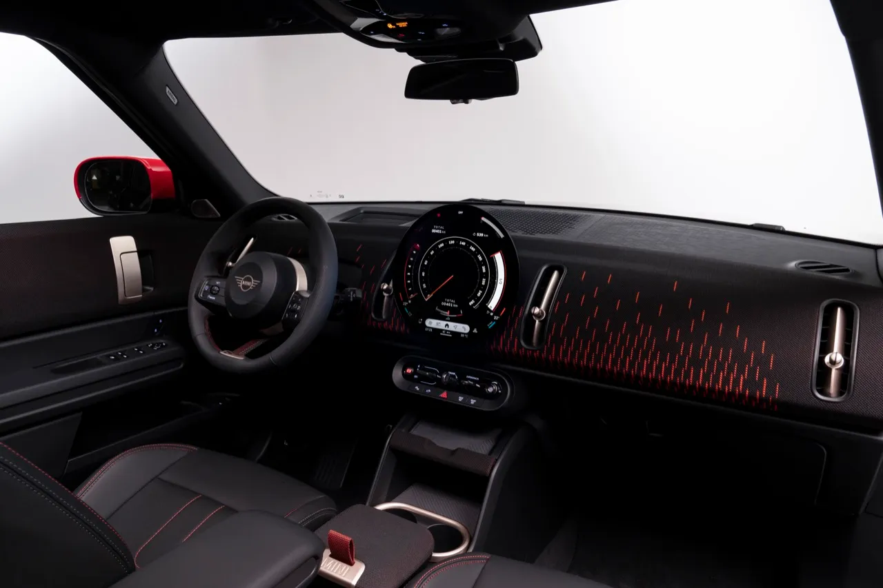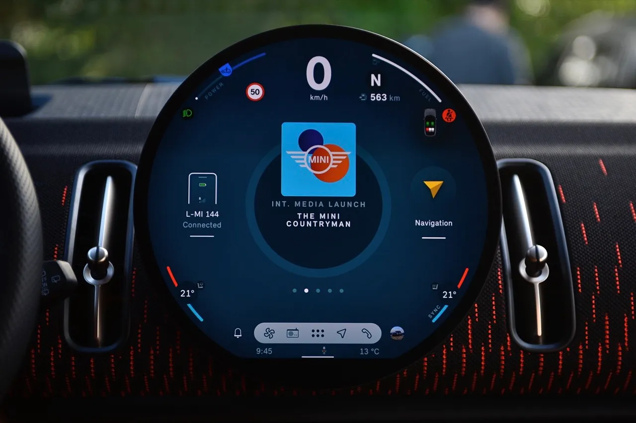 จุดที่ Countryman John Cooper Works รุ่นใหม่ยึดหลักความเป็นผู้นำ ด้วยการเข้าใจถึงความซับซ้อนของระบบเชื่อมต่อยุคใหม่ และการแปลงเป็นดิจิทัลที่ใช้งานง่ายด้วยกราฟิกที่น่ารักเต็มไปด้วยสีสัน การตอบสนองของจอภาพด้วยระบบสัมผัสนั้นเร็วกว่า ทีมออกแบบของ MINI ทำจอภาพ OLED และระบบปฏิบัติการ OS9 ออกมาอย่างสมบูรณ์แบบ ทำให้ Countryman ฉลาดหลักแหลม มีจินตนาการ และให้ความสำคัญกับเทคโนโลยีที่นำมาใช้ ทุกฟังก์ชันใช้งานง่าย ซึ่งกลายเป็นการก้าวกระโดดทางระบบดิจิทัลไปโดยปริยาย จุดโฟกัสอยู่ที่จอแสดงผล OLED มีเส้นผ่านศูนย์กลาง 240 มม. และอัดแน่นไปด้วยคุณสมบัติมากมายจนยากที่จะลองเล่นจนครบทั้งหมดทุกฟังก์ชัน
