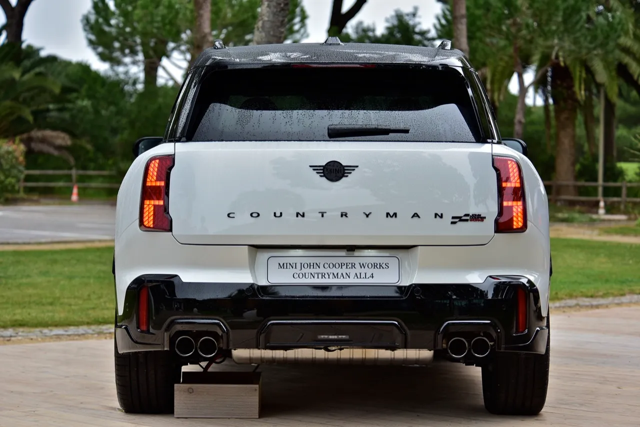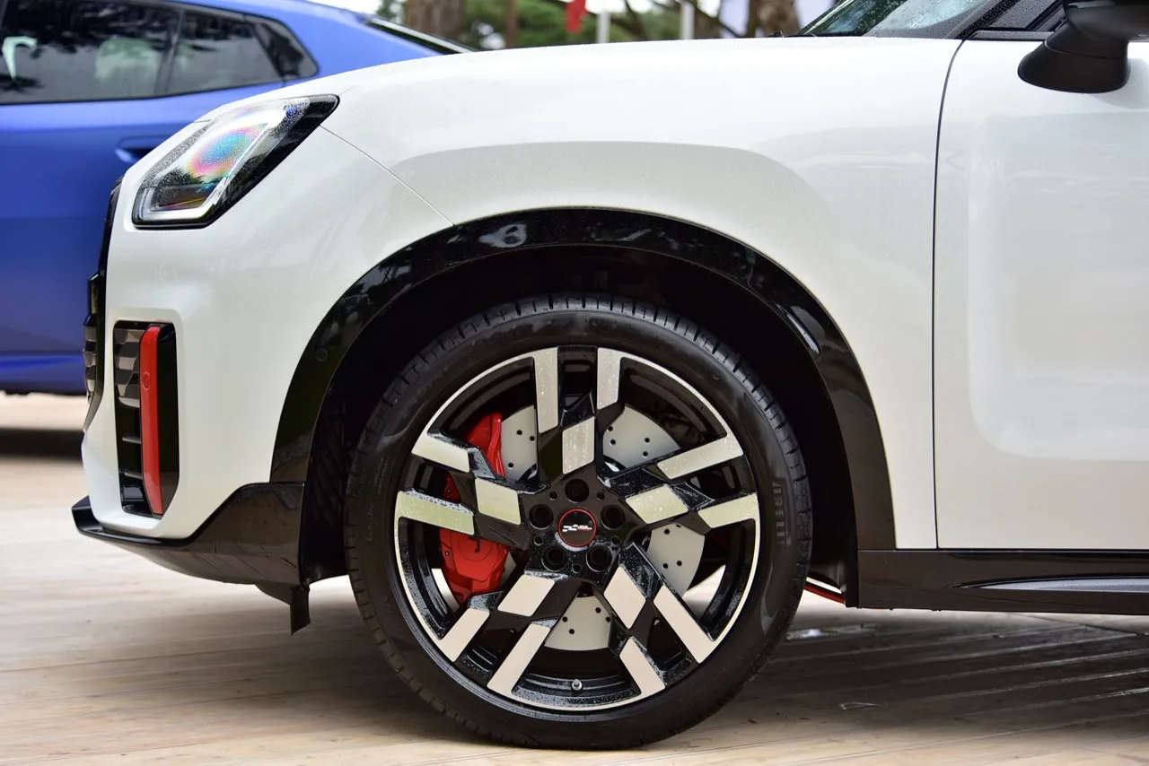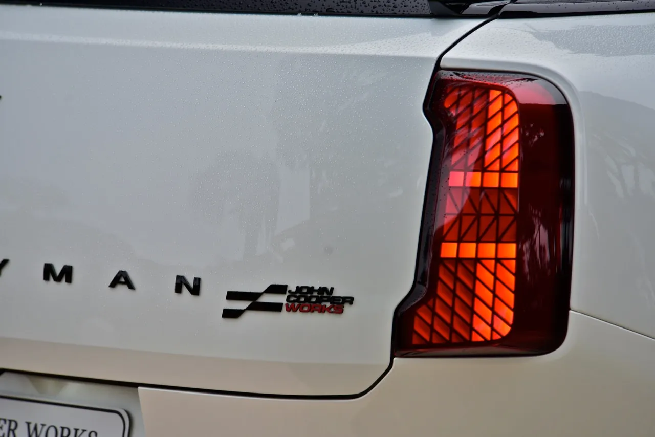 Countryman JCW 2024 มีงานตกแต่งที่แตกต่างออกไป กระจังหน้าทรงแปดเหลี่ยมสีดำเงาแบบใหม่ พร้อมแถบสีแนวตั้งที่ช่องดักอากาศด้านข้าง เซนเซอร์เรดาร์ ช่วยให้รถสามารถขับขี่กึ่งอัตโนมัติระดับ 2 ไฟท้ายทรงเหลี่ยม ไฟหน้าใหญ่ขึ้น ไฟหรี่กลางวัน LED Daytime ซุ้มล้อและด้านข้างตัวรถดูบึกบึนมากกว่าเดิม แผงพลาสติกสีตัดกันที่เสา C Countryman JCW 2024 ติดตั้งท่อไอเสียแบบสี่เหลี่ยมตัดกับหลังคาสีแดงหรือดำ แถบฝากระโปรงสีแดงหรือสีดำ ขึ้นอยู่กับสีตัวถัง หัวหน้าทีมออกแบบ Oliver Heilmer มุ่งไปสู่ "ความเรียบง่ายที่มีเสน่ห์" ของ Countryman JCW เน้นกว้างขวาง ใช้งานได้หลากหลาย โดยเฉพาะรุ่น JCW ที่ตอบสนองได้ดีสุด