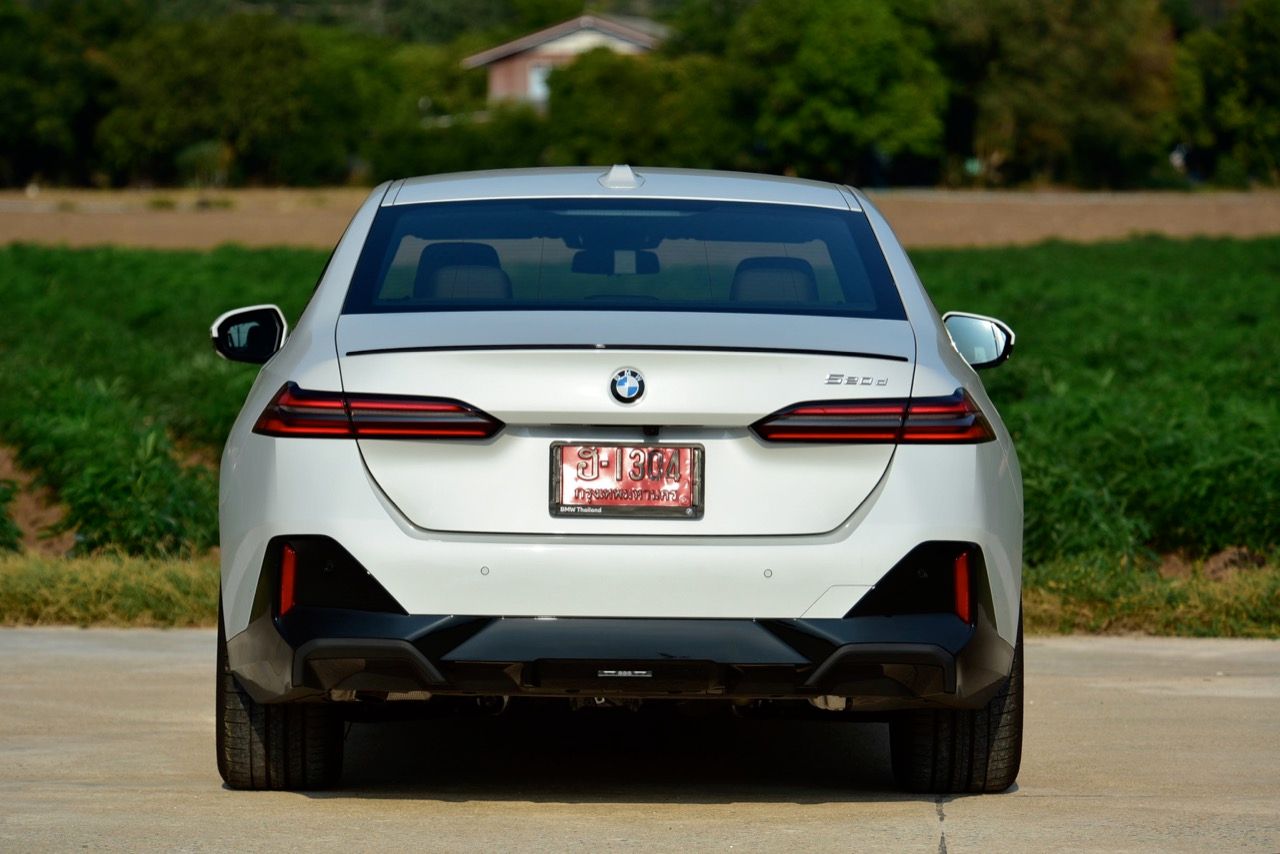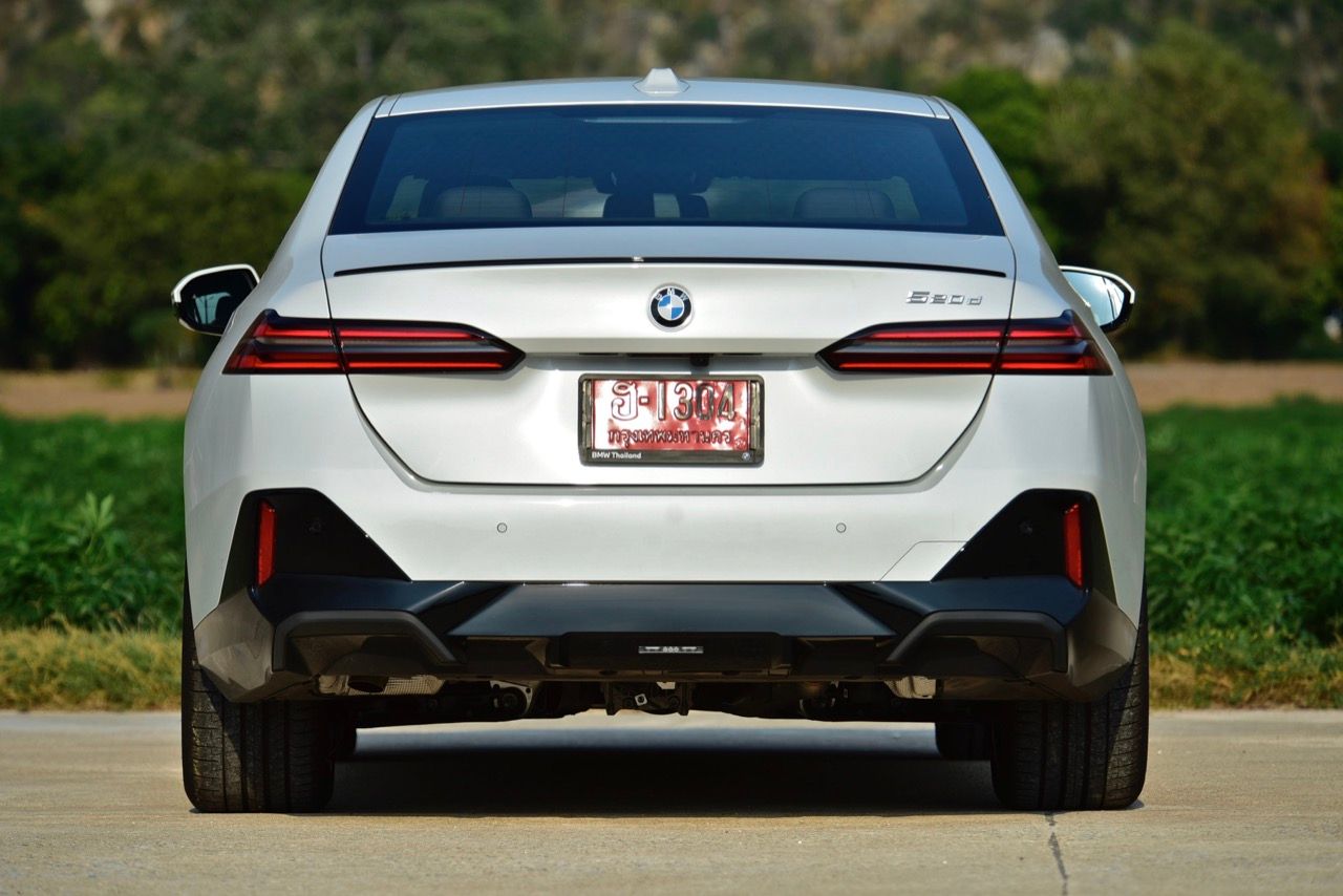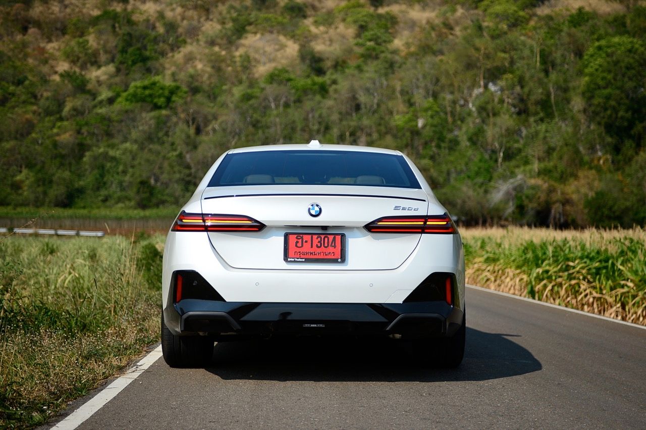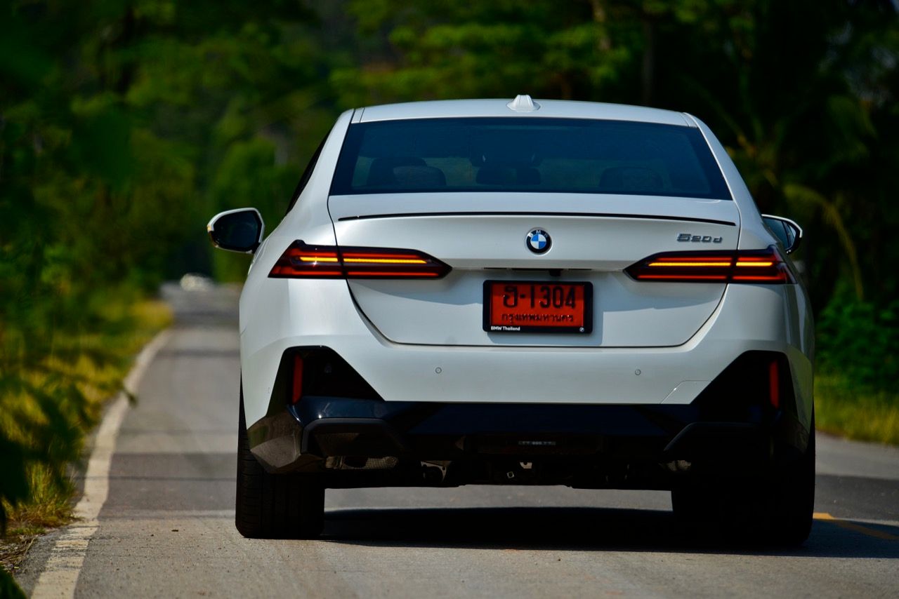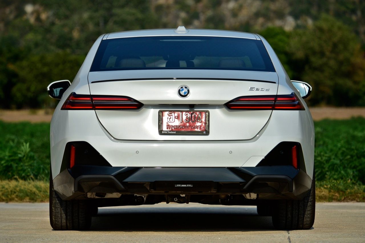 BMW 520d และ 530e G60 ไม่มีท่อไอเสียที่มองเห็นได้อีกต่อไป ท่อไอเสียซ่อนอยู่ใต้กันชนหลัง และไม่ใช่เรื่องปกติสำหรับ BMW ซึ่งเป็นหนึ่งในผู้ผลิตที่หลีกเลี่ยงเทรนด์ปลายท่อไอเสียปลอมที่ครองวงการอุตสาหกรรมยานยนต์มานานแล้ว 520d M Sport Pro แสดงให้เห็นพลังไดนามิกทั้งหมดของ BMW ตั้งแต่การบังคับเลี้ยวด้วยการผ่องถ่ายน้ำหนักของพวงมาลัยที่น่ารัก ซึ่งเป็นเรื่องที่ดีสำหรับคนที่เลือก Series-5 รุ่นดีเซล โหมด Comfort นุ่มนวล และล่องลอยบนถนนลาดยางด้วยล้อขนาด 20 นิ้ว ในขณะที่ในโหมด Sport จะตอบสนองได้รวดเร็วกว่า ฟีลลิ่งของ 520d ให้ความรู้สึกแตกต่างอย่างชัดเจน นับตั้งแต่เปิดตัวเมื่อห้าทศวรรษที่แล้ว รถยนต์ซาลูนหรูสัญชาติเยอรมันคันนี้ได้รับการพิสูจน์ครั้งแล้วครั้งเล่า ว่ามันคือยานพาหนะที่มอบความสะดวกสบาย ประโยชน์ใช้สอย เทคโนโลยีใหม่ล่าสุด พร้อมสมรรถนะในการเร่งความเร็วที่เน้นหนักไปทางไดนามิกแบบผ่อนคลาย โดยมีทางเลือกหลักสองทาง ทั้งเบนซิน 2.0 ลิตร เทอร์โบ ปลั๊กอินไฮบริด และดีเซล 2.0 ลิตร เทอร์โบจอมประหยัด ด้วยสไตล์ที่ท้าทาย ทันสมัยสุดๆ แต่ขาดความสง่างามของรุ่นก่อน เส้นสายที่แปลกตาและไม่ค่อยจะต่อเนื่องกันจากกระจังหน้าที่ดูเหมือนฟันของตัวบีเวอร์ แต่ส่วนท้ายที่ลงตัวมีส่วนทำให้รูปลักษณ์ของมันดูหรูหราอย่างไม่เสื่อมคลาย