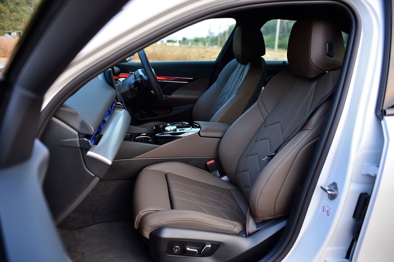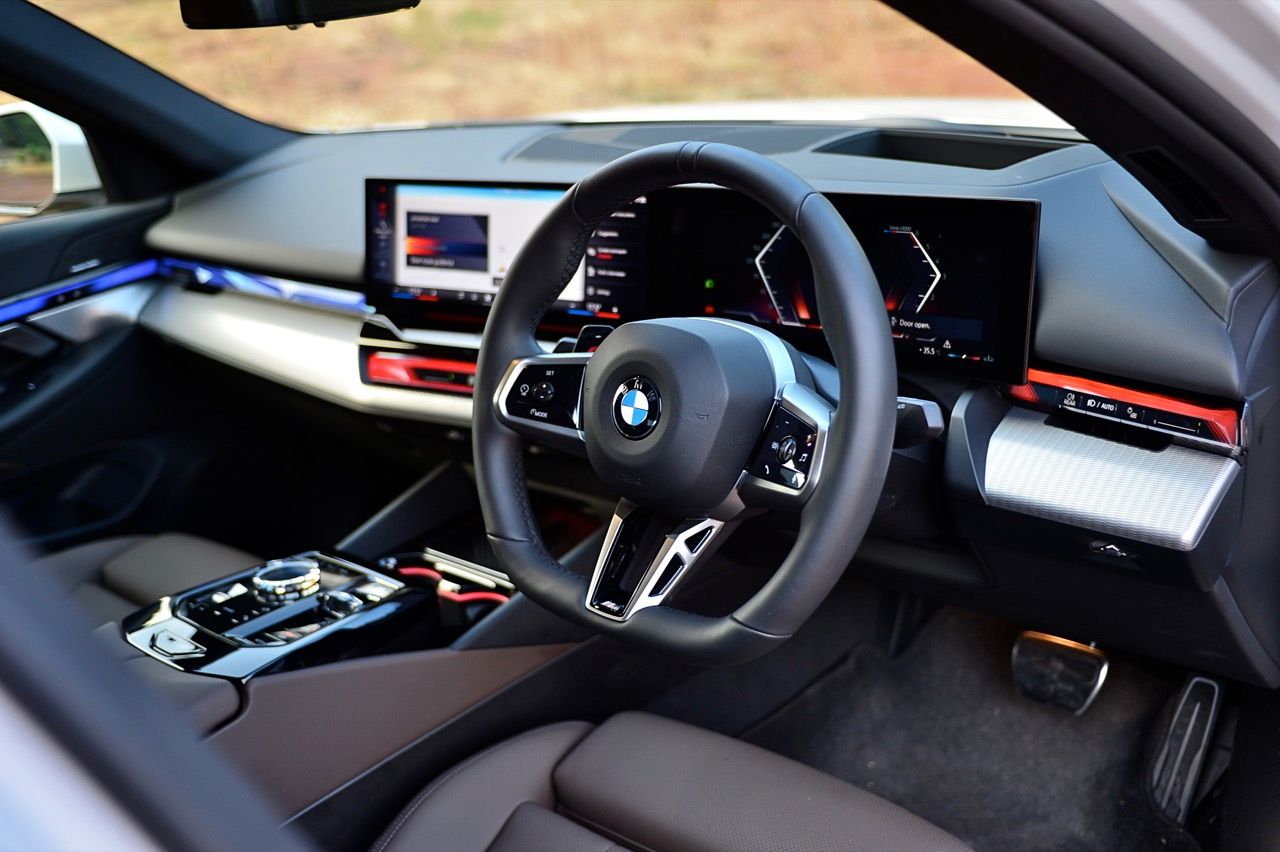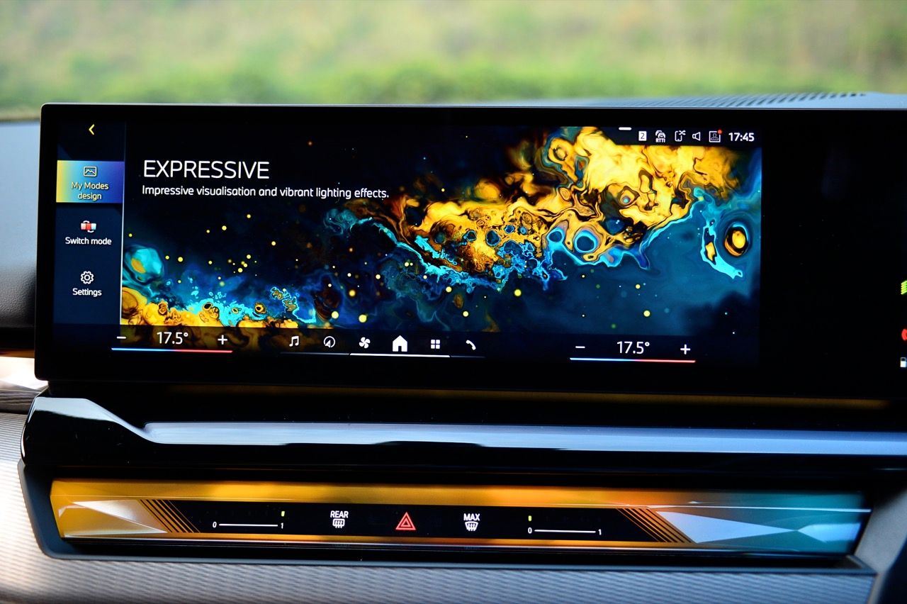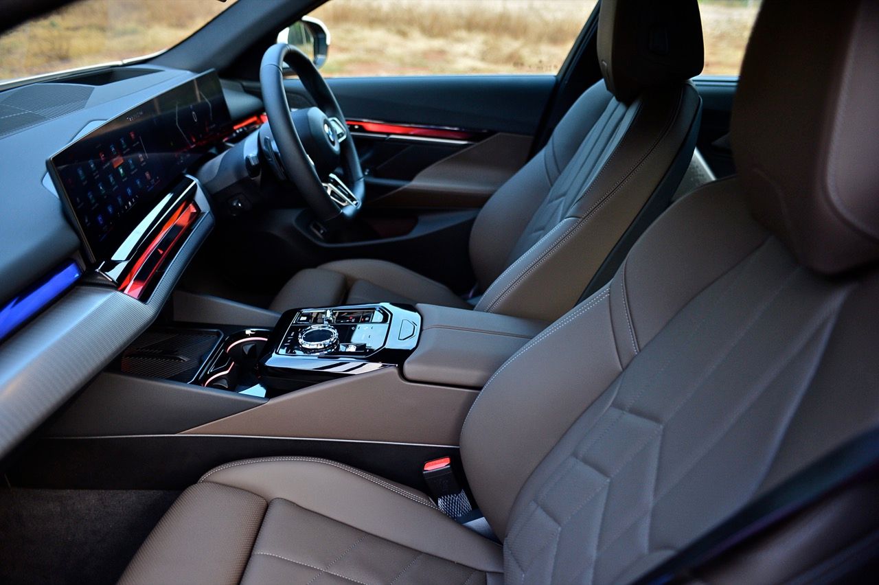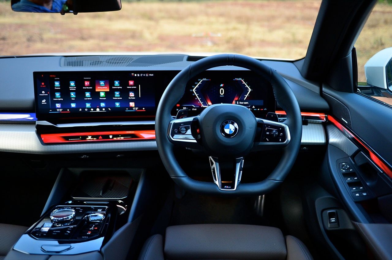 หน้าจอทรงโค้งผสมผสานจอภาพมาตรวัด instrument cluster TFT LCD ขนาด 12.3 และจอภาพมอนิเตอร์กลาง 14.9 นิ้ว ระบบปฏิบัติการ BMW OS 8.5 ซึ่งมีการปรับปรุงฟังก์ชันใหม่ให้ใช้งาน การจัดกลุ่มปุ่มทางลัดบางปุ่มในส่วนล่างของหน้าจอ ช่วยให้เข้าถึงฟังก์ชันของระบบอินโฟเทนเมนต์ การเชื่อมต่ออุปกรณ์ต่างๆ ระบบนำทาง ระบบควบคุมอุณหภูมิ หน้าจอส่วนแอปฯ และเมนูโทรศัพท์ ฟังก์ชันต่างๆ จะปรากฏที่ส่วนล่างของหน้าจอเสมอ ทำให้ผู้ใช้ได้รับประสบการณ์ที่ดีกว่าเดิม BMW เรียกว่า "Quick Select" สามารถตั้งค่าแอปฯ ที่ใช้บ่อยที่สุดเป็นทางลัด ที่สามารถเข้าถึงได้ง่ายผ่านเมนูแบบเลื่อนลงจากด้านบนของหน้าจอ Apple CarPlay แบบไร้สายทำงานได้อย่างไร้ที่ติ พร้อมระบบสั่งงานด้วยเสียงของ BMW ที่ทำงานได้ดีอย่างน่าประหลาดใจ (ใน i5 M60) ในการทำความเข้าใจกับคำพูดที่เป็นธรรมชาติ เพื่อเปิดใช้งานฟังก์ชันที่คนขับต้องการ