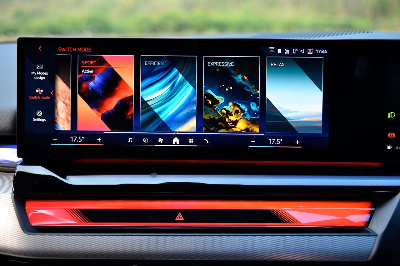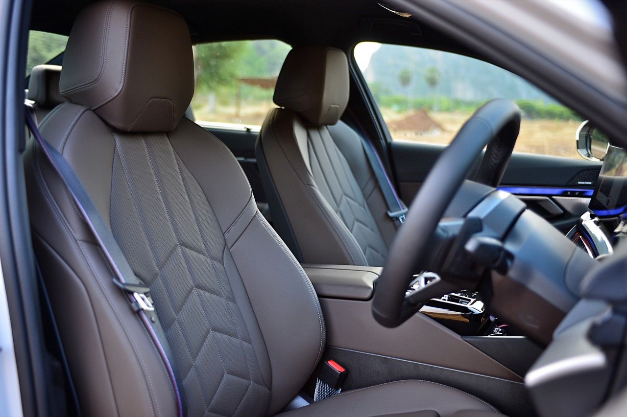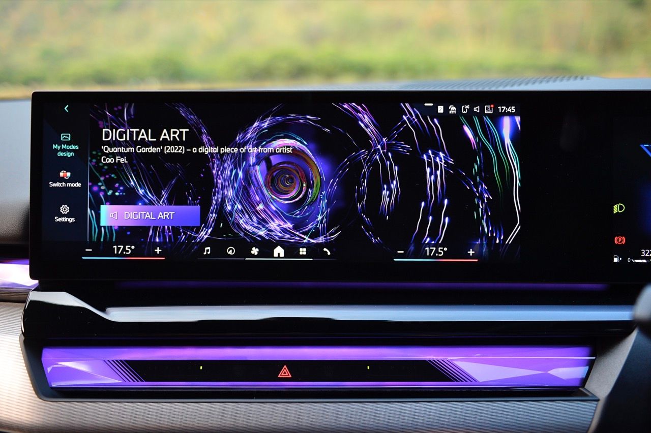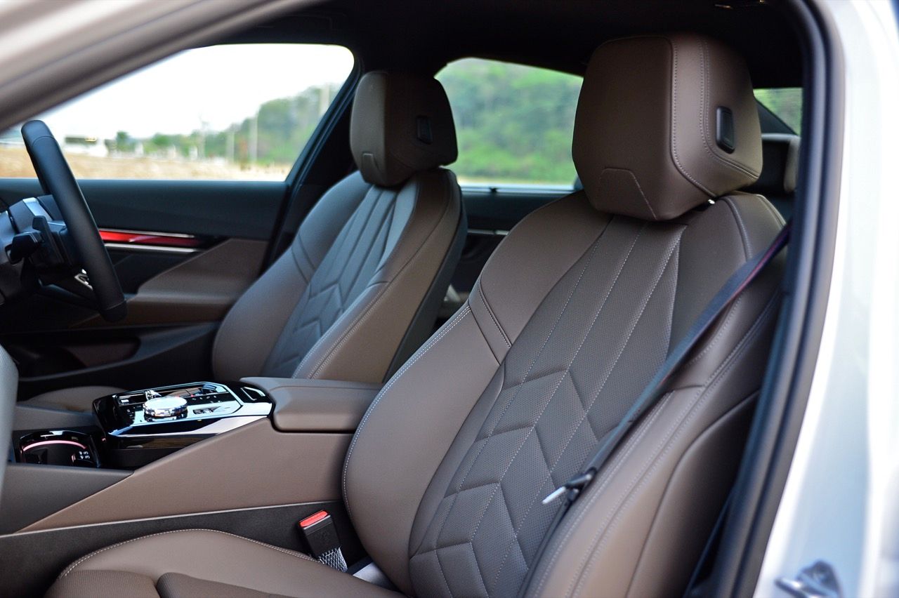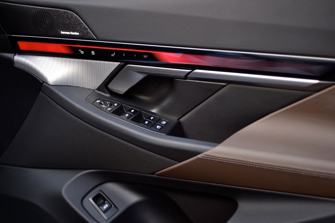หน้าจอทรงโค้งผสมผสานจอภาพมาตรวัด instrument cluster TFT LCD ขนาด 12.3 และจอภาพมอนิเตอร์กลาง 14.9 นิ้ว ระบบปฏิบัติการ BMW OS 8.5 ซึ่งมีการปรับปรุงฟังก์ชันใหม่ให้ใช้งาน การจัดกลุ่มปุ่มทางลัดบางปุ่มในส่วนล่างของหน้าจอ ช่วยให้เข้าถึงฟังก์ชันของระบบอินโฟเทนเมนต์ การเชื่อมต่ออุปกรณ์ต่างๆ ระบบนำทาง ระบบควบคุมอุณหภูมิ หน้าจอส่วนแอปฯ และเมนูโทรศัพท์ ฟังก์ชันต่างๆ จะปรากฏที่ส่วนล่างของหน้าจอเสมอ ทำให้ผู้ใช้ได้รับประสบการณ์ที่ดีกว่าเดิม BMW เรียกว่า "Quick Select" สามารถตั้งค่าแอปฯ ที่ใช้บ่อยที่สุดเป็นทางลัด ที่สามารถเข้าถึงได้ง่ายผ่านเมนูแบบเลื่อนลงจากด้านบนของหน้าจอ Apple CarPlay แบบไร้สายทำงานได้อย่างไร้ที่ติ พร้อมระบบสั่งงานด้วยเสียงของ BMW ที่ทำงานได้ดีอย่างน่าประหลาดใจ (ใน i5 M60) ในการทำความเข้าใจกับคำพูดที่เป็นธรรมชาติ เพื่อเปิดใช้งานฟังก์ชันที่คนขับต้องการ