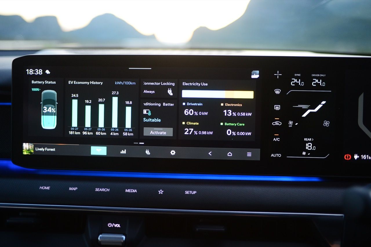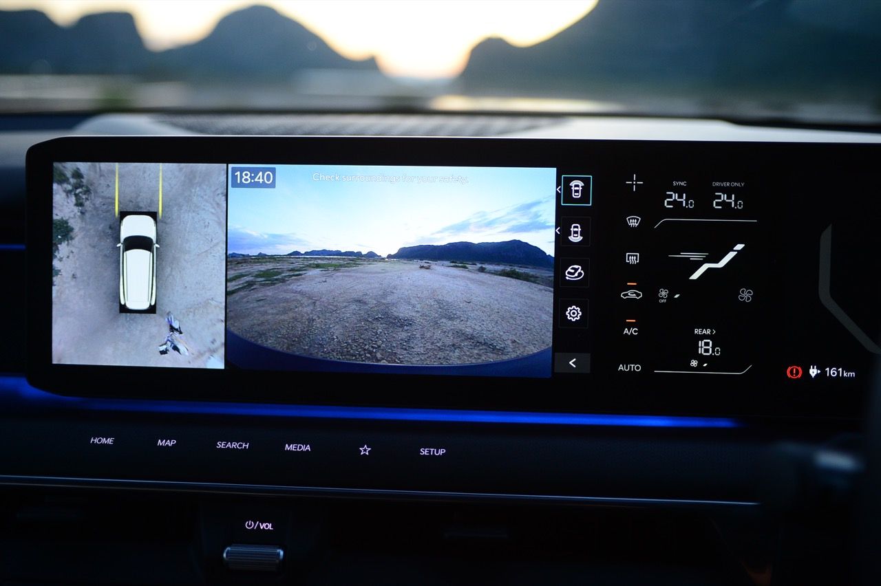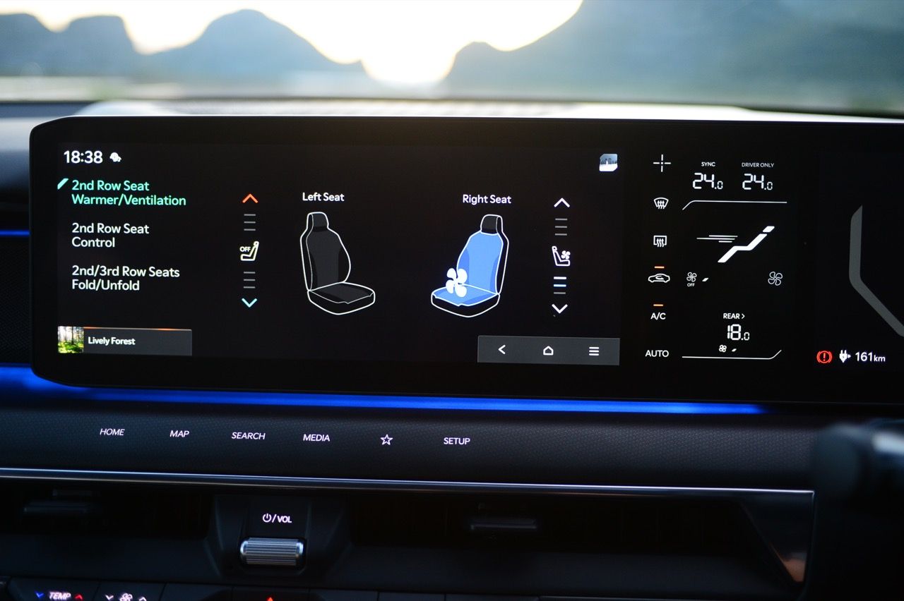 หน้าจอสัมผัสหลักขนาด 12.3 นิ้ว เนื่องจาก Kia ออกแบบชุดควบคุมอุณหภูมิทางกายภาพด้วยหน้าจอควบคุมระบบแอร์ที่ถูกพวงมาลัยบดบังเกือบทั้งหมด มีพื้นที่สำหรับปุ่มหลักต่างๆ ที่ใช้งานได้สะดวก ออกแบบมาเพื่อเป็นพาหนะของครอบครัวโดยไม่ต้องกังวลใจ ปุ่มบนพวงมาลัย ระบบเตือนความสนใจของผู้ขับ ซึ่งส่งเสียงบี๊บเมื่อคุณพยายามจะทำอะไรที่รถคิดว่าอาจไม่ปลอดภัย หรือระบบแจ้งเตือนระยะห่างท่ีช่วยจำกัดความเร็วและส่งเสียงเตือนทันทีหากขับเข้าใกล้รถคันข้างหน้าหรือเปลี่ยนช่องทางแบบขาดความระวัดระวัง เทคโนโลยีระบบความปลอดภัยส่วนใหญ่ทำงานเร็ว แต่ก็แทรกแซงการขับอยู่เหมือนกัน ผมปิดระบบรักษาช่องทาง ผลก็คือ รถยนต์ที่ถูกปิดระบบช่วยเหลือคนขับและการพึ่งพาหน้าจอสัมผัสมากเกินไปจะมีพวงมาลัยท่ีดีขึ้นมากๆ การมีสมาธิจดจ่ออยู่กับการควบคุมตลอดเวลา มีความปลอดภัยมากกว่าการพึ่งพาระบบช่วยเหลือต่างๆ ซึ่งคุณสามารถปรับตั้งให้มันคอยเฝ้าระวังแต่ไม่แทรกแซงได้ ระบบช่วยขับประกอบด้วย ระบบรักษาความเร็วคงที่อัตโนมัติ แบบแปรผัน (Smart Cruise Control with Stop & Go) ระบบป้องกันการชนด้านหน้า พร้อมตรวจจับรถยนต์ คน และจักรยาน พร้อม Junction Assist (Forward Collision Avoidance Assist - FCA 2) ระบบช่วยเตือนมุมอับสายตาที่กระจก มองข้าง (Blind Spot Collision Avoidance Assist) ระบบช่วยควบคุมให้รถอยู่ในช่องจราจร (Lane Following Assist และ Lane Keeping Assist)