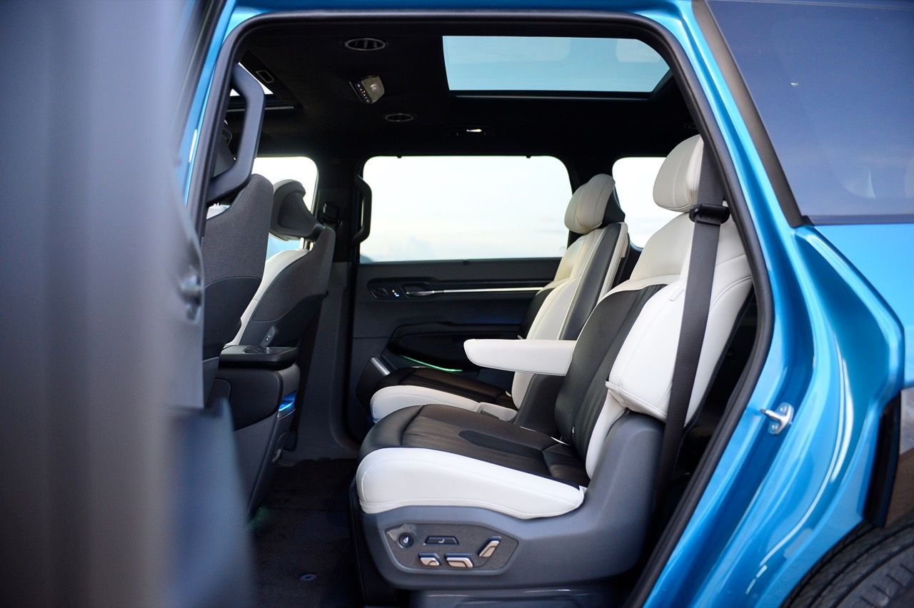 EV9 เป็นรถยนต์ไฟฟ้าที่ผ่านคิดค้น วิจัยและพัฒนามาอย่างดี เป็นผลิตภัณฑ์ที่ให้ความรู้สึกแข็งแกร่งเพียงพอสำหรับชีวิตประจำวันของครอบครัวที่มีสมาชิกหกคน มีคุณสมบัติเพียงพอที่จะรองรับการขับทางไกล EV9 ที่หล่อเหลาและโอ่โถง มีส่วนแบ่งทางการตลาดที่ดีทั้งในยุโรปและอเมริกา เบาะหลังแถวสุดท้ายสามารถให้ผู้ใหญ่นั่งได้อย่างสบายและเพลิดเพลินไปกับช่องเสียบชาร์จอุปกรณ์กับที่วางแก้ว พื้นที่ภายในมีเพียงพอเมื่อต้องลุกออกจากเบาะแถวสาม แต่การเข้าไปนั่งกลับก็ยุ่งยากเหมือนปกติสำหรับรถ SUV สามแถว แม้ว่าประตูหลังจะดีไซน์ให้มีขนาดที่ใหญ่ โดยปกติแล้วรถตู้ MPV ประตูบานเลื่อนไฟฟ้าที่มีพื้นต่ำจะง่ายกว่าในการเข้าออกจากเบาะแถวสาม ใน EV9 GT-line ทุกอย่างทำงานด้วยมอเตอร์ไฟฟ้าจิ๋ว คุณสามารถพับและเลื่อนได้ด้วยการกดปุ่มเพียงปุ่มเดียวแต่เบาะพับไฟฟ้าทำงานช้าไม่ได้เร็วเท่ากับ Range Rover, BMW หรือ Mercedes