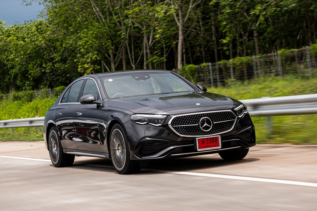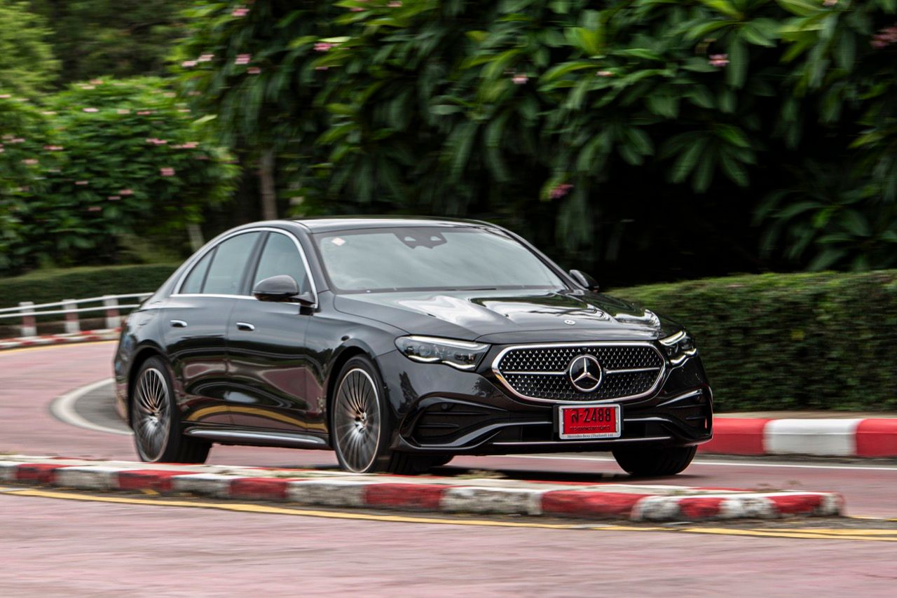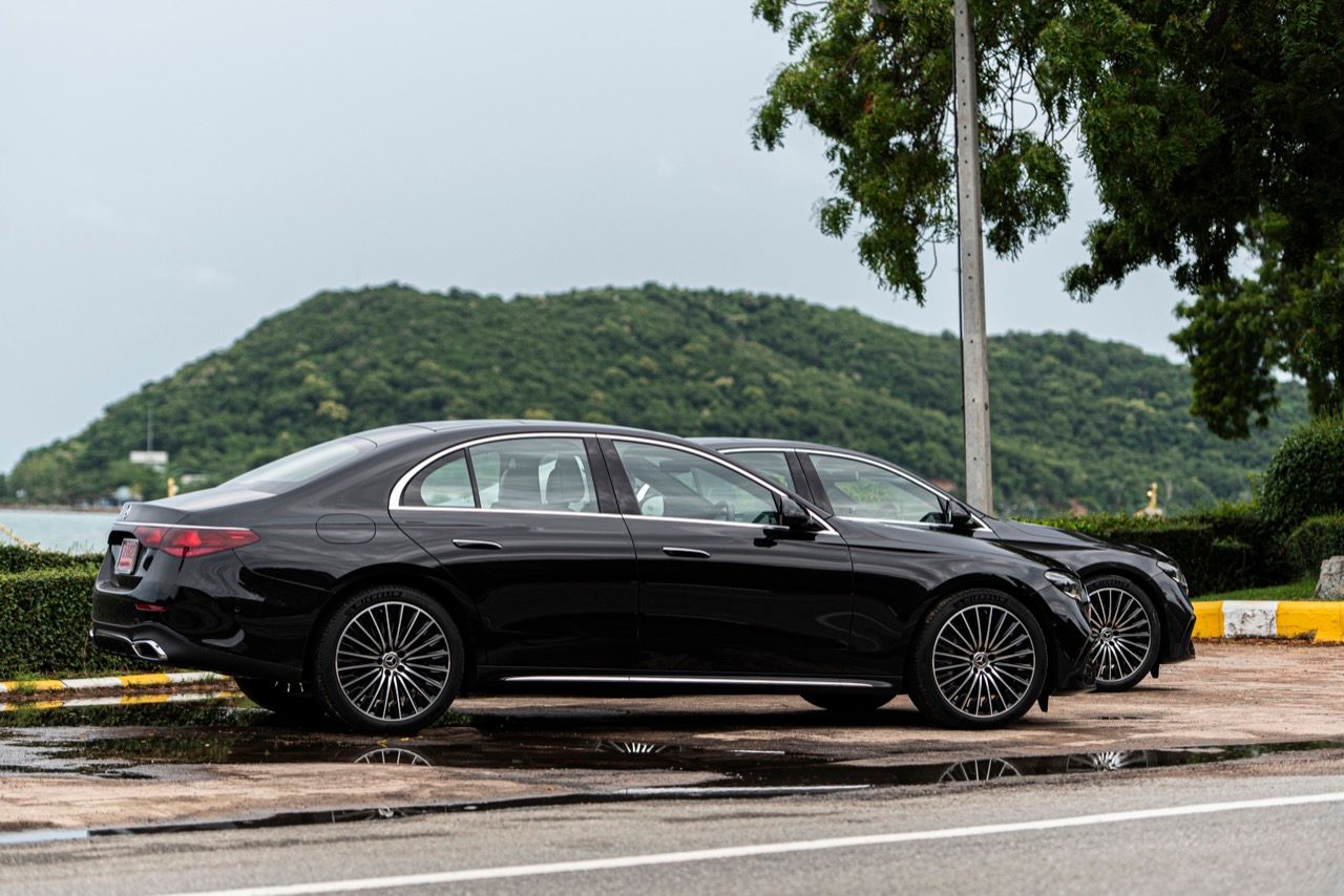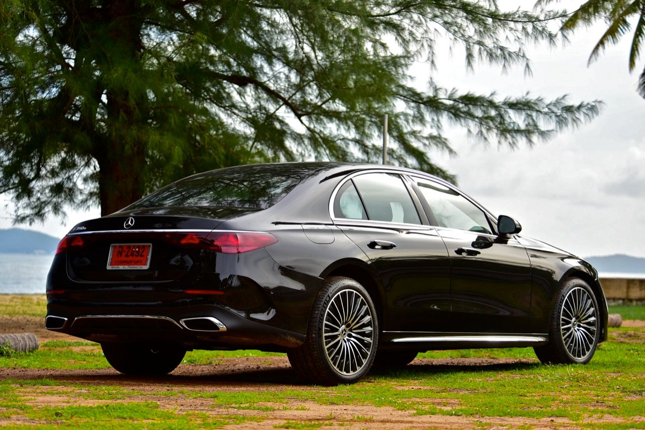 E-Class ปี 2024 รุ่น E350e AMG Dynamic ให้ความรู้สึกเหมือนเป็นรถที่สามารถทำอะไรได้เกือบทุกอย่างด้วยความเป็นเลิศในระดับที่ดี เบาะหลังเข้าถึงได้ง่าย สิ่งที่ไม่ชอบก็คือ มือจับประตูที่ต้องออกแรงหรือใช้ความพยายามมากกว่ามือจับที่เปิดประตูแบบเก่า นอกจากระบบขับเคลื่อนปลั๊กอินไฮบริดพลังงานสูงแล้ว ยังมีของใหม่อย่าง Digital Vent Control ช่องแอร์ที่ปรับการทำงานด้วยระบบไฟฟ้า ระบบเสียงรอบทิศทาง Burmester 4D Surround Sound System พร้อมลำโพง 21 ตัว เทคโนโลยี Dolby Atmos ฝั่งเบสเอาไว้ที่เบาะคู่หน้า ขับไม่ไกลต้องจอดปิดเพราะยังกับอยู่ในดิสโก้เทค ระบบปฏิบัติการและหน้าจอภาพหน้าจอแบบใหม่ MBUX 3rd generation พร้อม infotainment Magic Triangle ไฟตกแต่งภายใน 64 เฉดสีที่มีโหมดเปิดแสดงสลับสีจนทำให้ตาลายเล่นได้ ความเงียบของห้องโดยสารอยู่ในเกณฑ์ดี เป็น E-Class เครื่องเบนซินราคา 4,080,000 บาท รถให้สัมผัสแตกต่างไปจาก BMW 530e M Sport Pro ถ้าชอบมาดนุ่มฟีลลิ่งออกแนวรถผู้ใหญ่ป๋าใจดีมาดเนี้ยบก็มาที่ตราดาวได้เลย