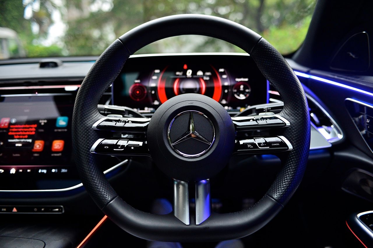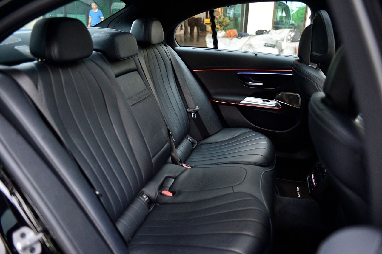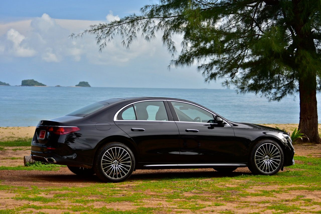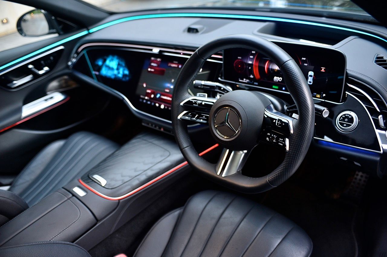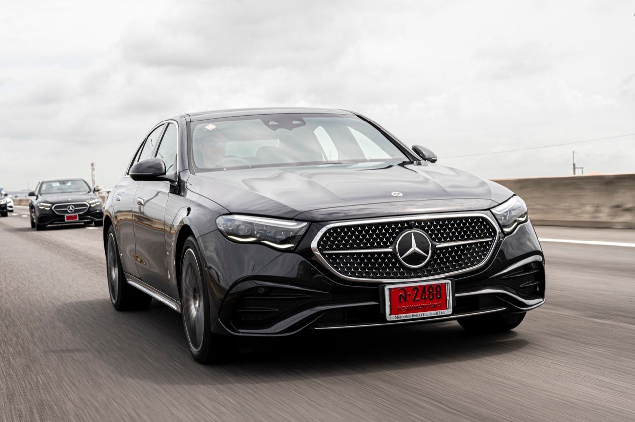 E-Class ปี 2024 รุ่น E350e AMG Dynamic ให้ความรู้สึกเหมือนเป็นรถที่สามารถทำอะไรได้เกือบทุกอย่างด้วยความเป็นเลิศในระดับที่ดี เบาะหลังเข้าถึงได้ง่าย สิ่งที่ไม่ชอบก็คือ มือจับประตูที่ต้องออกแรงหรือใช้ความพยายามมากกว่ามือจับที่เปิดประตูแบบเก่า นอกจากระบบขับเคลื่อนปลั๊กอินไฮบริดพลังงานสูงแล้ว ยังมีของใหม่อย่าง Digital Vent Control ช่องแอร์ที่ปรับการทำงานด้วยระบบไฟฟ้า ระบบเสียงรอบทิศทาง Burmester 4D Surround Sound System พร้อมลำโพง 21 ตัว เทคโนโลยี Dolby Atmos ฝั่งเบสเอาไว้ที่เบาะคู่หน้า ขับไม่ไกลต้องจอดปิดเพราะยังกับอยู่ในดิสโก้เทค ระบบปฏิบัติการและหน้าจอภาพหน้าจอแบบใหม่ MBUX 3rd generation พร้อม infotainment Magic Triangle ไฟตกแต่งภายใน 64 เฉดสีที่มีโหมดเปิดแสดงสลับสีจนทำให้ตาลายเล่นได้ ความเงียบของห้องโดยสารอยู่ในเกณฑ์ดี เป็น E-Class เครื่องเบนซินราคา 4,080,000 บาท รถให้สัมผัสแตกต่างไปจาก BMW 530e M Sport Pro ถ้าชอบมาดนุ่มฟีลลิ่งออกแนวรถผู้ใหญ่ป๋าใจดีมาดเนี้ยบก็มาที่ตราดาวได้เลย