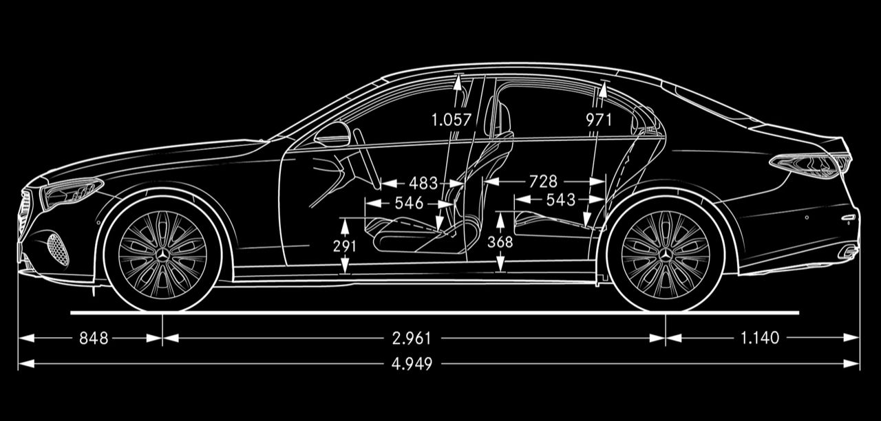 E-Class ประจำปี 2024 แม้จะเปิดตัวในคาบเวลาที่เศรษฐกิจของประเทศไทยกำลังซบเซา แต่ลูกค้าเก่าของแบรนด์ตราดาวหลายคนก็เฝ้ารอ E ใหม่ อย่างใจจดจ่อ รหัสตัวถัง W214 ซึ่งมาพร้อมกับความสดใหม่แบบเปลี่ยนหมดทั้งคัน หน้าใหม่ท้ายสวย ขนาดของตัวถังมีความยาว 4,949 มิลลิเมตร กว้าง 1,880 มิลลิเมตร สูง 1,471 มิลลิเมตร รูปทรงภายนอกด้านข้างคล้ายกับ S-Class แต่มีขนาดที่เล็กกว่า ไฟหน้าใหม่พร้อมระบบไฟอัตโนมัติที่ชาญฉลาดและทำงานได้เร็วกว่าเดิม Mercedes-Benz New E350e W214 ติดตั้งระบบส่องสว่างแบบใหม่ ด้วยไฟ LED ประสิทธิภาพสูง