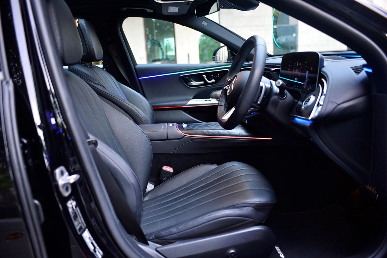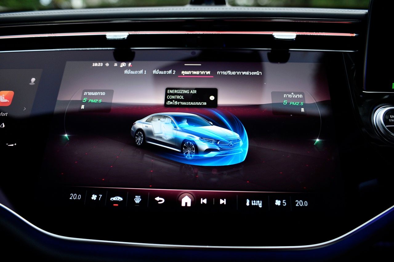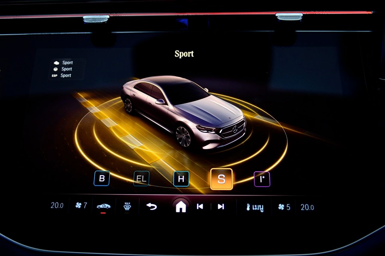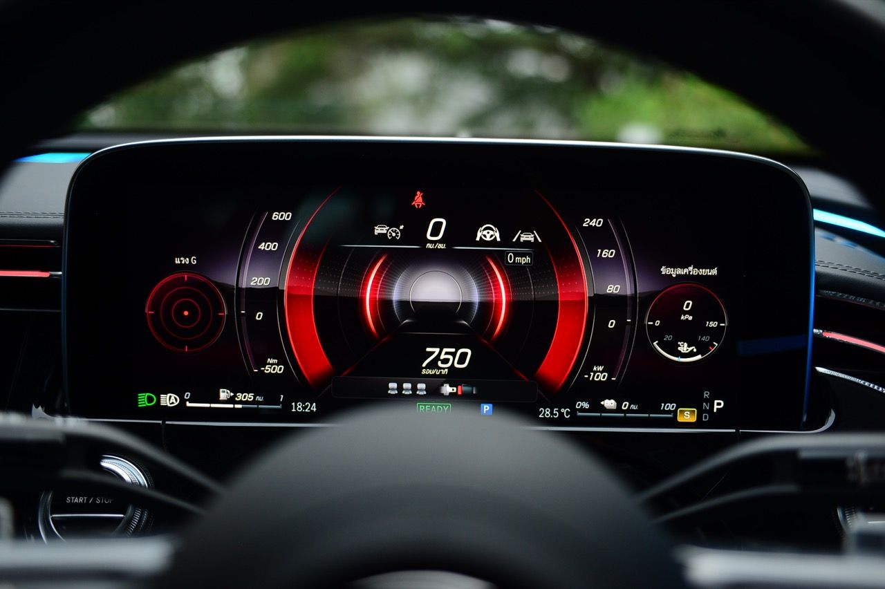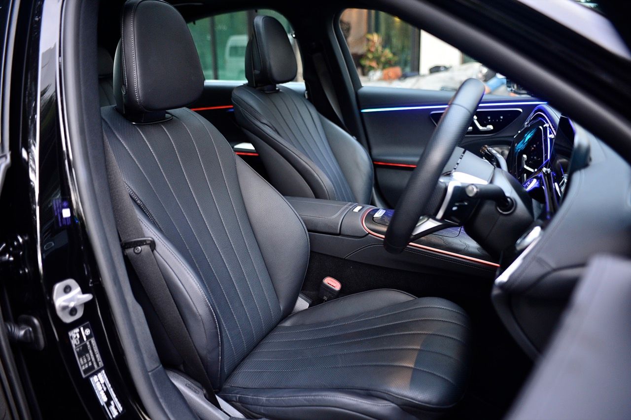 ภายในมีจอภาพ MBUX Superscreen พร้อมพื้นผิวกระจกขนาดใหญ่ แดชบอร์ดดิจิทัล ขยายไปถึงจอแสดงผลส่วนกลาง จอภาพมาตรวัดของคนขับความละเอียดสูง ระบบอิเล็กทรอนิกส์ ขับเคลื่อนด้วยซอฟต์แวร์ล่าสุดที่ตอบสนองเร็ว และทำงานผ่านฮาร์ดแวร์น้อยลง ฟังก์ชันการคำนวณของโดเมนที่แยกจากกันในโปรเซสเซอร์ตัวเดียว หน้าจอและระบบอินโฟเทนเมนต์ MBUX คอมพิวเตอร์ออนบอร์ดส่วนกลางแบบใหม่ที่ทรงพลังมาก ปรับปรุงประสิทธิภาพและความเร็วของการสตรีมข้อมูล เชื่อมต่อ iPhone และ Apple® Watch ด้วย Digital Vehicle Key ทำให้ E-Class สามารถสตาร์ตและล็อกได้ง่าย กุญแจรถยนต์แบบดิจิทัลเป็นส่วนหนึ่งของ KEYLESS-GO Convenience