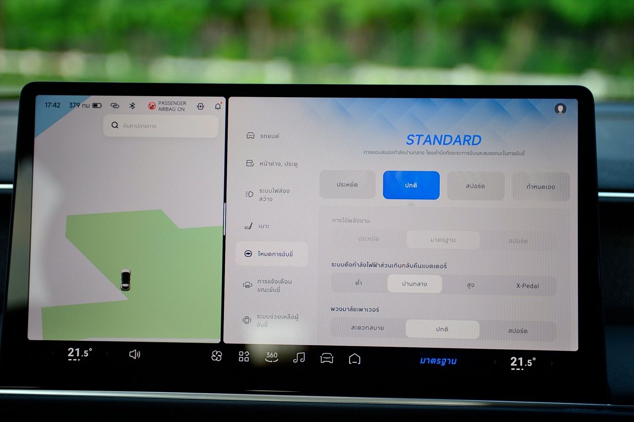 เทคโนโลยีแบตเตอรี่ 800 โวลต์ SiC Architecture ในส่วนระบบขับเคลื่อนและแบตเตอรี่ กินกระแสไฟต่ำ ความร้อนสะสมน้อย แบตเตอรี่ติดตั้งเป็นส่วนเดียวกับตัวถัง เรียกว่า Cell Integrated Body (CIB) ส่งผลให้รถมีจุดศูนย์ถ่วงต่ำ มีการอัปเดตทั้งเฟิร์มแวร์และซอฟต์แวร์อัตโนมัติ ผ่านระบบออนไลน์ (OTA-Over The Air) ห้องโดยสาร ‘Intelligent cockpit’ จอแสดงข้อมูลการขับขนาด 10.2 นิ้ว ด้านหน้าผู้ขับ ทัชสกรีนอเนกประสงค์ขนาด 14.96 นิ้ว ติดตั้งกลางแดชบอร์ด ระบบสั่งการด้วยเสียง Full scenario voice assistant 2.0 รองรับ Real time continuous voice command recognition, การใช้งานแบบมัลติโซน และการใช้งานแบบออฟไลน์ หัวชาร์จ Type 2 / CCS Combo ชาร์จไฟกระแสตรง DC สูงสุด 280 kW (รุ่น Long Range) ชาร์จไฟกระแสตรง DC แบบด่วน จาก 10-80% ใช้เวลาประมาณ 20 นาที ชาร์จ DC 10 นาที วิ่ง ไกล 300 กิโลเมตร ระบบจ่ายกระแสไฟฟ้า 220V ให้อุปกรณ์ภายนอก 3,300 วัตต์ ระบบความปลอดภัย ADAS (Advanced Driver Assistance Systems) ประกอบด้วย Sensors 29 ตำแหน่ง Computing Power 508 TOPS (Trillion Operations Per S econd) หลังคากระจก Panoramic Glass Roof กัน UV 99.9% กันความร้อน 86% ที่ชาร์จโทรศัพท์แบบไร้สาย Wireless Fast Charge กำลังชาร์จสูงสุด 50W และมี ช่องเป่าลม เพื่อระบายความร้อนให้โทรศัพท์