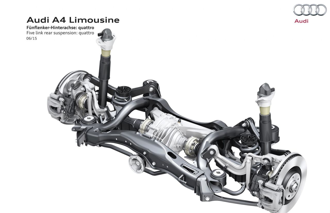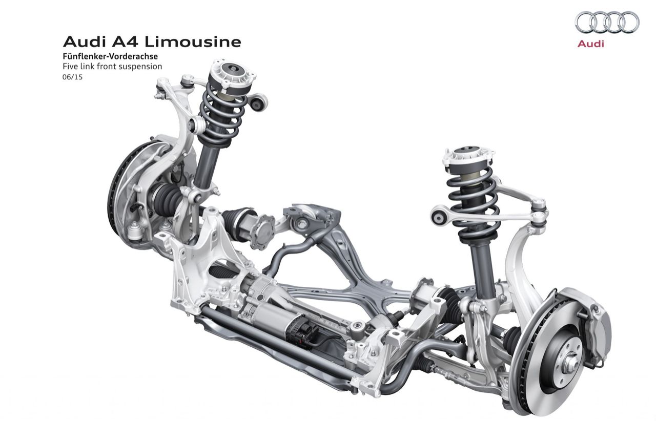 เทอร์โบแบบ Twin Scroll อัดอากาศด้วยแรงดัน 0.8 บาร์ น้อยกว่าเทอร์โบของ A4 Avant รุ่น 45 TFSI ที่มีแรงดัน 1.4 บาร์อยู่พอสมควร กลไกของระบบวาล์วแปรผัน Audi valvelift system คอยปรับเปลี่ยนองศาของการเปิดวาล์วได้มากถึง 60 องศา ส่วนวาล์วไอเสียแปรผันได้ 30 องศา ระบบเพลาราวลิ้นของเครื่องยนต์ตัวนี้จะคอยปรับเปลี่ยนองศาของวาล์วไอเสียให้มีความสัมพันธ์กับรอบเครื่องยนต์เป็นหลัก โดยปรับระยะของการเปิดวาล์วเพื่อระบายไอเสียออกจากห้องเผาไหม้ได้อย่างรวดเร็ว ระบบส่งกำลังหรือเกียร์ของ A4 40TFSI เป็นเกียร์ออโต้คลัตช์คู่แบบ 7 สปีด S-Tronic ช่วงล่างหน้าแบบดับเบิ้ลวิชโบนปีกนกคู่ ด้านหลังมัลติลิงก์