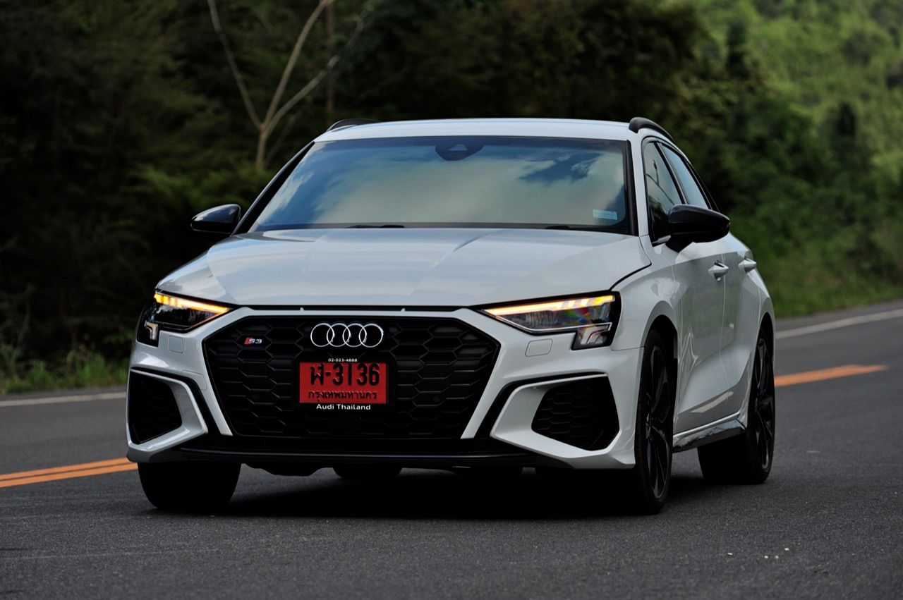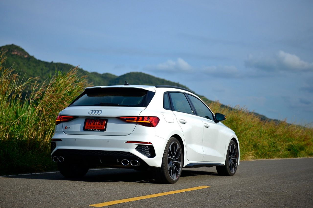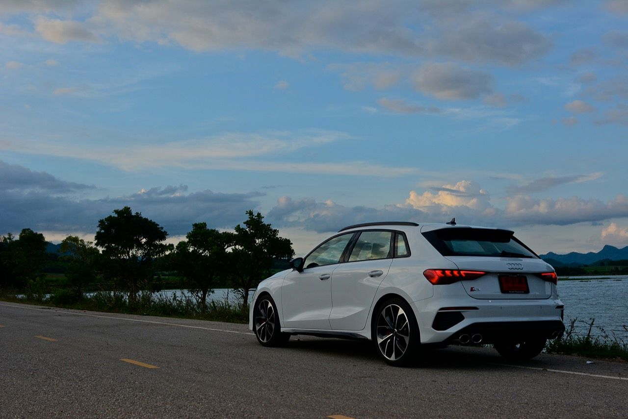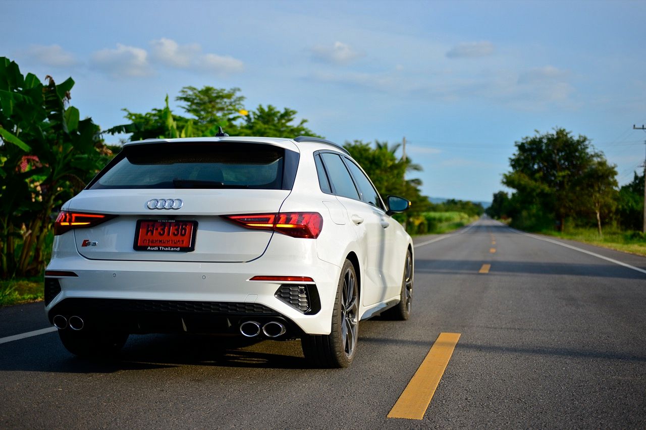 Sportback สร้างขึ้นจากงานประกอบเน้นความประณีต แค่ปิดประตูก็รู้ว่าเสียงความแน่นของบานนั้นต่างไปจาก BMW หรือ Mercedes-Benz แต่ก็ใกล้เคียงหรือคล้ายกับ Lexus แพลตฟอร์มของ S3 ห่อหุ้มห้องโดยสารที่ออกแบบใหม่ทั้งหมด มาพร้อมระบบดิจิทัล MMI การเชื่อมต่อแบบใหม่ และระบบช่วยเหลือผู้ขับล้ำอนาคต คุณสามารถสั่งซื้อ S3 รุ่นใหม่ในไทยได้แล้วตั้งแต่ช่วงกลางปีที่ผ่านมา ด้วยค่าตัวที่ 2,990,000 บาท แม้จะลดราคาลงมาถึง 660,000 บาท ทำให้มันยังคงเป็นรถเล็กที่มีราคาไม่ถูกและแพงกว่า BMW 330e M Sport LCI 2024 ถึง 200,000 บาท เนื่องจากคู่ต่อสู้ไม่มีรถ Hatchback เข้ามาขายในไทย ทำให้ Audi A3 S3 และ RS3 กลายเป็นรถยนต์ที่มีความเป็นเอกเทศ เป็นรถเล็กจากยุโรปที่สวยงามและทรงพลัง น่าเสียดายที่คนไทยส่วนใหญ่ยังคงยึดติดกับรถยนต์ Luxury ตัวถังซีดานสี่ประตู แต่ส่วนท้ายที่สวยงามของ Audi S3 Sportback Quattro กับฟีลลิ่งดุดันเวลากระแทกคันเร่ง ก็อาจทำให้ลูกค้าของ BMW และ Mercedes-Benz หรือแม้แต่ Lexus เปลี่ยนใจได้หากได้ลองขับแวบเดียว!
