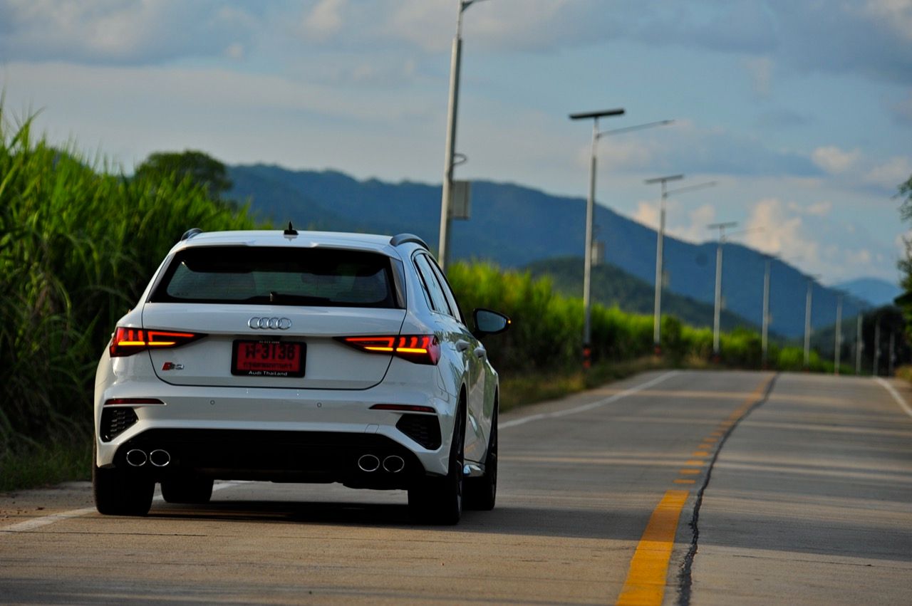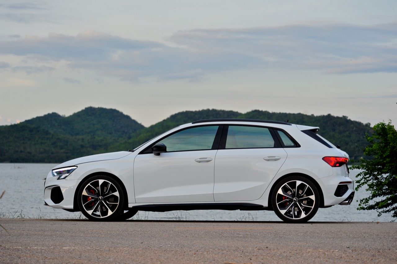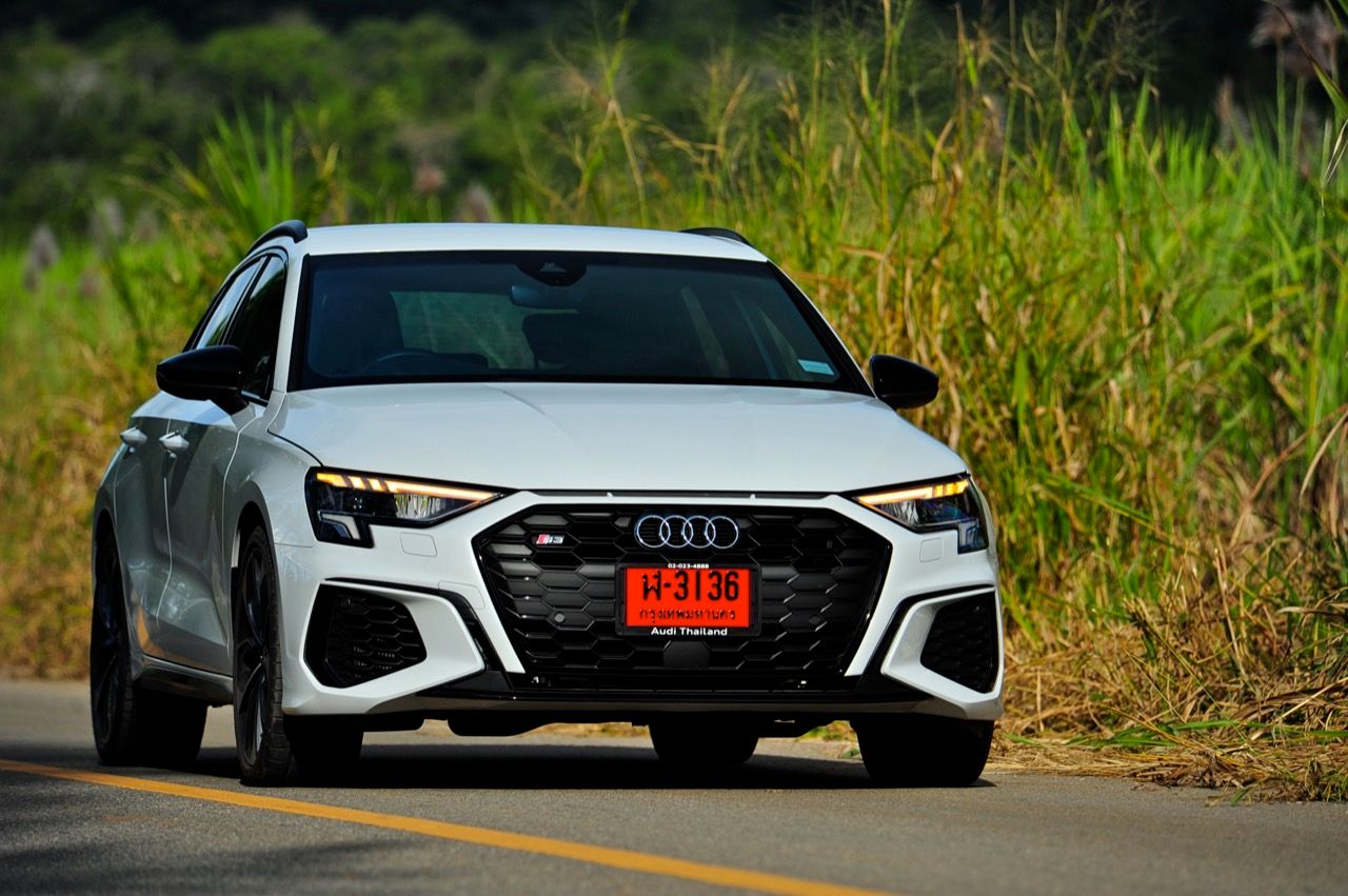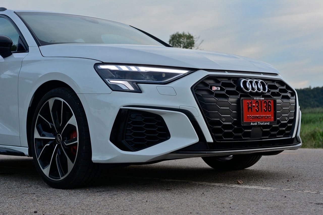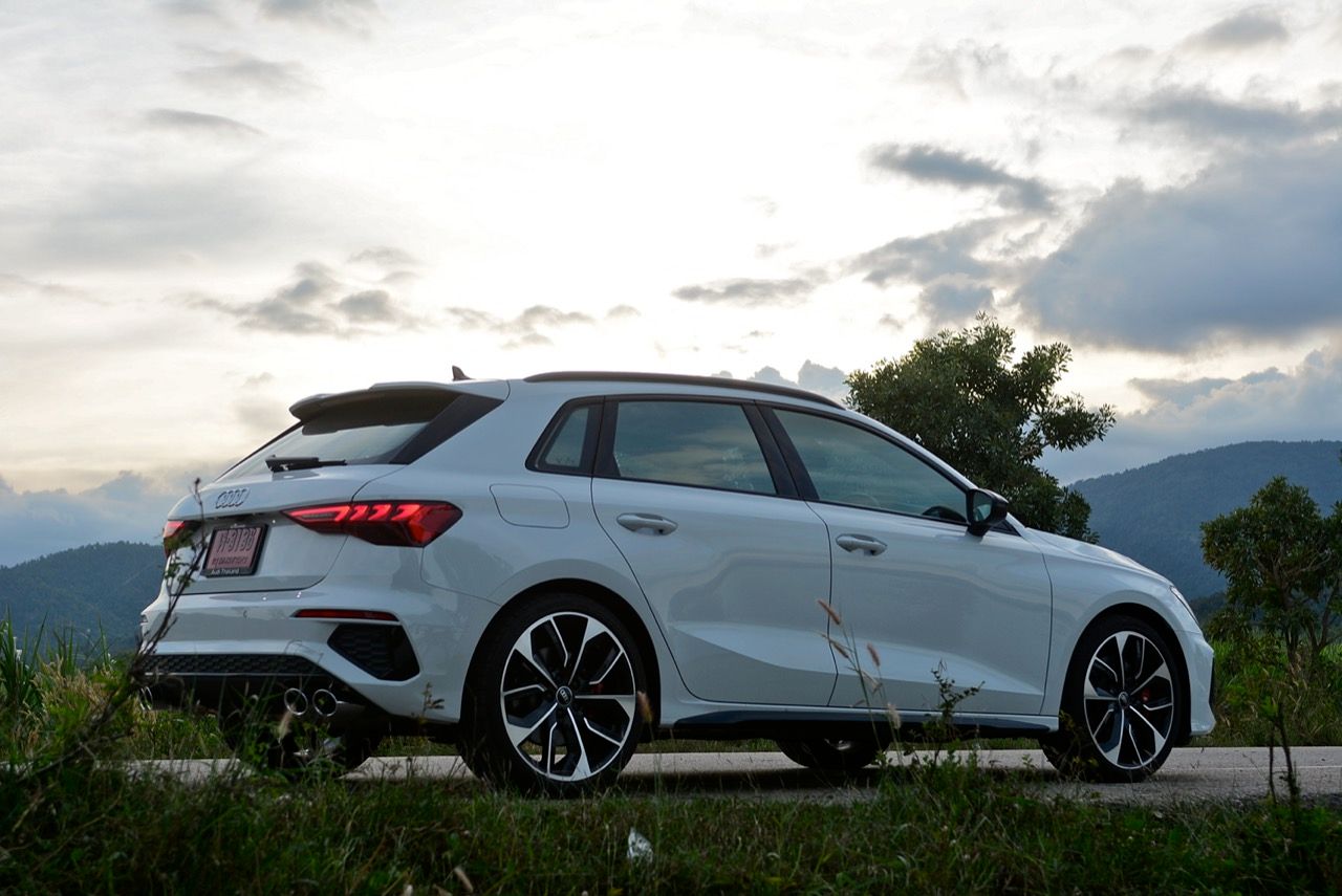 Sportback สร้างขึ้นจากงานประกอบเน้นความประณีต แค่ปิดประตูก็รู้ว่าเสียงความแน่นของบานนั้นต่างไปจาก BMW หรือ Mercedes-Benz แต่ก็ใกล้เคียงหรือคล้ายกับ Lexus แพลตฟอร์มของ S3 ห่อหุ้มห้องโดยสารที่ออกแบบใหม่ทั้งหมด มาพร้อมระบบดิจิทัล MMI การเชื่อมต่อแบบใหม่ และระบบช่วยเหลือผู้ขับล้ำอนาคต คุณสามารถสั่งซื้อ S3 รุ่นใหม่ในไทยได้แล้วตั้งแต่ช่วงกลางปีที่ผ่านมา ด้วยค่าตัวที่ 2,990,000 บาท แม้จะลดราคาลงมาถึง 660,000 บาท ทำให้มันยังคงเป็นรถเล็กที่มีราคาไม่ถูกและแพงกว่า BMW 330e M Sport LCI 2024 ถึง 200,000 บาท เนื่องจากคู่ต่อสู้ไม่มีรถ Hatchback เข้ามาขายในไทย ทำให้ Audi A3 S3 และ RS3 กลายเป็นรถยนต์ที่มีความเป็นเอกเทศ เป็นรถเล็กจากยุโรปที่สวยงามและทรงพลัง น่าเสียดายที่คนไทยส่วนใหญ่ยังคงยึดติดกับรถยนต์ Luxury ตัวถังซีดานสี่ประตู แต่ส่วนท้ายที่สวยงามของ Audi S3 Sportback Quattro กับฟีลลิ่งดุดันเวลากระแทกคันเร่ง ก็อาจทำให้ลูกค้าของ BMW และ Mercedes-Benz หรือแม้แต่ Lexus เปลี่ยนใจได้หากได้ลองขับแวบเดียว!