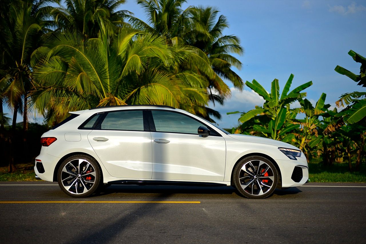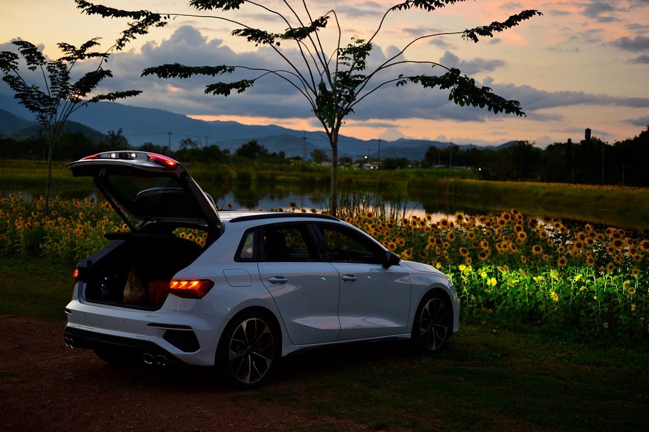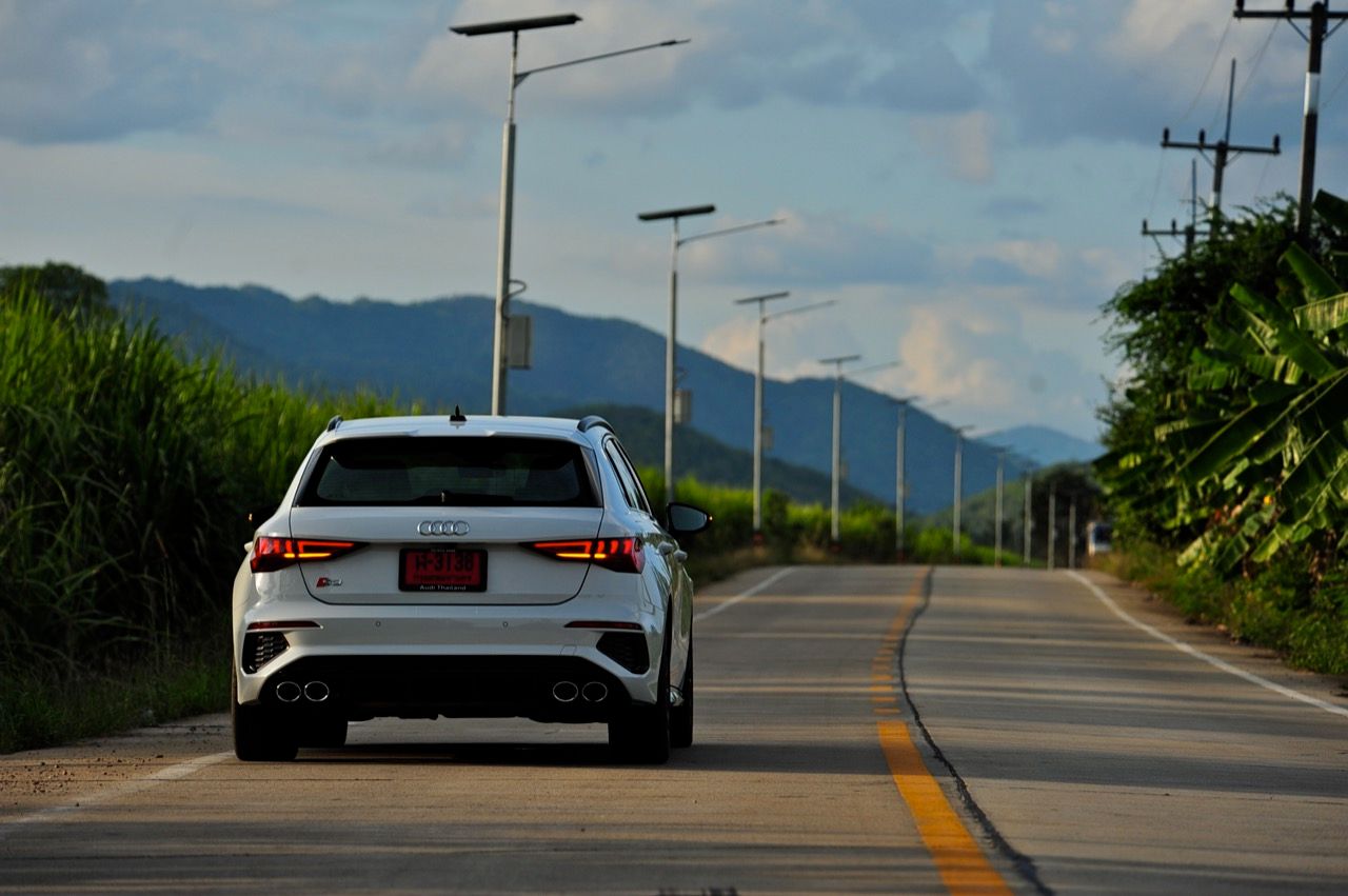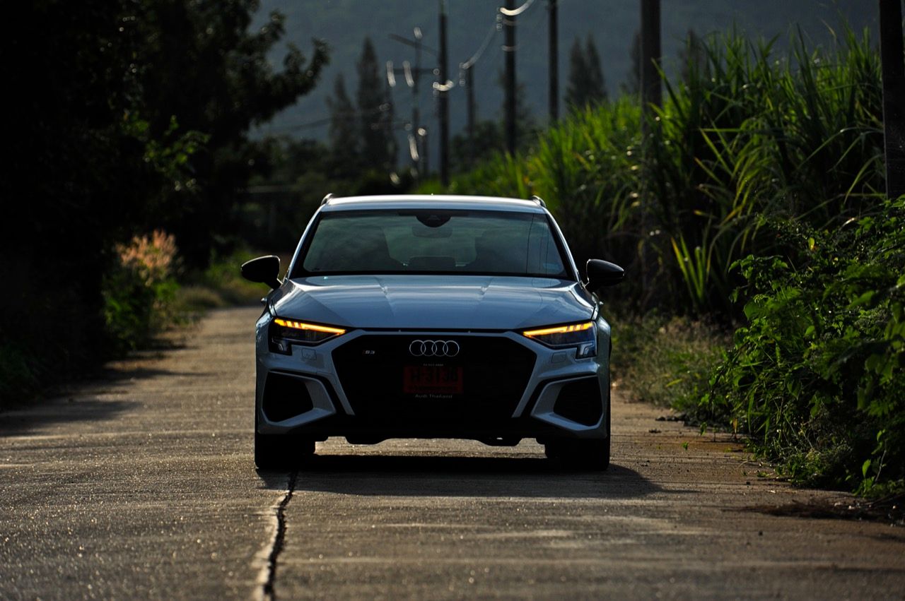 Sportback สร้างขึ้นจากงานประกอบเน้นความประณีต แค่ปิดประตูก็รู้ว่าเสียงความแน่นของบานนั้นต่างไปจาก BMW หรือ Mercedes-Benz แต่ก็ใกล้เคียงหรือคล้ายกับ Lexus แพลตฟอร์มของ S3 ห่อหุ้มห้องโดยสารที่ออกแบบใหม่ทั้งหมด มาพร้อมระบบดิจิทัล MMI การเชื่อมต่อแบบใหม่ และระบบช่วยเหลือผู้ขับล้ำอนาคต คุณสามารถสั่งซื้อ S3 รุ่นใหม่ในไทยได้แล้วตั้งแต่ช่วงกลางปีที่ผ่านมา ด้วยค่าตัวที่ 2,990,000 บาท แม้จะลดราคาลงมาถึง 660,000 บาท ทำให้มันยังคงเป็นรถเล็กที่มีราคาไม่ถูกและแพงกว่า BMW 330e M Sport LCI 2024 ถึง 200,000 บาท เนื่องจากคู่ต่อสู้ไม่มีรถ Hatchback เข้ามาขายในไทย ทำให้ Audi A3 S3 และ RS3 กลายเป็นรถยนต์ที่มีความเป็นเอกเทศ เป็นรถเล็กจากยุโรปที่สวยงามและทรงพลัง น่าเสียดายที่คนไทยส่วนใหญ่ยังคงยึดติดกับรถยนต์ Luxury ตัวถังซีดานสี่ประตู แต่ส่วนท้ายที่สวยงามของ Audi S3 Sportback Quattro กับฟีลลิ่งดุดันเวลากระแทกคันเร่ง ก็อาจทำให้ลูกค้าของ BMW และ Mercedes-Benz หรือแม้แต่ Lexus เปลี่ยนใจได้หากได้ลองขับแวบเดียว!