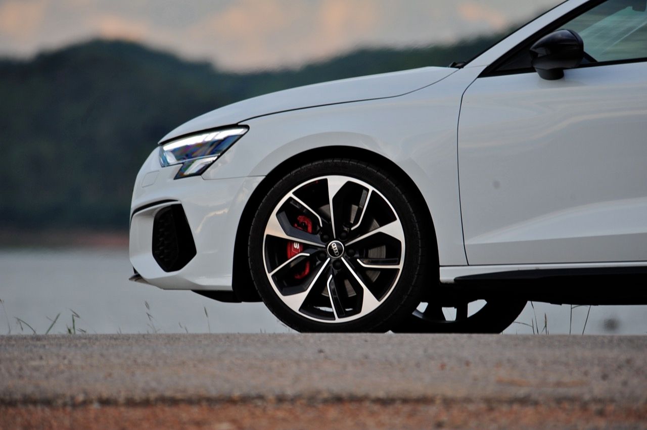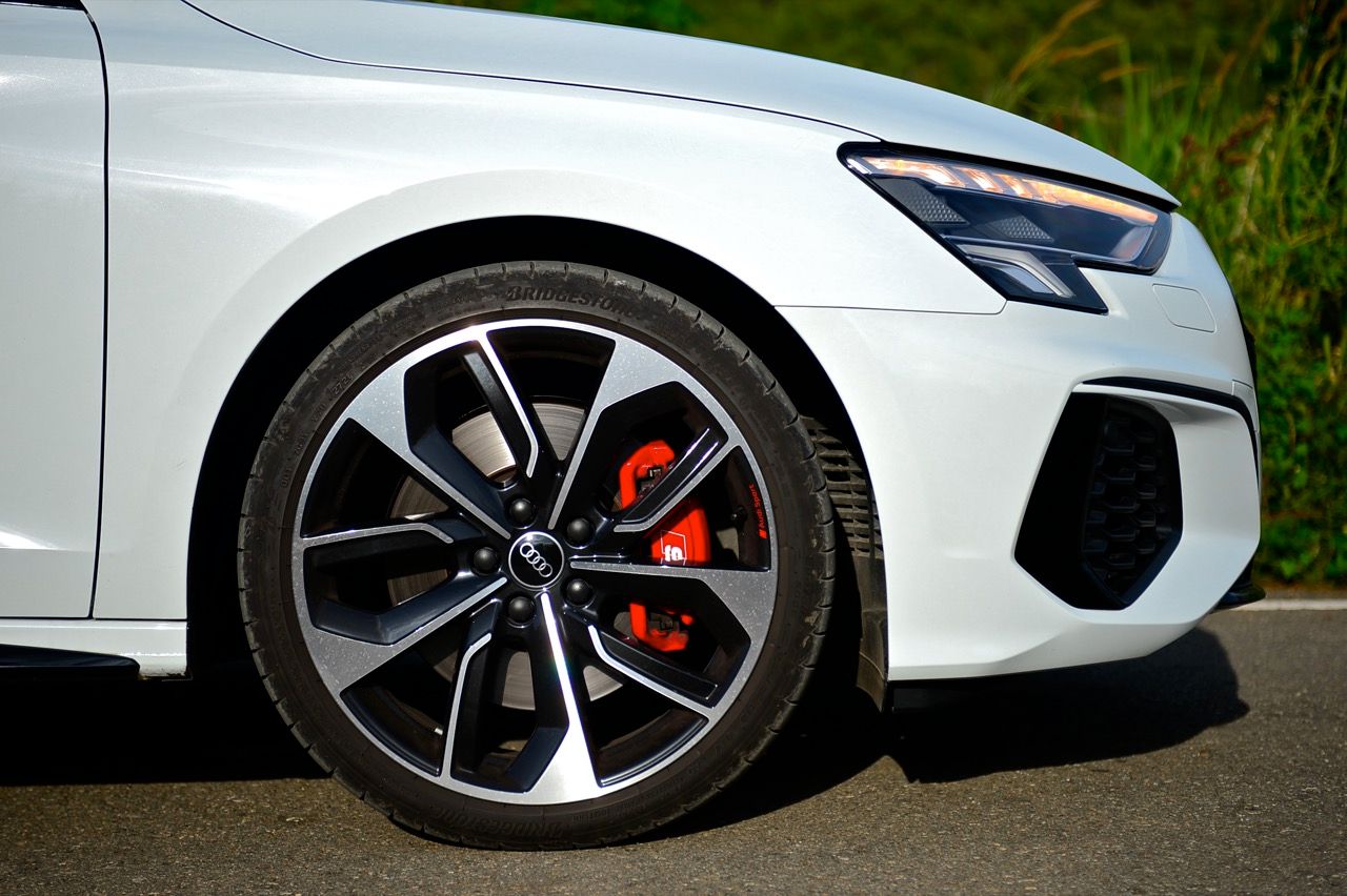 S3 นำเสนอระบบรองรับและชุดล้อ+ยางสปอร์ตที่แข็งแกร่งมากกว่าเดิม ยาง bridgestone potenza S005 ขนาด 235/35 R19 91Y สำหรับลูกค้าที่ชอบประสิทธิภาพด้านการยึดเกาะและการส่งกำลังไปยังล้อทั้งสี่ การเปลี่ยนจากรถบ้านไปที่ Audi S Model สมรรถนะที่สูงขึ้น คือความต้องการของนักขับที่ติดใจในรถขับเคลื่อนสี่ล้อบ้าพลัง Audi A3 นั้น เปิดตัวครั้งแรกเมื่อ 20 ปีที่ผ่านมา สำหรับรถรุ่นใหม่ล่าสุด รหัส S มีระบบส่งกำลังที่พร้อมสำหรับการทำความเร็ว แผนก Audi Sport แสดงออกถึงความใส่ใจในรายละเอียดที่แม่นยำของงานประกอบ การใช้งานในชีวิตประจำวัน และเทคโนโลยีที่ผสานรวมอย่างลื่นไหล ซึ่งมีความโดดเด่นในกลุ่มผลิตภัณฑ์รถยนต์แฮตช์แบคไซส์กะทัดรัด รวมเข้ากับประสิทธิภาพและความสามารถในการจัดการ กลายเป็น S3 โมเดลใหม่ที่น่าหลงใหลในด้านความบันเทิงหลังพวงมาลัย