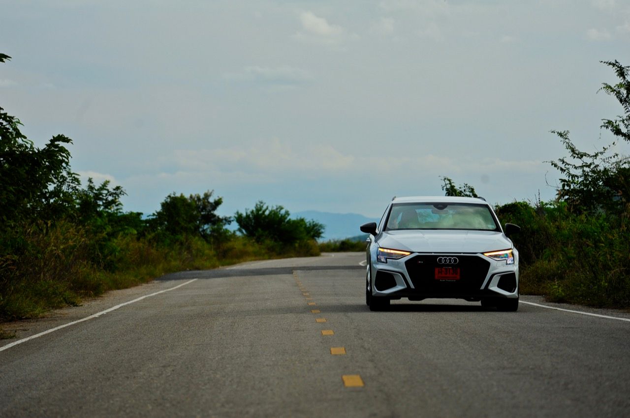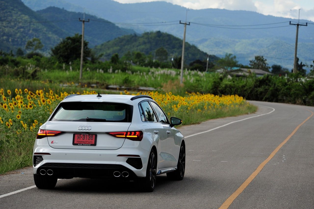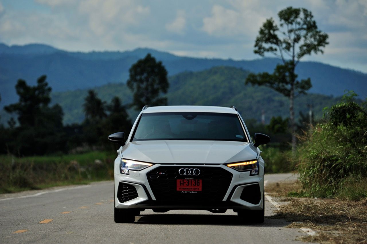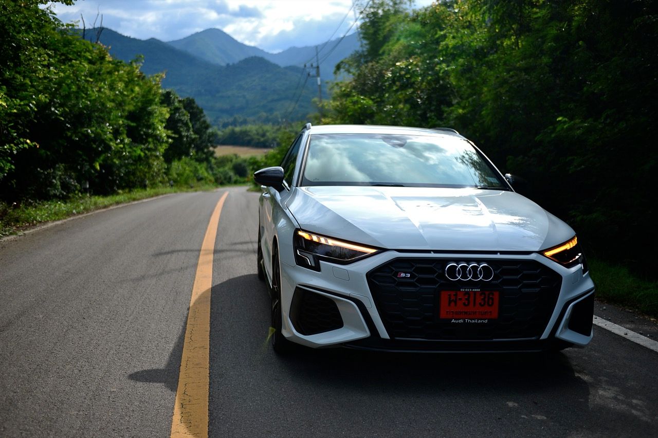 Quattro ของ Audi ระหว่างการทดลองขับ จากการควบคุมที่ทำให้รถมีน้ำหนักเบา ทำให้ระบบส่งกำลังไม่ต้องรับภารกรรมมากเกินไป กลายเป็นความกระปรี้กระเปร่า กระตือรือร้น และส่งเสียงดังในโหมด Dynamic ในย่านความเร็วสูง การบังคับเลี้ยวที่หนักหน่วงใน S3 นั้นให้การตอบสนองที่ดี ออกตัวเร็วๆ จากจุดหยุดนิ่งหรือเร่งแซงรถช้ามีอาการเทอร์โบแล็กไม่มากนัก เมื่อขับในโหมดสูงสุดมันเร่งความเร็วคอร์เตอรไมล์ใน 12.9 วินาที ที่ 173 กิโลเมตรต่อชั่วโมง ด้วยความเร็วขนาดนั้นส่วนหน้าของรถก็ยังนิ่งสนิท อาการโคลงตัวน้อย มันพุ่งเข้าหาหัวโค้งด้วยความหิวกระหายและมาดมั่น เหนือชั้นกว่ารถขับหน้าหรือขับหลังพลังสูงทั้งปวงที่เคยเป็นคู่แข่ง เอาเข้าจริงๆ ผมชอบมันมากกว่า TT RS ที่มีพลังงานมากกว่า แต่ก็ควบคุมได้ไม่เนียนตาเท่า S3 Sportback อาจเป็นเพราะแรงม้าแรงบิดที่มีความสมดุลกับขนาดตัวถังและน้ำหนักมวลรวม รวมถึงการจูนระบบรองรับที่เฉียบคมเพื่อสอดรับกับการทำความเร็ว