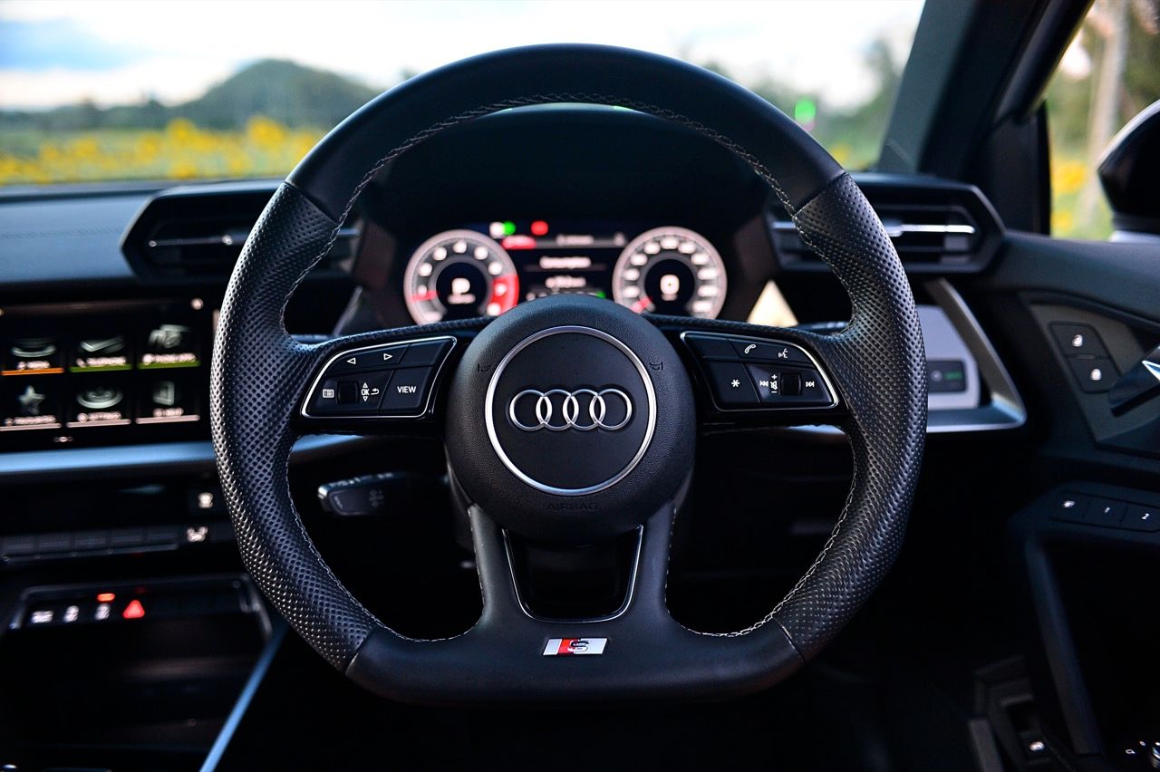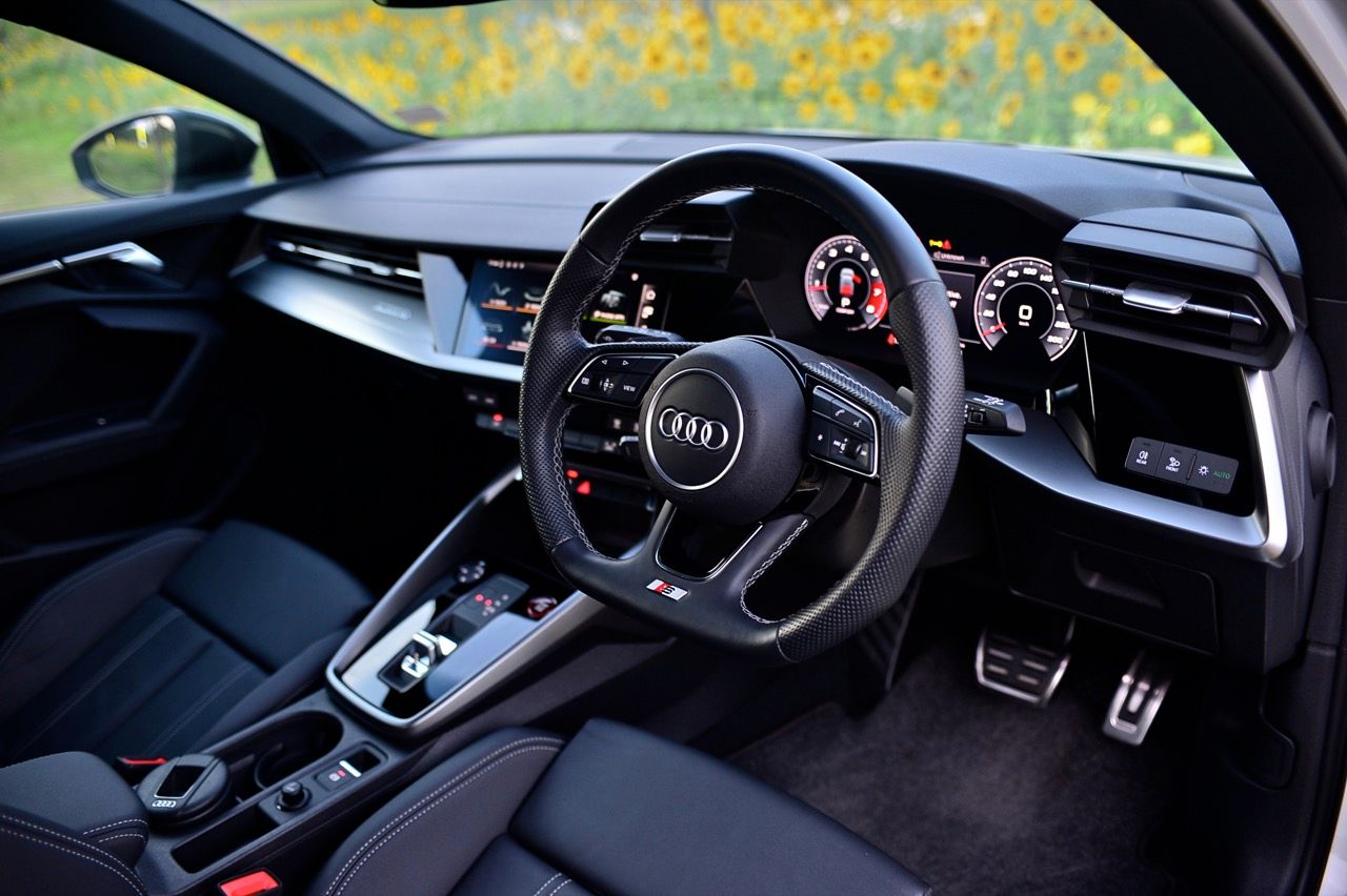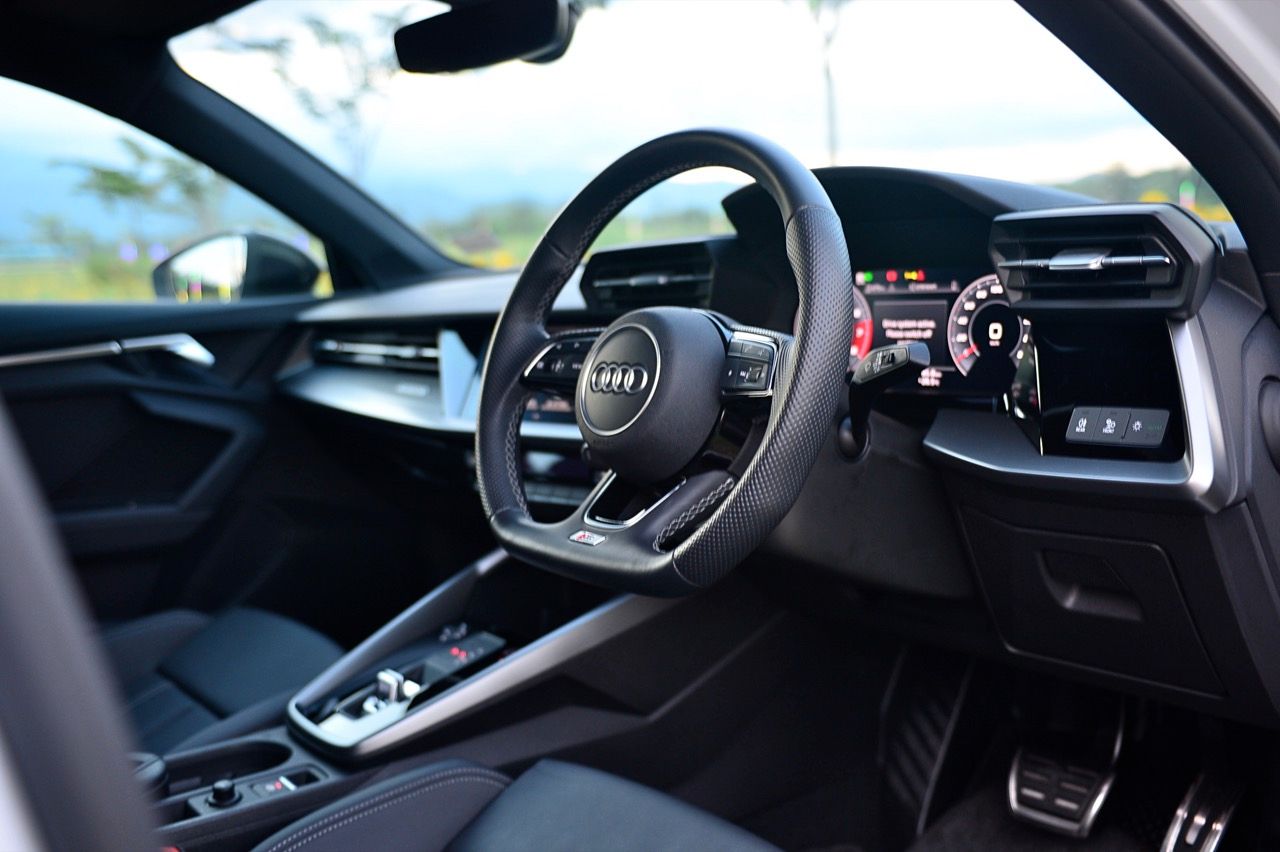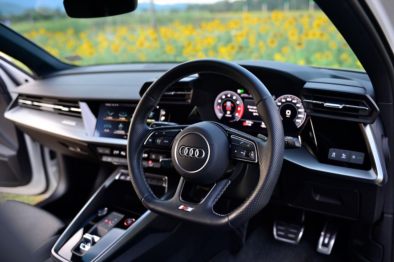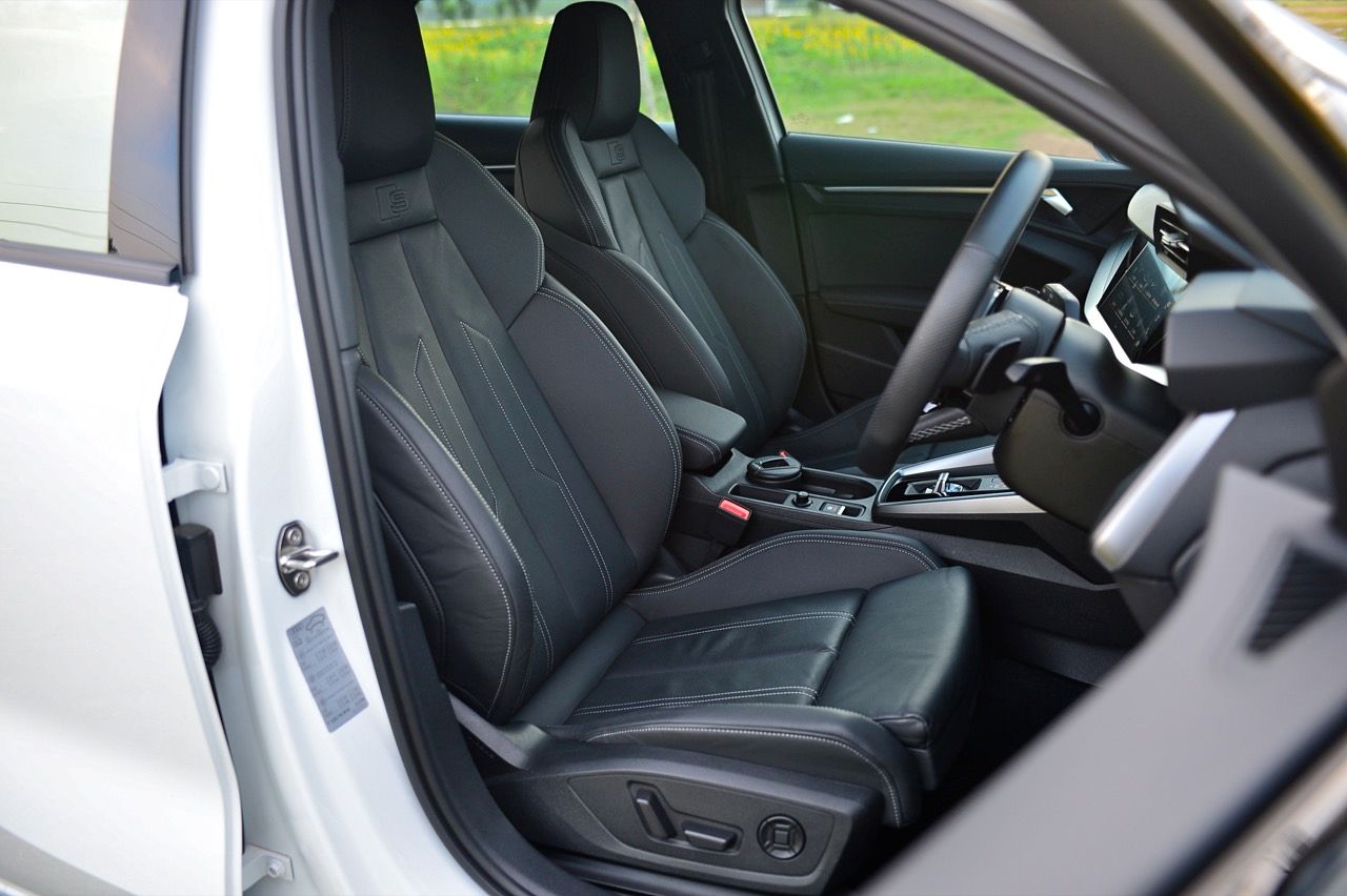 ตำแหน่งนั่งขับนั้นสุดยอด ไม่ว่าจะตัวเตี้ยหรือสูงโย่ง เบาะไฟฟ้าก็ยังปรับได้อย่างครอบคลุมทุกสรีระ หนังและวัสดุพวกฟองน้ำภายในเบาะนั่งให้การรองรับที่สมดุล สำหรับการเดินทางไกลหรือสร้างความกระชับเมื่อคุณขับแบบเร่งรีบ แผงหน้าปัดดิจิตอลความละเอียดสูงซึ่งใหญ่กว่ารุ่น A3 ปกติเล็กน้อย สามารถแสดงผล Google Maps, ข้อมูลเกี่ยวกับสื่อ หรือแสดงผลมาตรวัดความเร็วและมาตรวัดรอบแบบคลาสสิกที่อ่านค่าได้ง่าย หน้าจอสัมผัสกลางมีการทำงานที่ลื่นไหล ให้การตอบสนองรวดเร็วแบบเดียวกับ A6 และ Q7 ที่ใหญ่และแพงกว่า การเชื่อมต่อ Apple CarPlay แบบไร้สายอย่างรวดเร็ว การคลิกแบบสัมผัสหลังจากกดไอคอนให้ความรู้สึกดี ด้านล่างหน้าจอสัมผัสเป็นพ็อดควบคุมอุณหภูมิภายในห้องโดยสารแบบเรียบง่าย พร้อมปุ่มแต่ไม่มีแป้นหมุน