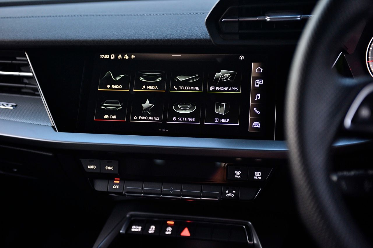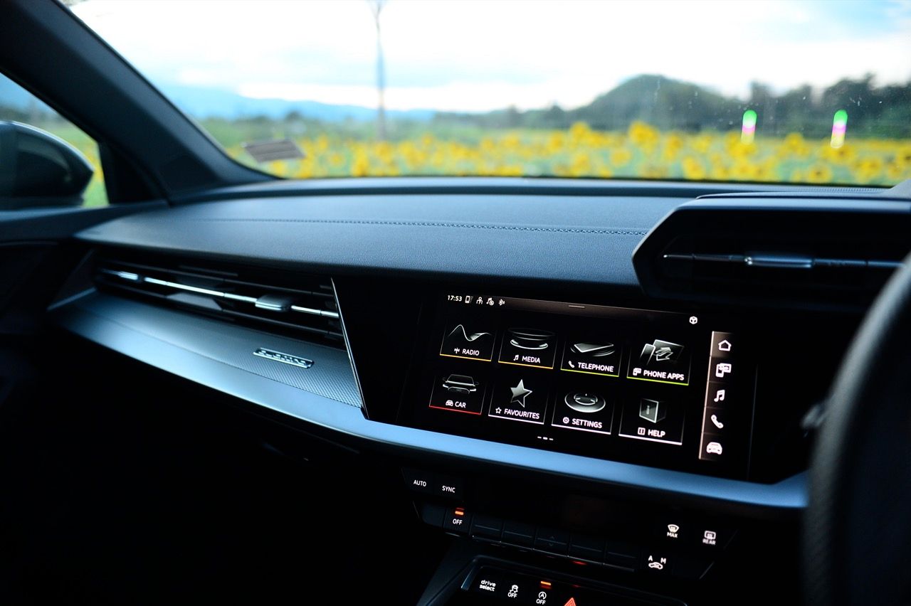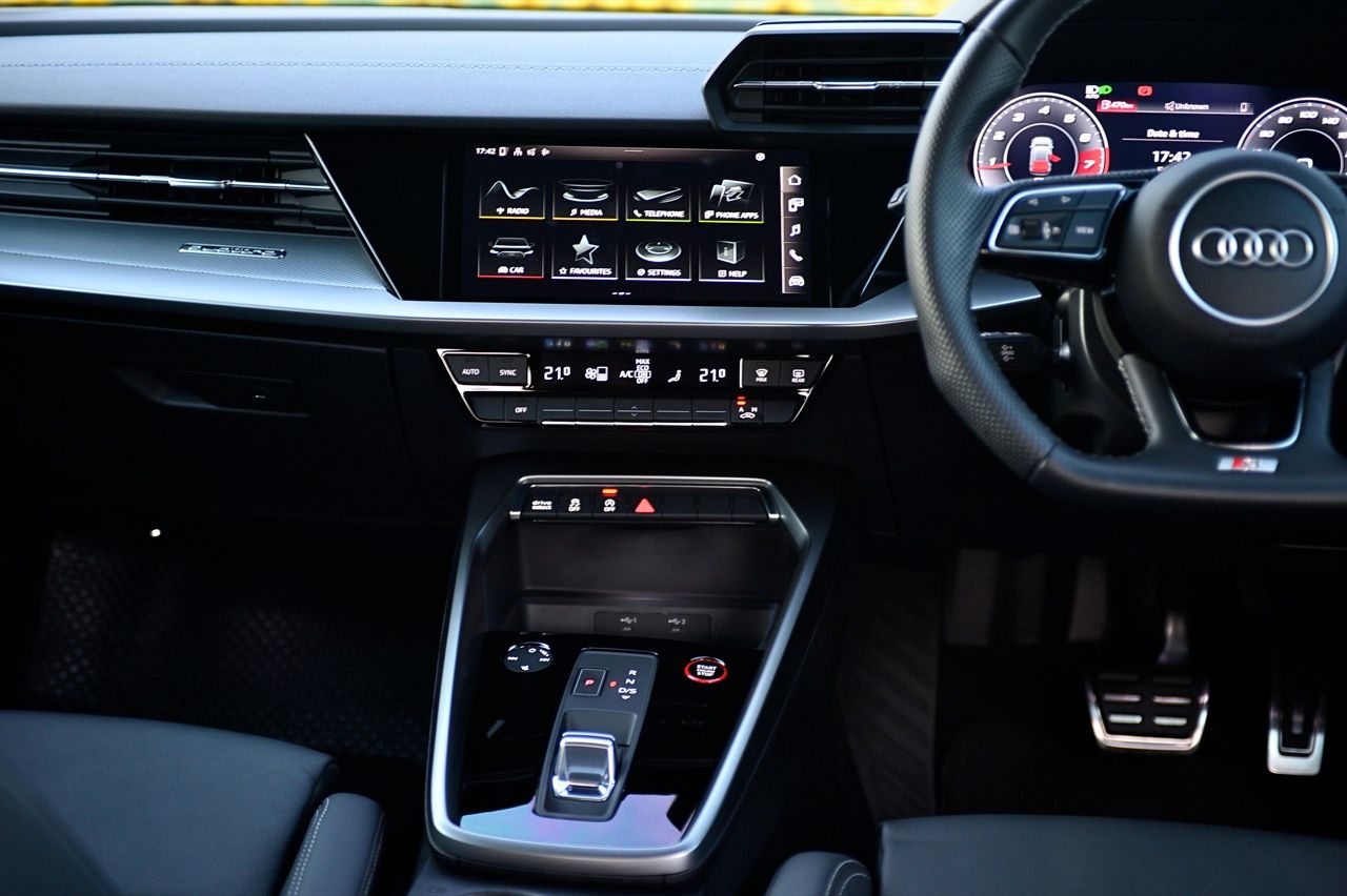 น่าเสียดายที่ MMI Navigation Plus กับชุดเครื่องเสียง B&O กำลังขับ 680 วัตต์ ถูกถอดออกไปเพื่อกดราคา สำหรับ Audi Virtual Cockpit ขนาด 10.25 นิ้ว จอภาพมาตรวัดระบบดิจิทัลเต็มรูปแบบ ให้ข้อมูลด้วยการแสดงผลอย่างคมชัดใน binnacle ของรุ่น S3 ในขณะที่รุ่น S3 Vorsprung อัปเกรดเป็น Audi Virtual Cockpit Plus ซึ่งครอบคลุมความกว้างเต็ม 12.3 นิ้วของจอแสดงผล binnacle และมีหน้าจอที่แตกต่างกันสามหน้าจอ การเชื่อมต่อระหว่าง Audi S3 ใหม่กับสมาร์ทโฟนผ่านแอป myAudi รวมถึงผ่าน Apple CarPlay, Android Auto และ Audi Phone Box ซึ่งเป็นฟีเจอร์มาตรฐานของ S3 เชื่อมโยงอุปกรณ์เข้ากับเสาอากาศของรถอย่างสะดวก มีช่องชาร์จมือถือด้วย USB Type C มาให้อีกสี่ตำแหน่ง