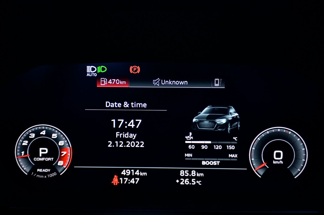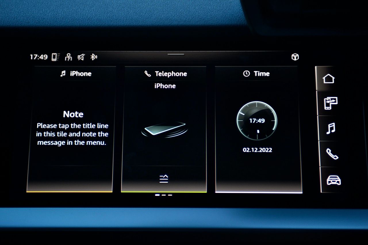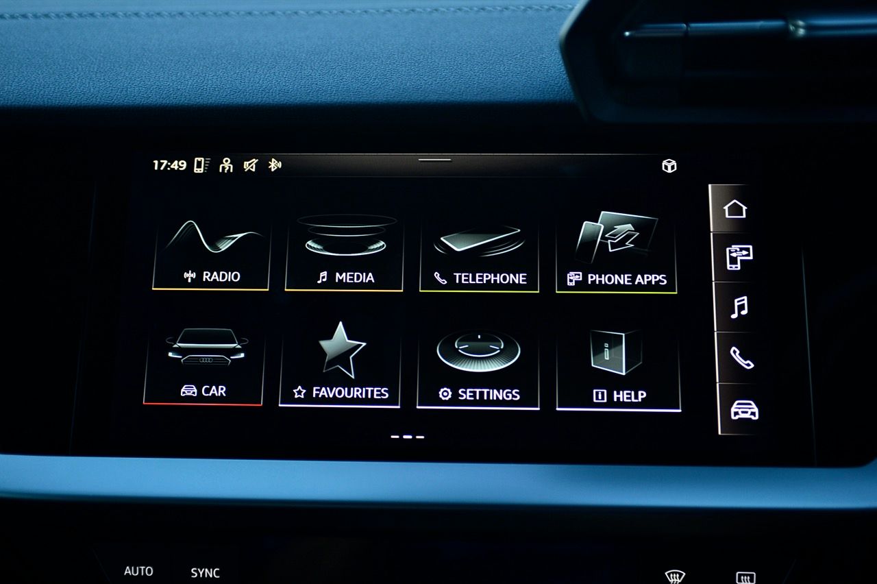 น่าเสียดายที่ MMI Navigation Plus กับชุดเครื่องเสียง B&O กำลังขับ 680 วัตต์ ถูกถอดออกไปเพื่อกดราคา สำหรับ Audi Virtual Cockpit ขนาด 10.25 นิ้ว จอภาพมาตรวัดระบบดิจิทัลเต็มรูปแบบ ให้ข้อมูลด้วยการแสดงผลอย่างคมชัดใน binnacle ของรุ่น S3 ในขณะที่รุ่น S3 Vorsprung อัปเกรดเป็น Audi Virtual Cockpit Plus ซึ่งครอบคลุมความกว้างเต็ม 12.3 นิ้วของจอแสดงผล binnacle และมีหน้าจอที่แตกต่างกันสามหน้าจอ การเชื่อมต่อระหว่าง Audi S3 ใหม่กับสมาร์ทโฟนผ่านแอป myAudi รวมถึงผ่าน Apple CarPlay, Android Auto และ Audi Phone Box ซึ่งเป็นฟีเจอร์มาตรฐานของ S3 เชื่อมโยงอุปกรณ์เข้ากับเสาอากาศของรถอย่างสะดวก มีช่องชาร์จมือถือด้วย USB Type C มาให้อีกสี่ตำแหน่ง