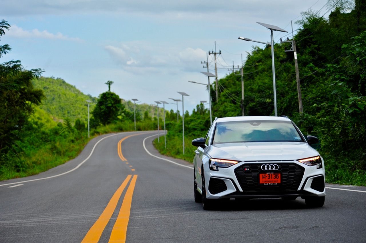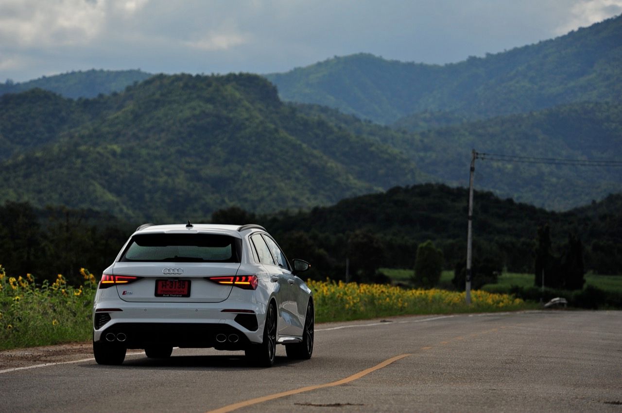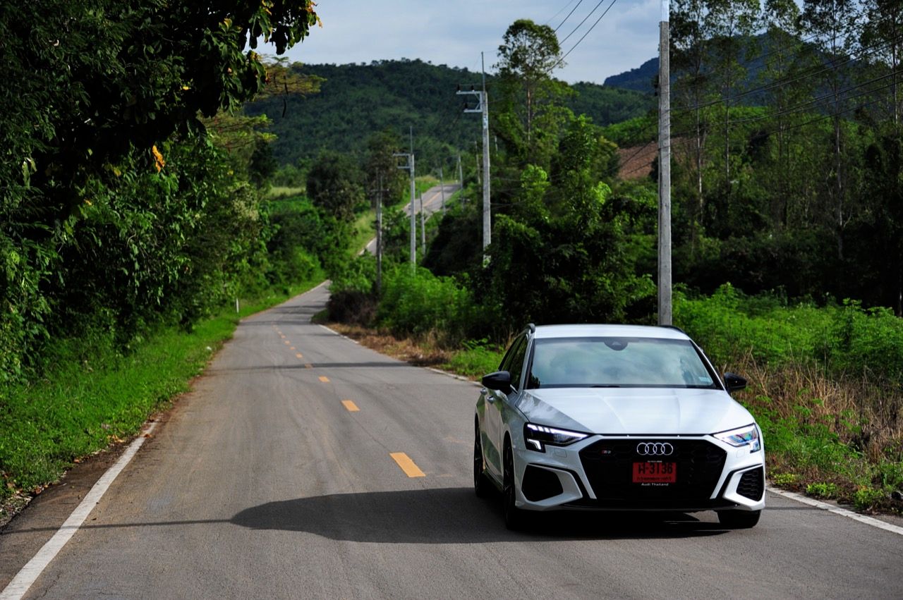เครื่องเบนซิน 2.0 ลิตร TFSI มีความแข็งแกร่งและยืดหยุ่นสูง การควบคุมในจังหวะพุ่งออกตัวมีความ ง่ายดายและสม่ำเสมอ ไม่ได้กระชากอย่างรุนแรงเหมือน RS3 แต่ดึงหนักเต็มข้อไม่ยอมรามือ ท่อระบายท้ายเมื่อวาว์ลเปิดออกจนสุดให้เสียงที่เร้าใจ การยึดเกาะสมบูรณ์แบบบนเส้นทางภูเขา การเปลี่ยนเกียร์ที่รวดเร็วให้อารมณ์เกียร์คลัตช์คู่อย่างโจ่งแจ้งทั้งแรงกระชากและเสียงการทำงานของกลไกภายในเกียร์ ที่ชอบก็คือเสียงท่อไอเสียในรอบสูง ในตำแหน่งเกียร์สาม ที่ดังกระหึ่มไปตลอดทั้งหุบเขา ทำให้การเดินทางท่ามกลางธรรมชาติเป็นความสุขสมหวังในช่วงปลายปี ยาง Potenza S005 ในรถทดสอบให้รู้สึกถึงกริ้บที่มั่นคงตลอดเส้นทาง แรงยึดเกาะของยางสปอร์ตระดับหัวแถวของแบรนด์ญี่ปุ่นให้การยึดเกาะในโค้งดีเลยทีเดียว ระบบกันสะเทือนก็ไม่ได้รู้สึกแข็งเกินไปบนถนนที่ราบเรียบ คุณสามารถใช้ความรู้สึกในการบังคับเลี้ยวผ่านล้อหน้าได้มากขึ้น ช่วงล่างด้านหน้ากับยางแก้มเตี้ยพยายามสื่อสารกับข้อมือของคนขับ โดยเฉพาะบนถนนที่ขรุขระในบางจังหวะที่ต้องเจอ การตอบสนองที่รวดเร็วของช่วงล่างทำให้ต้องลดความเร็วจนเหมือนคลานเมื่อขับผ่านถนนลูกรัง เมื่อสภาพถนนเปลี่ยน Quattro ก็เข้ามารักษาความเป็นกลางของรถ ด้วยแรงบิดที่ถ่ายไปยังล้อทั้งสี่อย่างสมดุล