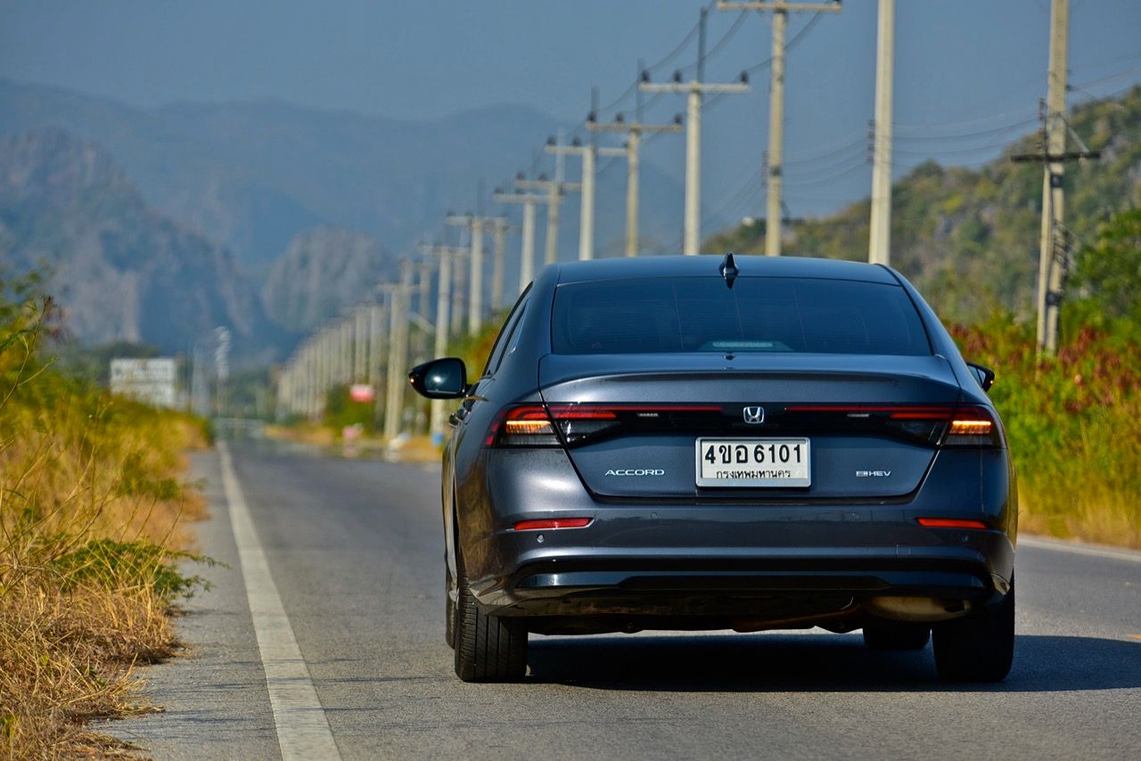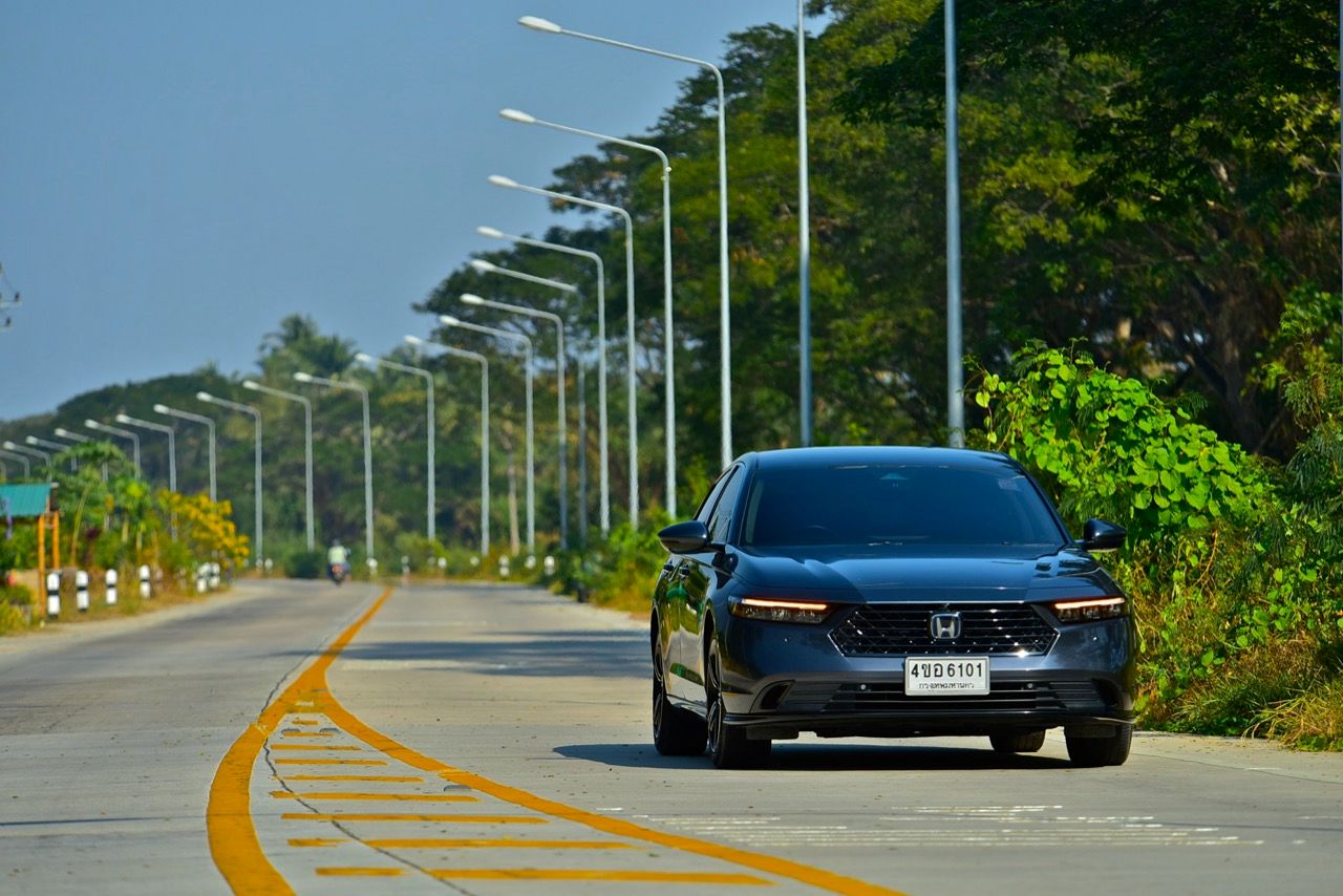 New Accord EL eHEVให้การขับขี่ที่นุ่มหนึบ จากระบบรองรับแบบปรับจูนใหม่ที่เข้ามามีส่วนช่วยควบคุมตัวถังได้อย่างดีเยี่ยม ระบบกันสะเทือนสามารถดูดซับร่องหรือรอยต่อและคอสะพาน รวมถึง ผิวถนนที่เสียหายจากรถบรรทุกได้ดีขึ้นจนรู้สึกได้ อัตราสิ้นเปลืองที่ผมพยายามทำให้รถกินน้ำมันสุดๆ ด้วยการกดคันเร่งเมื่อเจอกับทางยาวๆที่มีรถร่วมทางน้อยลง ทำอัตราสิ้นเปลือง 18 กิโลเมตรต่อลิตร ในย่านความเร็วค่อนข้างสูง และต้องลากยาวกว่า 20 กิโลเมตร กว่าจะทำให้อัตราสิ้นเปลืองเชื้อเพลิงหล่นไปที่ 17.5 กิโลเมตรต่อลิตร ผมไม่แนะนำให้ทำตาม เพราะต้องขับเร็วจนทำให้รู้สึกเครียด กว่าที่จะทำให้เครื่องไฮบริดของ Honda กินน้ำมันมากขึ้นต้องลากกันยาวข้ามอำเภอ จนแล้วจนรอด มันก็ยังประหยัดอยู่ดีถ้าเทียบกับการใช้ความเร็วต่อเนื่องที่น่าจะกินมากกว่านี้เยอะ!