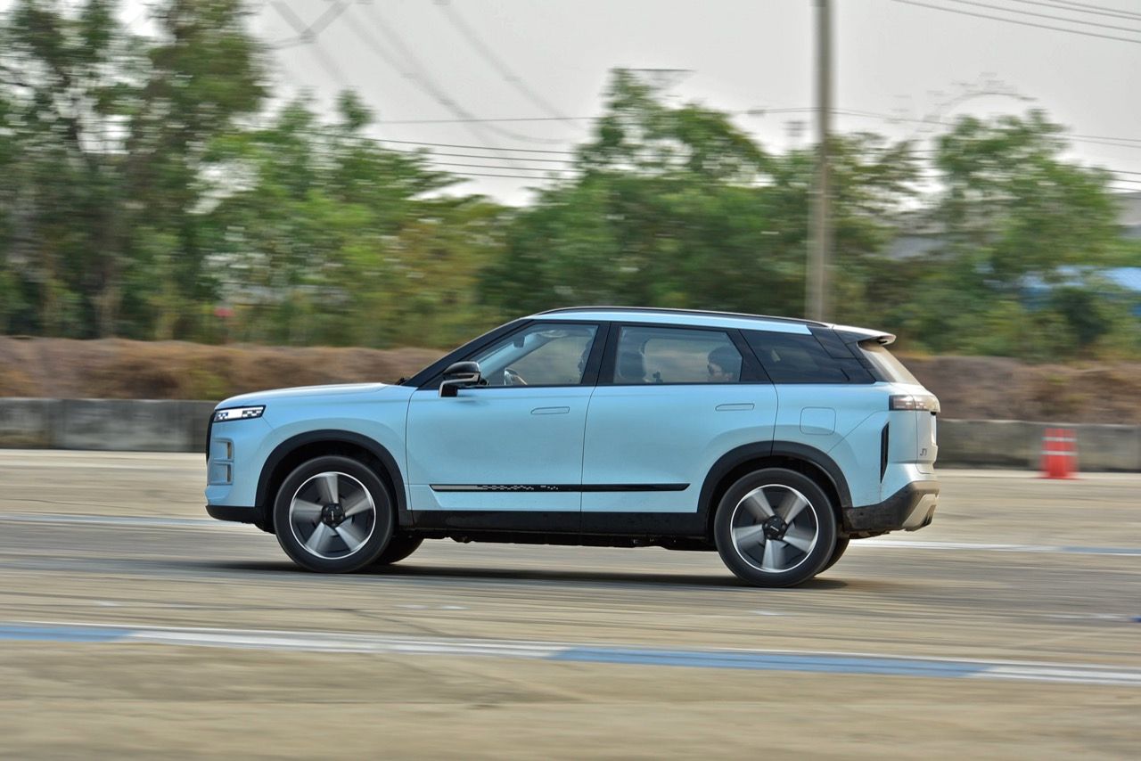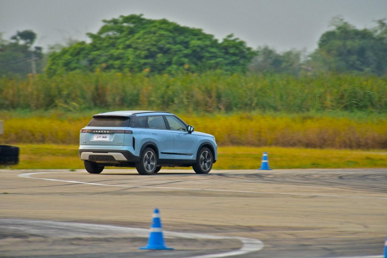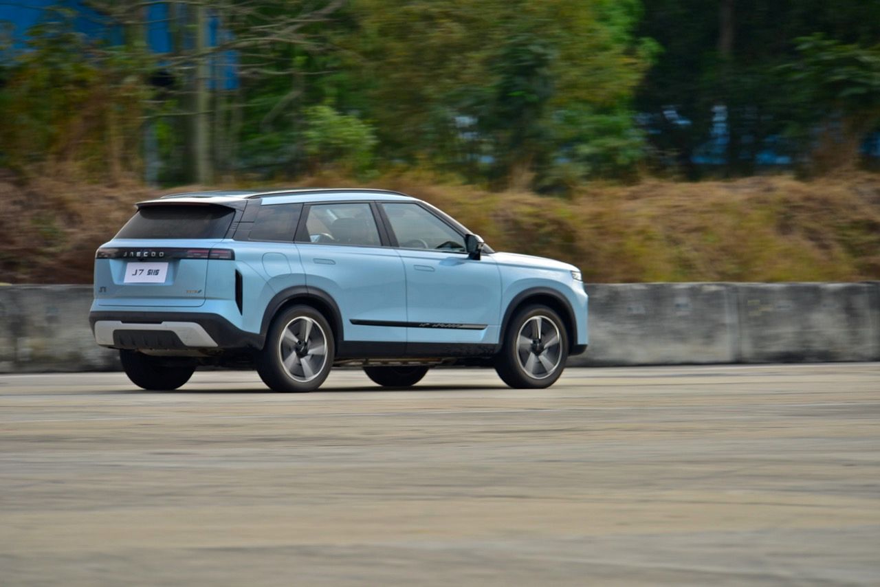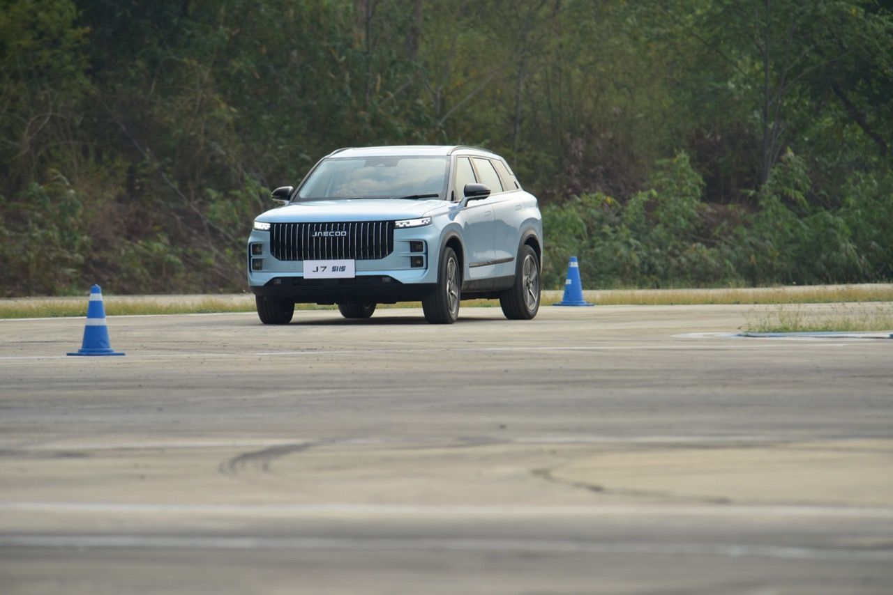 การขับทดสอบสมรรถนะของ JAECOO 7 SHS ที่แจ้งตัวเลขแรงม้าแรงบิดแบบสุดติ่ง เครื่องยนต์ไฮบริดปลั๊กอิน เป็นเครื่องเบนซินแถวเรียง ความจุ 1.5 ลิตร อัดอากาศด้วยเทอร์โบ มีกำลังสูงสุด 347 แรงม้า (HP) แรงบิดสูงสุด 525 นิวตัน-เมตร (ขับจริง ลองเร่งต่อเนื่องและจับอาการดึงของรถ ตัวเลข 0-100 คาดว่า แรงบิดที่แท้จริง น่าจะอยู่ที่ 340 นิวตันเมตรไม่เกินนั้น) สถานีทดสอบมีทั้งการเปลี่ยนเลนฉุกเฉิน เข้าโค้งมุมแคบ การทรงตัวและการถายเทน้ำหนักของรถทั้งขณะที่เข้าโค้งและเบรกเต็มกำลัง การควบคุมรถบนพื้นผิวเปียก โดยภาพรวม JAECOO 7 ที่ใช้ช่วงล่างหน้าแมคเฟอร์สันและหลังแบบมัลติลิ้งค์ถือว่าเป็นรถปลั๊กอินที่มีไดนามิกตรงไปตรงมา ช่วงล่างและพวงมาลัย ทำงานสอดคล้องกันได้ในระดับที่น่าพอใจ ค่อนข้างคล่องตัว มีอาการโคลงไม่มากและสิ่งที่ทำได้ดีก็คือ การเป็นรถสันดาปบวกมอเตอร์และแบตเตอรี่ที่ยังคงให้ฟิลลิ่งแบบเดิมๆ แตกต่างจากรถยนต์ไฟฟ้า 100 % ที่พอขับเร็วๆแล้วเหมือนหุ่นยนต์มากกว่ารถยนต์