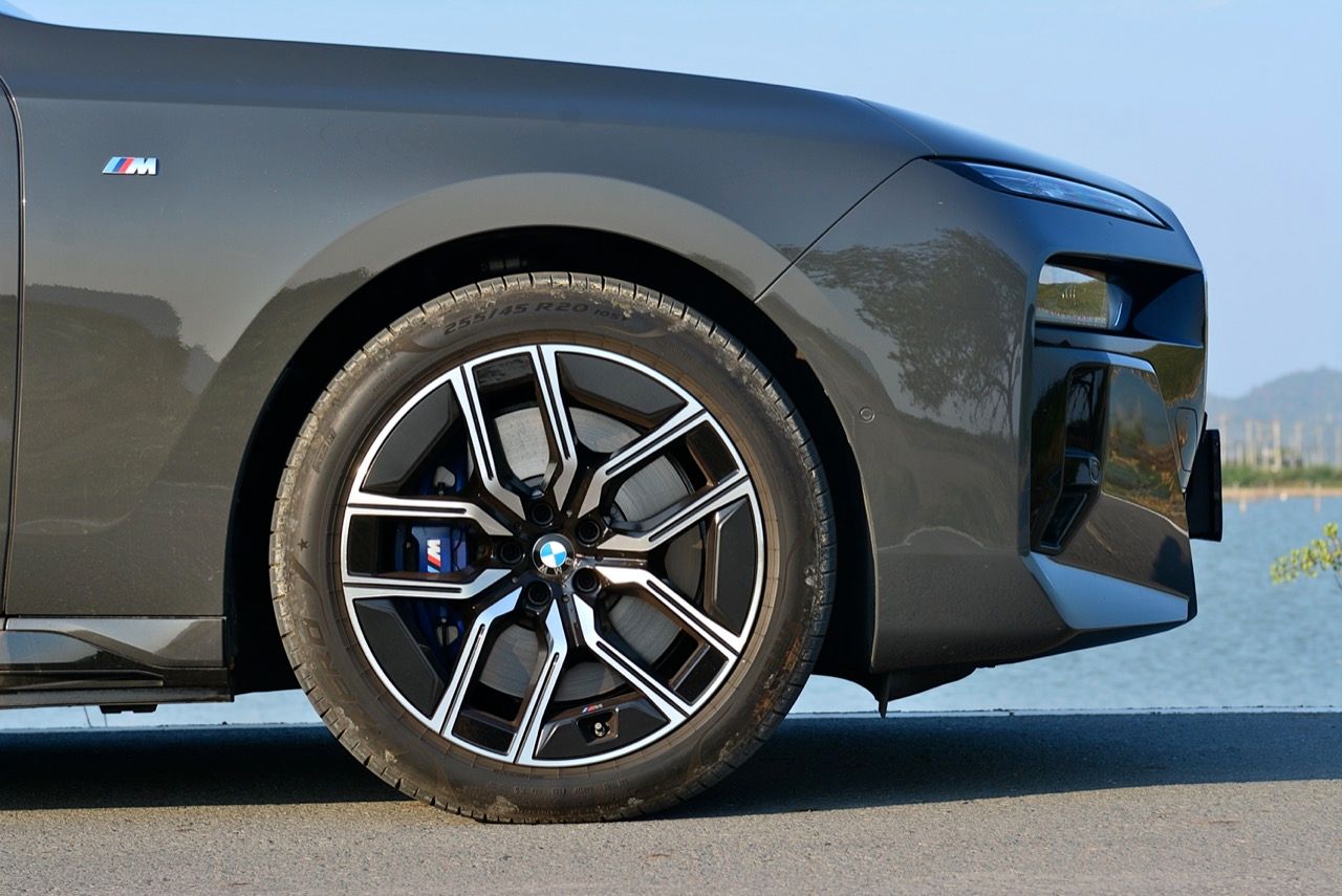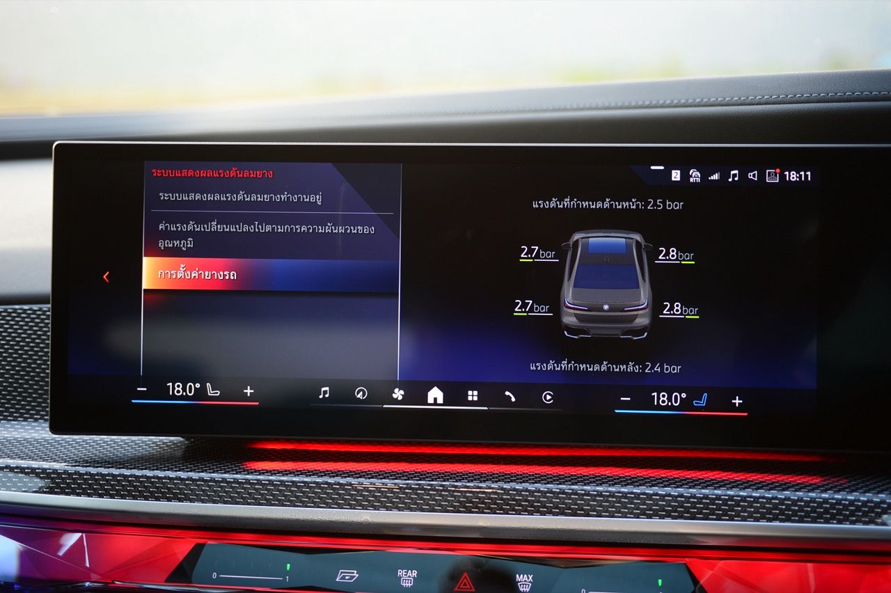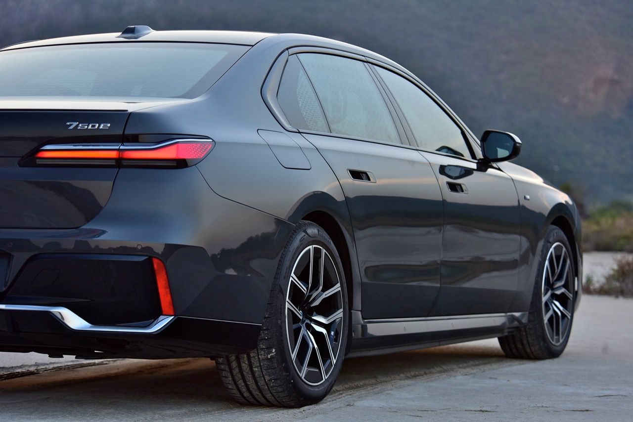 BMW กำหนดนิยามใหม่ของรถยนต์ในเซกเมนต์พรีเมียมรหัส G70 ด้วยระบบขับเคลื่อนพลังงานผสม เครื่องยนต์ผสานมอเตอร์ไฟฟ้าในระบบปลั๊กอินไฮบริด PHEV ที่เน้นความหรูหราสะดวกสบาย ระบบดิจิทัลแบบใหม่ ระบบความปลอดภัยครอบคลุมการใช้งาน BMW 750e xDrive M Sport 2025 ราคา 7,039,000 บาท บาท มิติตัวถัง ยาว 5,391 มิลลิเมตร กว้าง 1,950 มิลลิเมตร สูง 1,544 มิลลิเมตร ความยาวฐานล้อ 3,215 มิลลิเมตร ระยะห่างล้อหน้า 1,662 มิลลิเมตร ระยะห่างล้อหลัง 1,684 มิลลิเมตร โอเวอร์แฮงค์หน้า 982 มิลลิเมตร โอเวอร์แฮงค์หลัง 1,194 มิลลิเมตร น้ำหนัก 2,445 กิโลกรัม พื้นที่เก็บสัมภาระส่วนท้ายความจุ 525 ลิตร ล้อ M aerodynamic 20 นิ้ว แบบสลับสี ล้อหน้า 9J × 20 ยาง Pirelli P Zero ไซส์ 255/45 R20 105Y ล้อหลัง 10.5 J × 20 ยาง Pirelli P Zero ไซส์ 285/40 R20 105Y