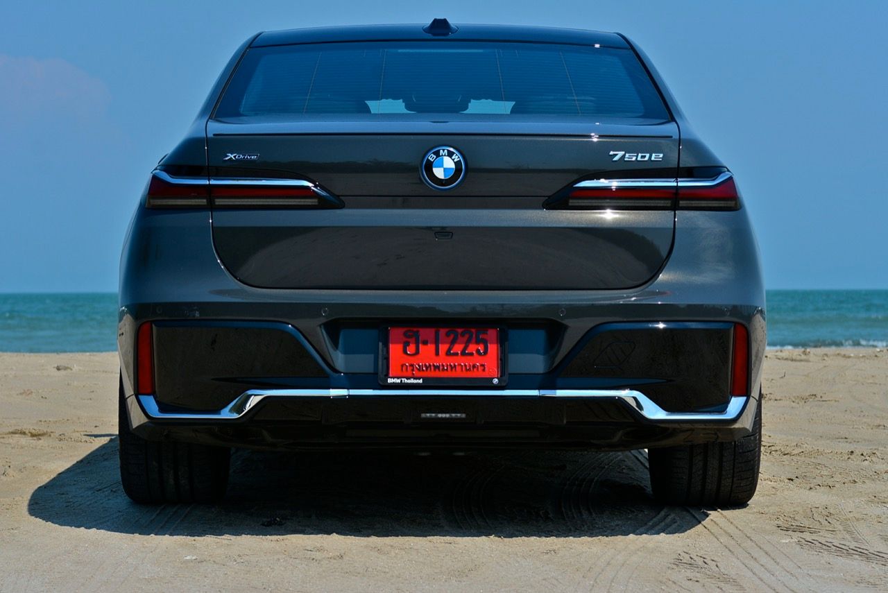 ความกว้างของห้องโดยสาร โดยเฉพาะขอบกระจกบานหน้าต่างที่สูงทำให้รู้สึกเหมือนกำลังนั่งอยู่ในอ่างอาบน้ำที่หรูหราเป็นพิเศษ ชัดเจนว่า BMW ไม่เคยลืมว่ามูลค่าหลักของแบรนด์ก็คือ การเป็นบริษัทผู้ผลิตรถยนต์ที่ส่งมอบรถดีๆ ให้กับผู้บริโภค มีเทคโนโลยีมากมายที่ช่วยทำให้การขับ 750e xDrive สะดวกสบายขึ้นด้วยเซนเซอร์ภายนอกมากกว่า 30 ตัว และระบบช่วยจอดรถอัตโนมัติที่สามารถขับเคลื่อนด้วยตัวของมันเองเพื่อเข้าจอดในที่คับแคบ ระบบควบคุมและเฝ้าระวังที่ความเร็วต่ำ การสั่นเบาๆ ท่ีพวงมาลัยเพื่อแจ้งเตือนว่าคุณกำลังขับทับเส้นแบ่งช่องทาง regenerative braking ที่ฉลาดหลักแหลม ช่วยลดความเร็ว และทำให้ผ้าเบรกมีอายุการใช้งานที่ยาวนานขึ้น เมื่อเปรียบเทียบกับลูกพี่ลูกน้องอย่าง i7 แม้ว่ารถทั้งสองคันจะได้รับการออกแบบทางวิศวกรรมที่คล้ายคลึงกัน โดยมีจุดประสงค์เพื่อให้ขับใช้งานท่ามกลางอุปกรณ์ที่หรูหราเหมือนกัน แต่การปรับแต่งของ BMW 750e นั้นโดดเด่นมากกว่า โดยมีเสียงลม หรือเสียงรบกวนจากยางที่บดลงไปบนผิวนถนนเพียงเล็กน้อย ลองเปิดโหมด Sport ใช้งาน แรงบิด 700 นิวตันเมตรของเครื่องและมอเตอร์ ไม่ได้ให้ความรู้สึกแบบระเบิดตูมอย่างแรงเหมือนการเร่งความเร็วในใน i7 ที่ทรงพลัง แต่แรงดึงหนักๆ ที่ต่อเนื่อง และยาวนานของ 750e จะทำให้คนขับรู้สึกประทับใจ