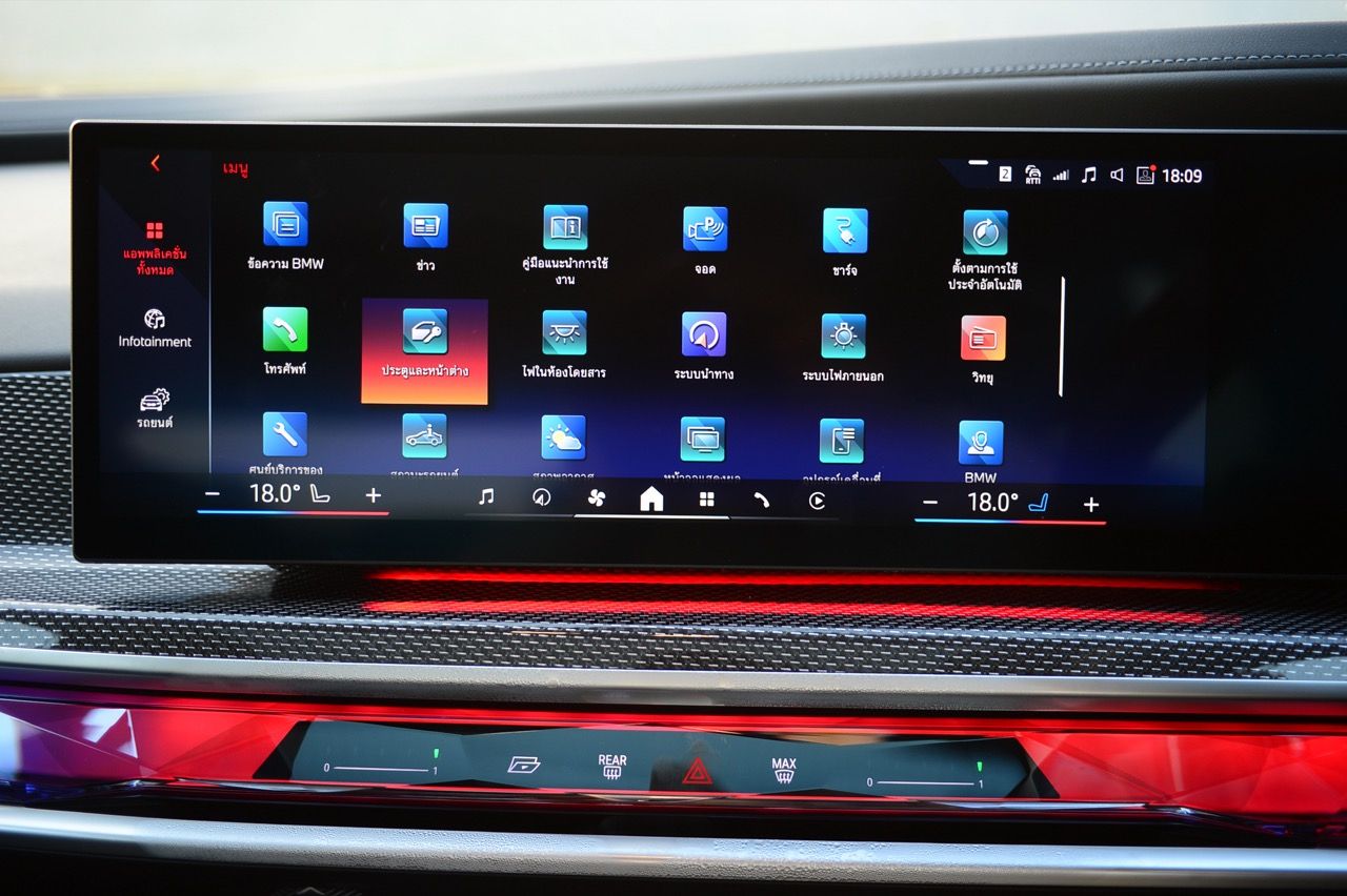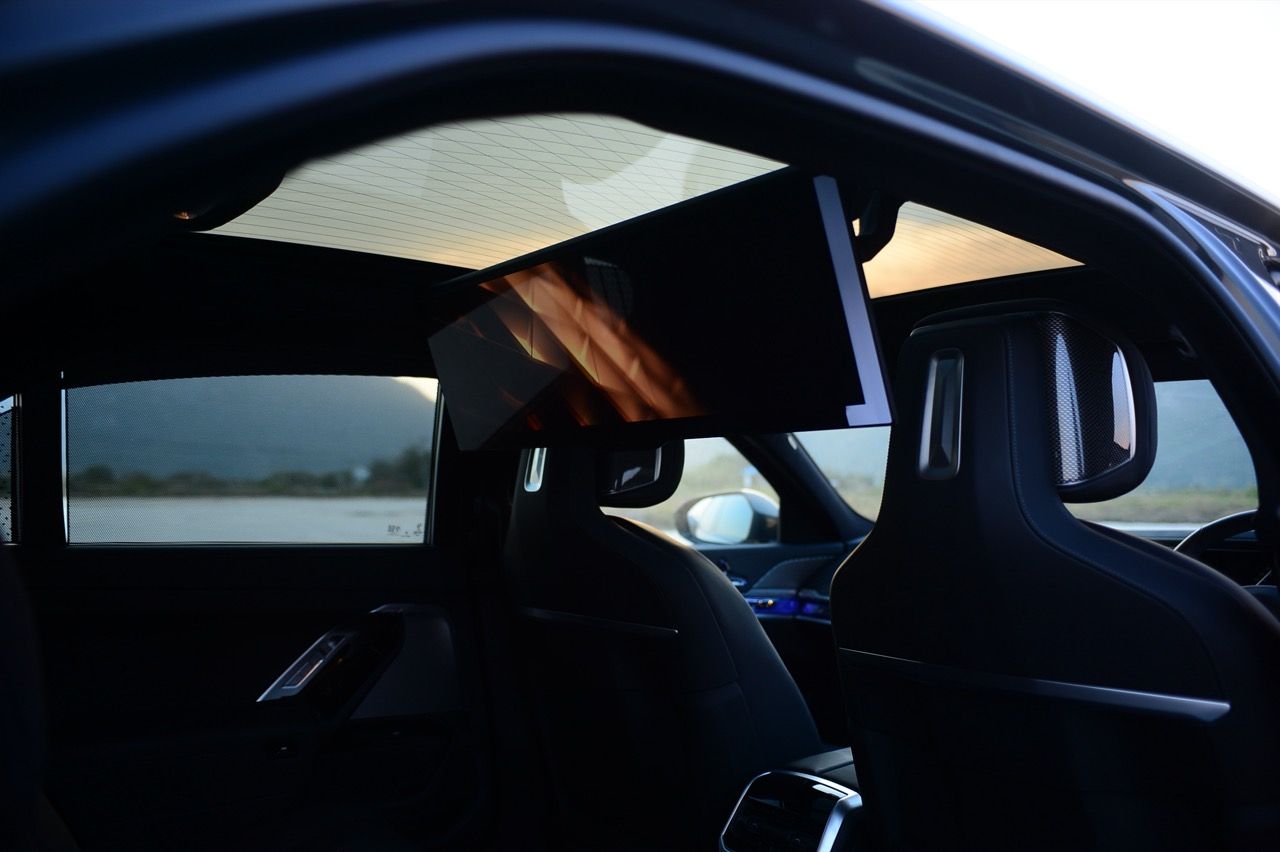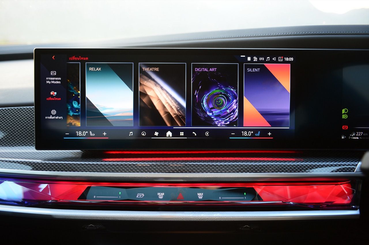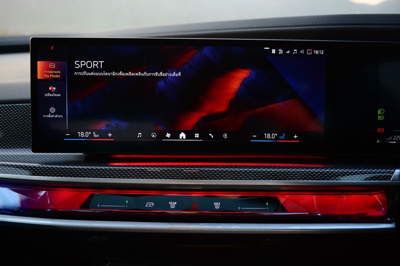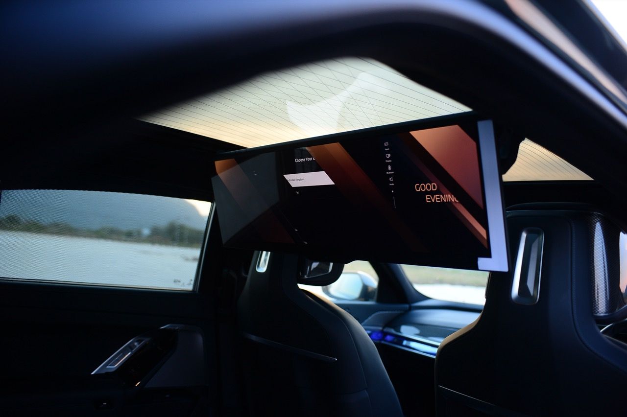 ระบบจอภาพบนเพดานสำหรับผู้โดยสารตอนหลัง ประกอบด้วยหน้าจอสัมผัสขนาด 31.3 นิ้ว ความคมชัด 8K ระบบเสียงรอบทิศทาง Bowers & Wilkins รีโมตควบคุมแบบสัมผัส ติดตั้งอยู่ที่แผงควบคุมบริเวณแผงประตู (BMW Touch Command) ม่านบังแสงด้านหลังจะปิดโดยอัตโนมัติเมื่อระบบจอภาพสำหรับผู้โดยสารตอนหลังทำงาน ระบบ BMW Live Cockpit Professional ช่วยคำนวณเส้นทางที่รวดเร็วได้จากข้อมูลสภาพการจราจรแบบเรียลไทม์