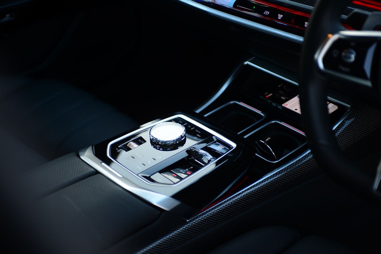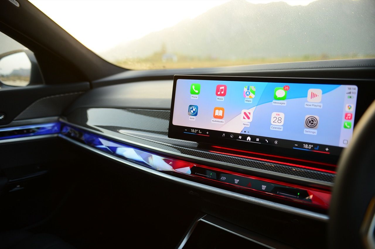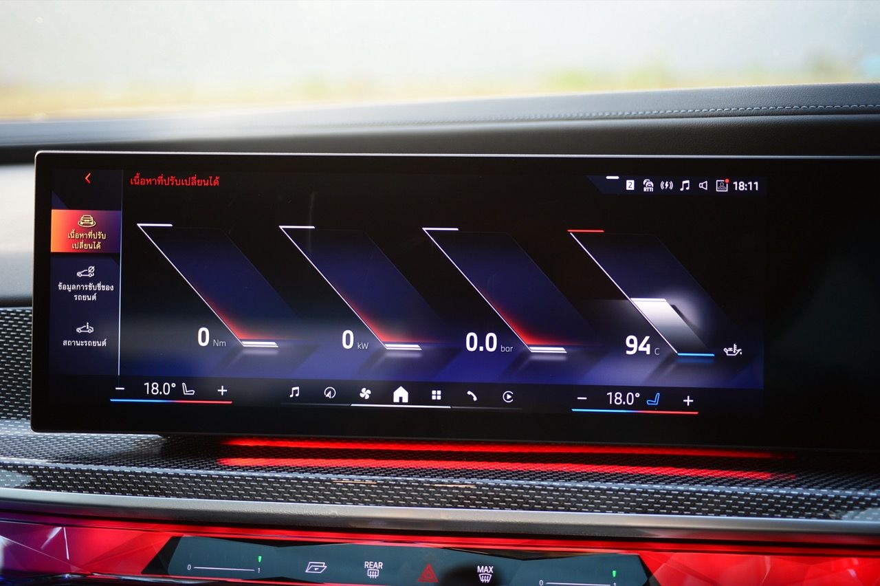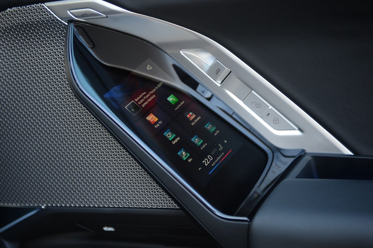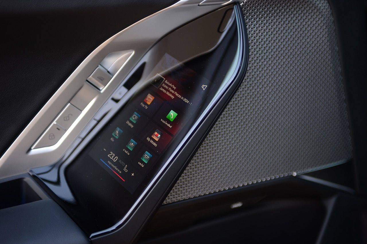 ระบบจอภาพบนเพดานสำหรับผู้โดยสารตอนหลัง ประกอบด้วยหน้าจอสัมผัสขนาด 31.3 นิ้ว ความคมชัด 8K ระบบเสียงรอบทิศทาง Bowers & Wilkins รีโมตควบคุมแบบสัมผัส ติดตั้งอยู่ที่แผงควบคุมบริเวณแผงประตู (BMW Touch Command) ม่านบังแสงด้านหลังจะปิดโดยอัตโนมัติเมื่อระบบจอภาพสำหรับผู้โดยสารตอนหลังทำงาน ระบบ BMW Live Cockpit Professional ช่วยคำนวณเส้นทางที่รวดเร็วได้จากข้อมูลสภาพการจราจรแบบเรียลไทม์