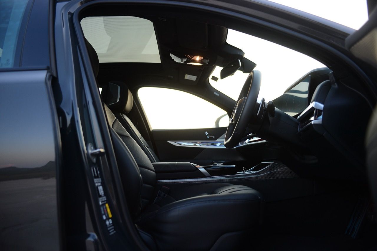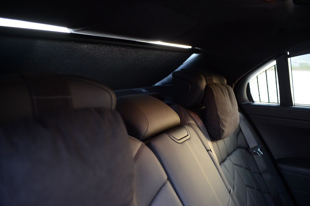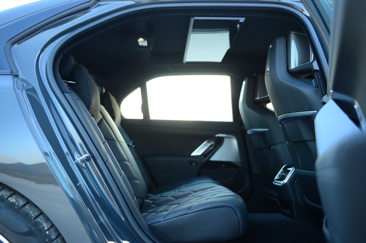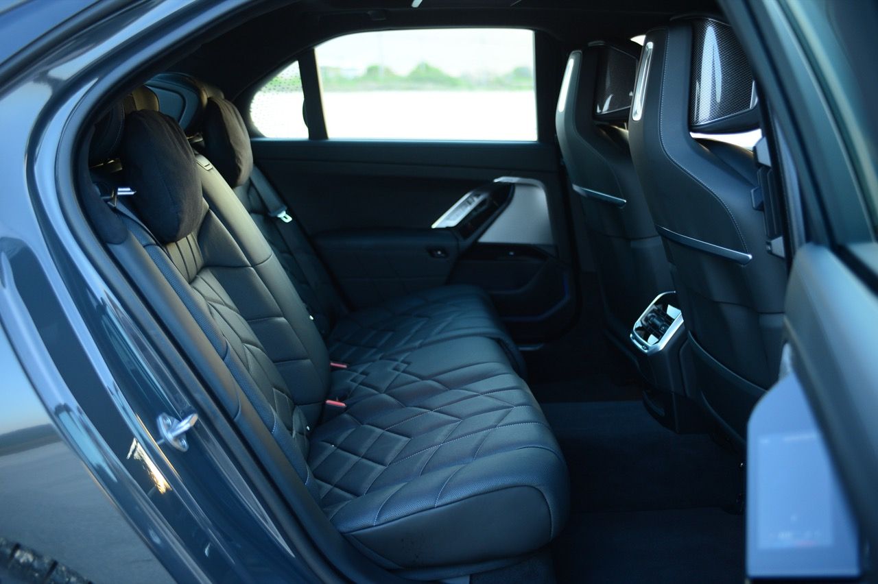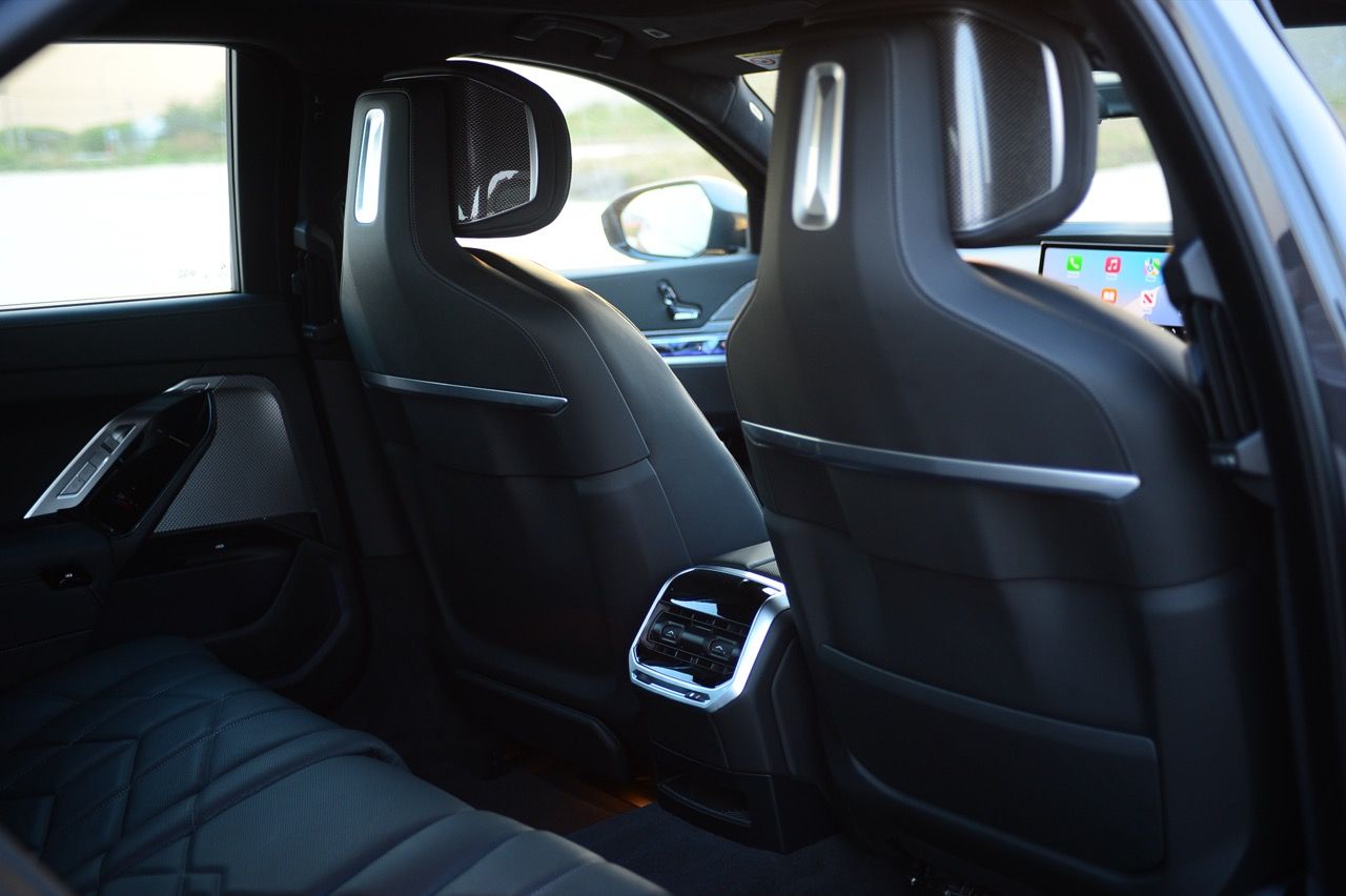 รถทดสอบมาพร้อมกับชุดแต่ง M มีอุปกรณ์หรูหรามากมายมหาศาล เช่น เบาะนั่งด้านหน้าและด้านหลังแบบปรับนวดได้หลายทิศทาง กระจกหลังคาส่องสว่างด้วยเทคนิคพิเศษ, สวิตช์ปรับตั้งต่างๆ ทั้งปรับเบาะ ปุ่ม iDrive สวิตช์คันเกียร์ ทำจากกระจกแก้วคริสตัล, ม่านไฟฟ้า, ระบบเสียง Bowers & Wilkins ที่อัปเกรดกรวยลำโพง และคุณภาพของเสียงจากการปรุงแต่งกำลังขับใหม่หมด รวมถึงประตูอัตโนมัติที่ค่อนข้างหน้าเบื่อดังกล่าวมาข้างต้น จุดเด่นของการโดยสารที่เบาะหลังก็คือ หน้าจอเธียเตอร์ขนาด 31.3 นิ้ว ที่พับซ่อนอย่างแนบเนียนอยู่บนส่วนกลางของผืนหลังคา เพื่อแสดงภาพวิดีโอคมชัดสูงไปยังผู้โดยสารที่นั่งด้านหลังในขณะที่กำลังเดินทาง เป็นแนวทาง Luxury ของรถยนต์สุดหรูที่มักจะขยายขอบเขตการใช้งานด้วยเทคโนโลยีอนาคต และ ณ ตอนนี้ Theater Screen ได้ดึงความสนใจของผู้โดยสารตอนหลัง (ซึ่งส่วนใหญ่เป็นเจ้าของรถ) ให้เพลิดเพลินไปกับภาพยนตร์ใหม่ๆ ใน Netflix