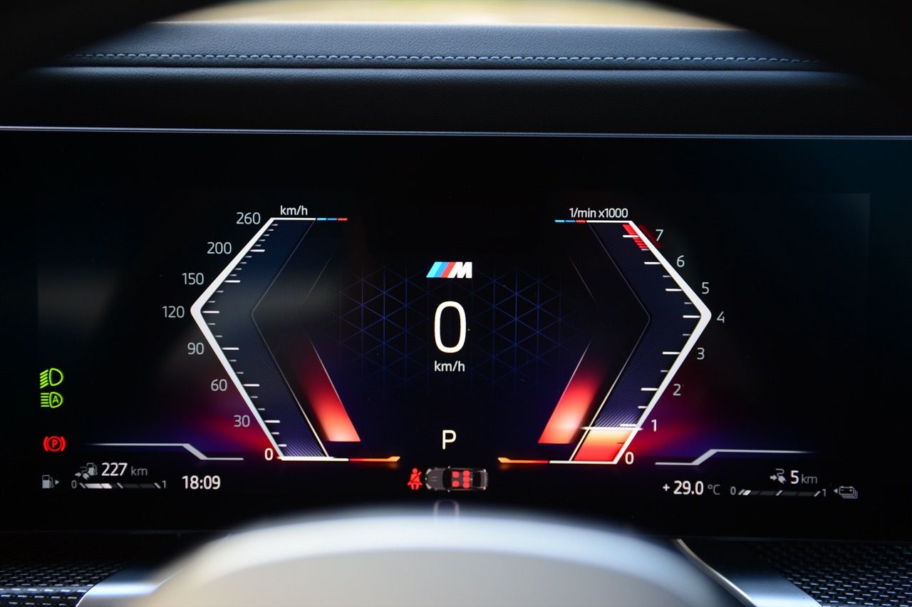 ภายในห้องโดยสารตกแต่งด้วย Carbon Fibre ถักด้วยวัสดุสีเงินแบบ M