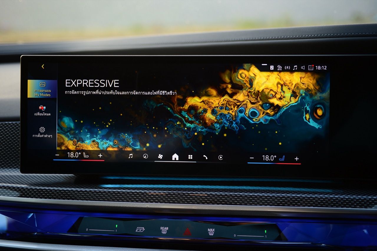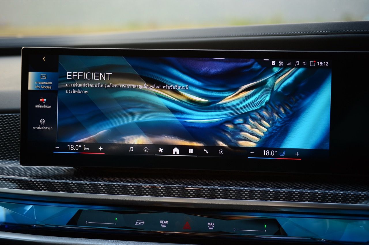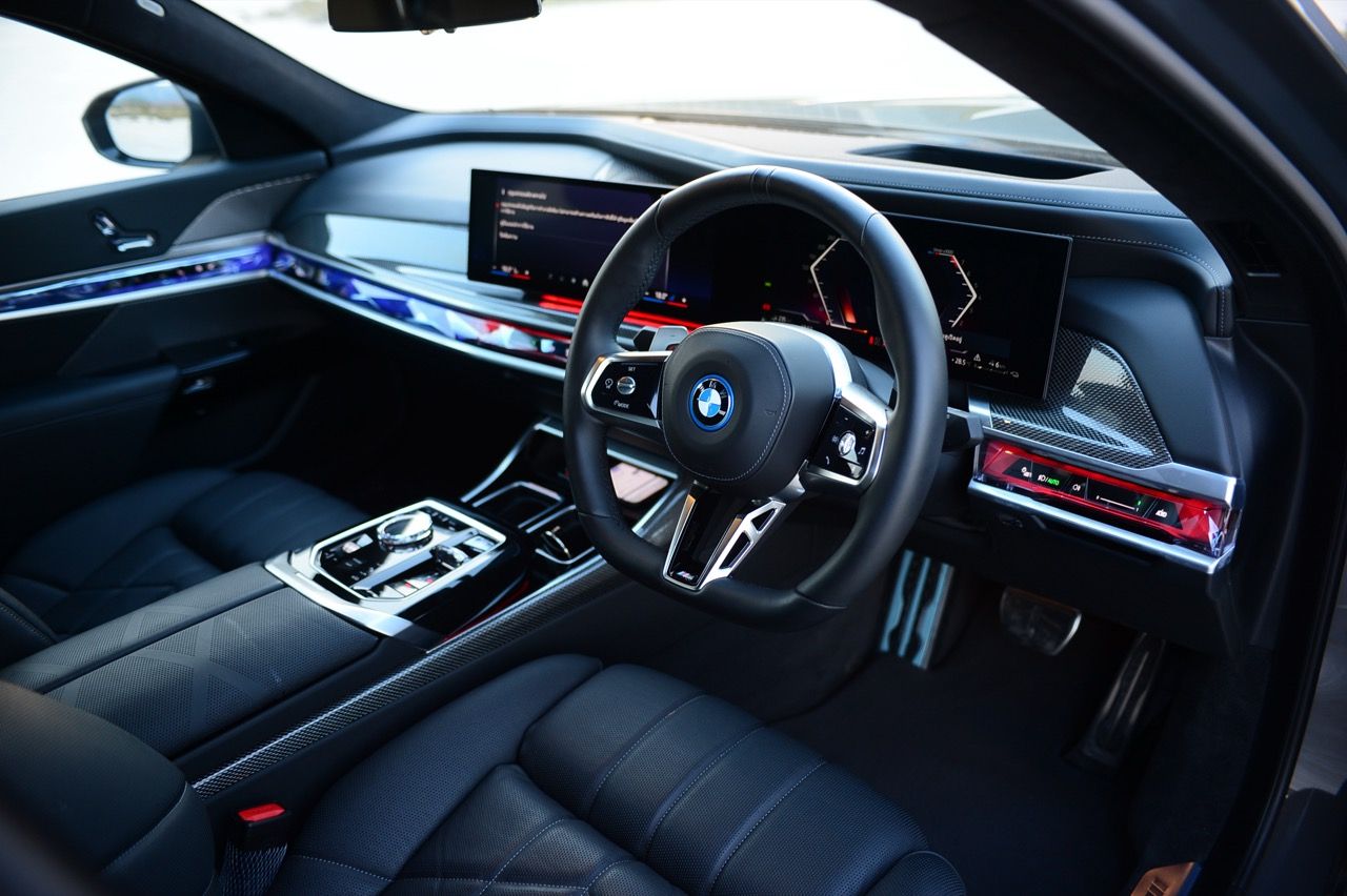 ความสำเร็จที่ยิ่งใหญ่ที่สุดของ BMW 750 คือ การบูรณาการฟังก์ชันการทำงานทั้งหมดให้เข้ากันได้แบบไร้ปัญหา ห้องโดยสารมีจินตนาการเจิดจรัสมากกว่ารถหรูหลายแบรนด์ งานตกแต่งทั้งหมดของมันมุ่งเน้นไปที่คุณภาพของสภาพแวดล้อมภายใน มากกว่าปริมาณของหน้าจอ แสงโดยรอบส่องผ่านแผ่นโปร่งใสทั่วทั้งห้องโดยสาร ทำให้สว่างเรืองรองราวกับกำลังขับรถอยู่ท่ามกลางเรือไดหมึกในคืนเดือนมืด แสงตกแต่งภายในปรับไปตามโหมดการขับเคลื่อนที่ถูกคำนวณแล้วว่าไม่รบกวนการขับรถของคุณ ทุกพื้นผิวตั้งแต่ลายคาบอนไฟเบอร์เคลือบเงาไปจนถึงขอบโลหะสีเงินยวงที่ให้ความรู้สึกหรูหราน่าสัมผัส และมีราคาแพง G70 ไม่มีคลาสที่เรียบหรูหรือเรียบง่ายเหมือนรุ่นก่อนๆ มันถูกแทนที่ด้วยความรู้สึกทันสมัย และตอบสนองความต้องการที่ลงตัวกับทุกอุปกรณ์ในราคา 7 ล้านบาท ระบบอินโฟเทนเมนต์ iDrive 8.5 แบบหน้าจอคู่ panorama ของ BMW ที่ไม่รู้สึกว่าอยู่ผิดที่ผิดทาง แม้จะใช้ร่วมกับ Series-3 จอภาพทรงยาวที่เหมือนรถไฟฟ้าจีน มีความคมชัดสูง และมีคุณสมบัติที่หลากหลาย จากความหนาแน่นของฟังก์ชันทำให้ต้องใช้เวลาเรียนรู้ และทำความคุ้นชินกับการใช้งานนานเป็นอาทิตย์ หรืออาจเป็นเดือน กว่าจะใช้งาน OS 8.5 ได้อย่างคล่องแคล่ว แต่ซอฟต์แวร์ถูกออกแบบให้ค่อนข้างง่ายต่อการเข้า-ออกจากเมนูต่างๆ โดยใช้ตัวควบคุม i Drive ที่เป็นปุ่มทรงกลมข้างคันเกียร์ทำจากแก้วคริสตัลแวววับ