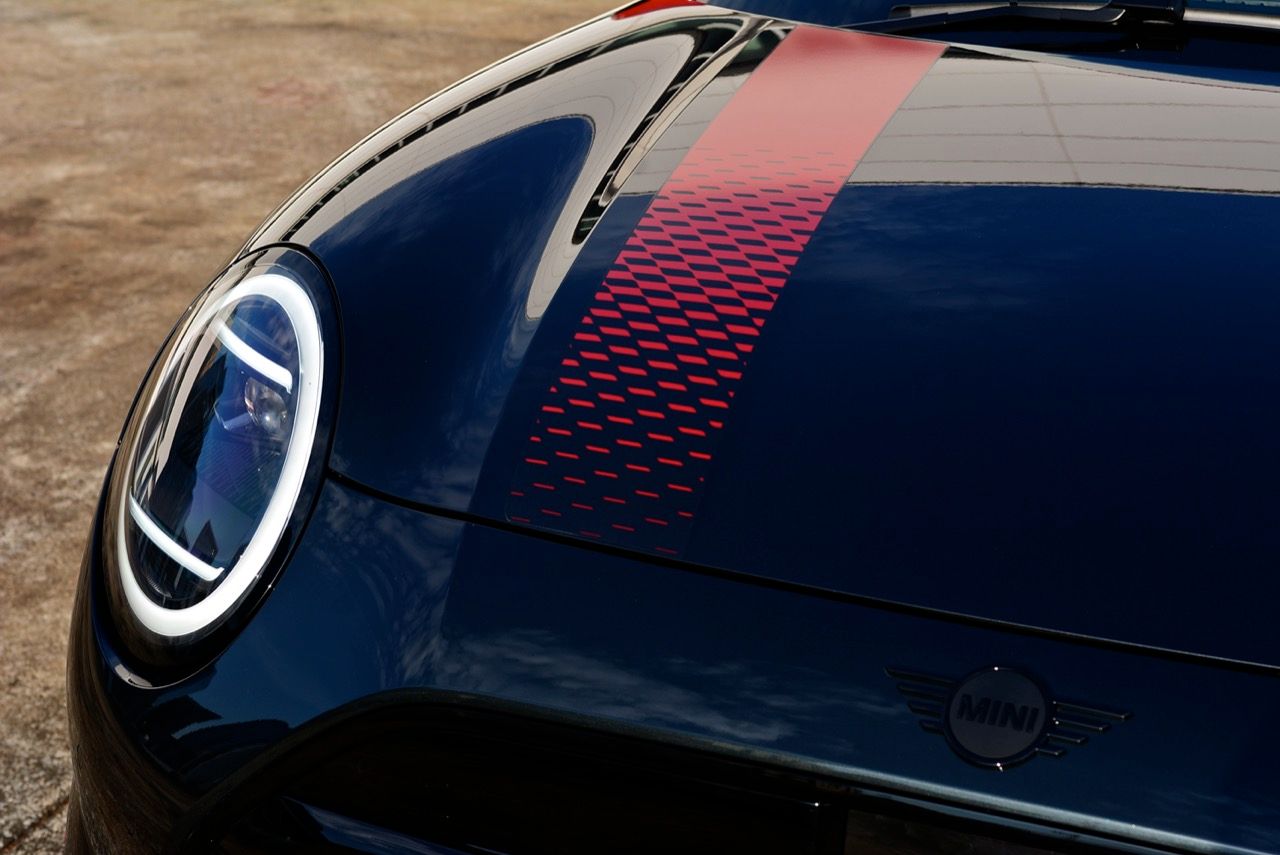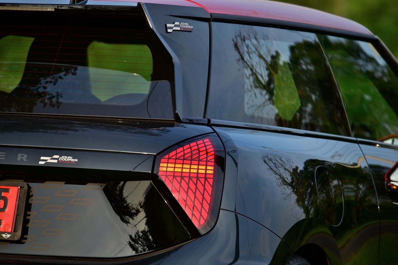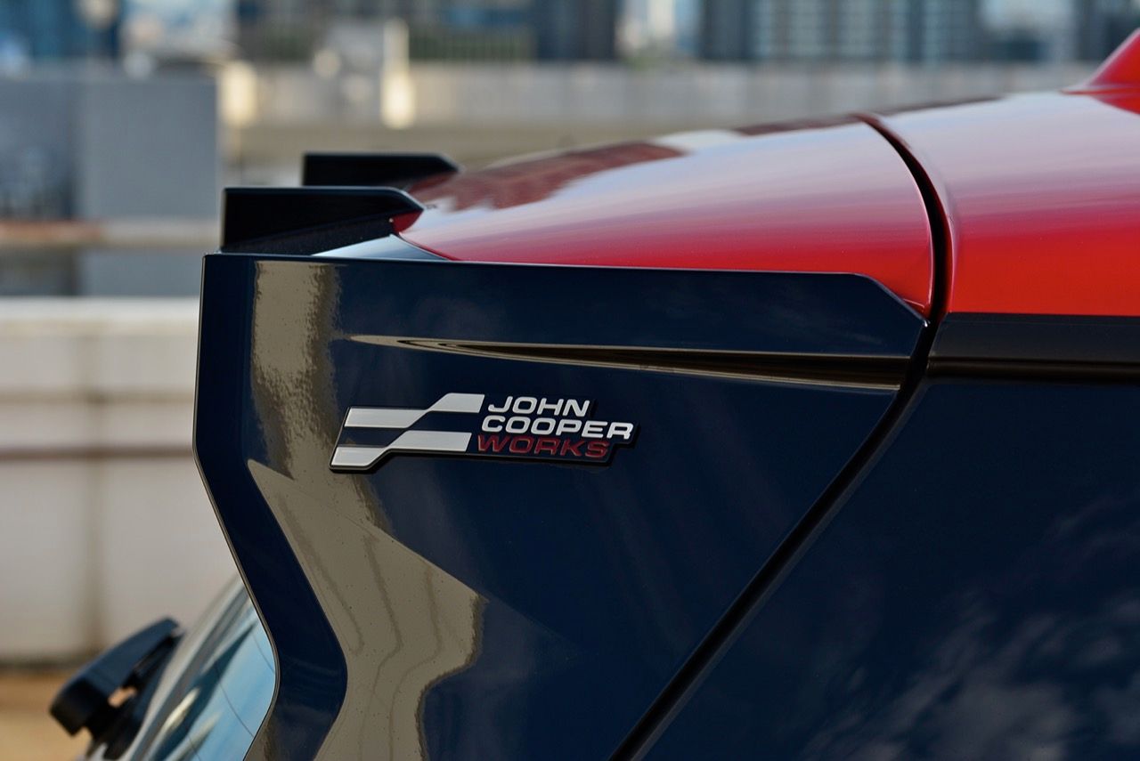 มีการเพิ่มรายละเอียดใหม่เพื่อให้แตกต่างจาก Cooper SE ทั่วไป ชุดแต่ง JCW พร้อมสเกิร์ตข้างสีดำ แอโรเบลดบนเสา C สปอยเลอร์หลังขนาดใหญ่ ขอบสีดำเงาและแผ่นสะท้อนแสงแนวตั้งสีแดงที่มุมทั้งสี่ ลวดลายธงตาหมากรุกบริเวณรอบป้ายทะเบียนด้านหลัง ทั้งหมด เป็นรายละเอียดที่สวยงาม ล้ออัลลอยด์ John Cooper Works ขนาด 18 นิ้ว ลายใหม่เน้นลู่ลม ซ่อนคาลิปเปอร์เบรกสีแดง พร้อมโลโก้ JCW เป็นอุปกรณ์มาตรฐาน ยางสปอร์ตประสิทธิภาพสูง Michelin Pilot Sport 5 225/40ZR1892Y มันยังมาพร้อมหลังคาและฝาครอบกระจกมองข้างสีแดง การเลือกไล่เฉดสีแดงกับดำเก๋ไก๋ตามสไตล์ของ John Cooper Works ที่อยู่ภายใต้ร่มเงาของ BMW Group