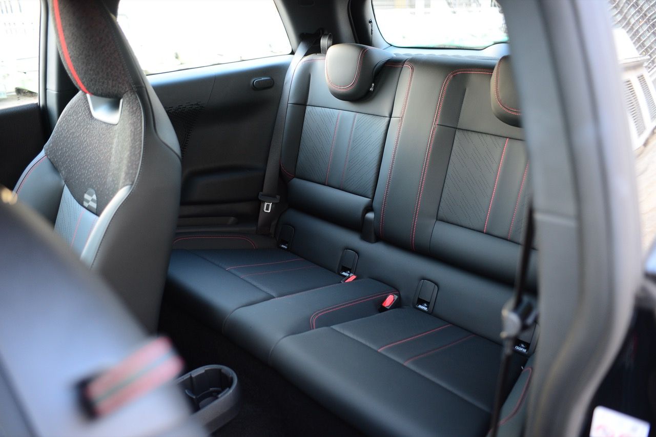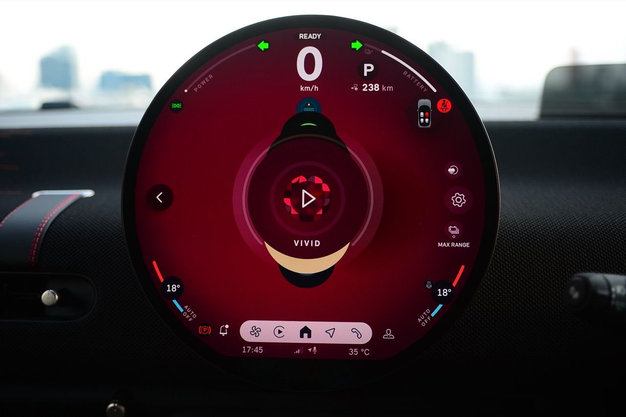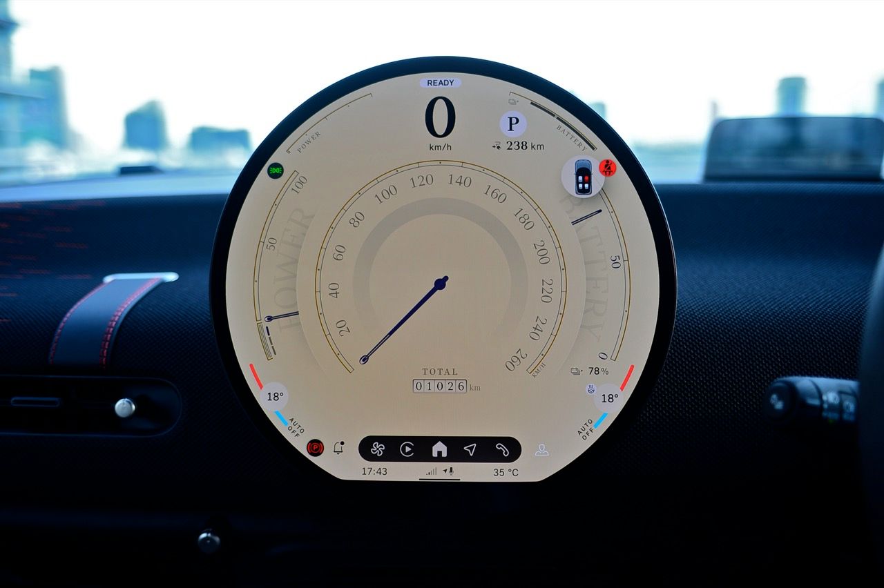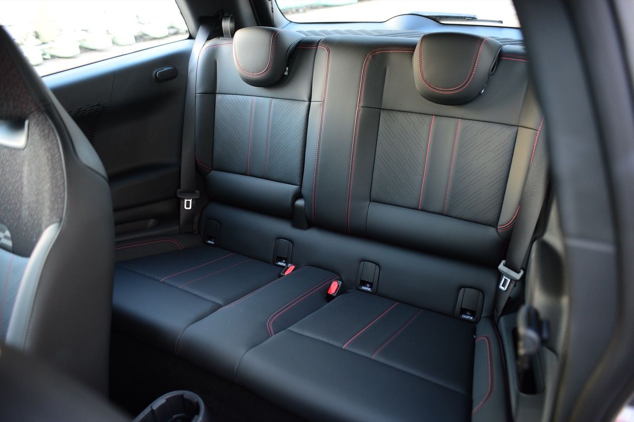 ภายในเบาะนั่งตกแต่งด้วยหนังสังเคราะห์ มีผ้าถักด้วยใยสังเคราะห์ที่เป็นมิตรกับธรรมชาติ แบบเดียวกับที่พบใน Cooper E ตกแต่งบนแผงหน้าปัดและบานประตู หน้าจอ OLED แบบวงกลมขนาด 9.4 นิ้วตรงกลางแผงหน้าปัดซึ่งให้การควบคุมอินโฟเทนเมนต์ ซึ่งก็เหมือนกับสิ่งที่คุณจะได้รับใน Cooper E ซึ่งเราชอบหน้าจอสัมผัสที่ตอบสนองได้ดี แต่เค้าโครงอาจจะทำให้สับสนได้ และเราชอบระบบควบคุมแบบกายภาพสำหรับเครื่องปรับอากาศมากกว่าภายใน มีจอแสดงผลข้อมูลความบันเทิง OLED แบบวงกลมสุดเท่บนแดชบอร์ดแบบเรียบง่ายพร้อมสวิตช์ทางกายภาพเพียงไม่กี่ตัว เบาะนั่งแบบสปอร์ตหุ้มด้วยหนังเทียมพร้อมผ้าทอที่ไหล่ ลวดลายการถักทอแบบเดียวกันยังทอดยาวไปตามความกว้างของแผงหน้าปัดและแผงประตู เพิ่มความน่ารักจัดจ้านด้วยการใช้สีแดงเพิ่มเติมอีกสองสามจุด โดยเฉพาะที่พวงมาลัย ไฟส่องสว่างรอบห้องโดยสารแบบใหม่ที่แผงหลังคาก็ยังทำให้รถดูทันสมัยขึ้นอีกตะหาก